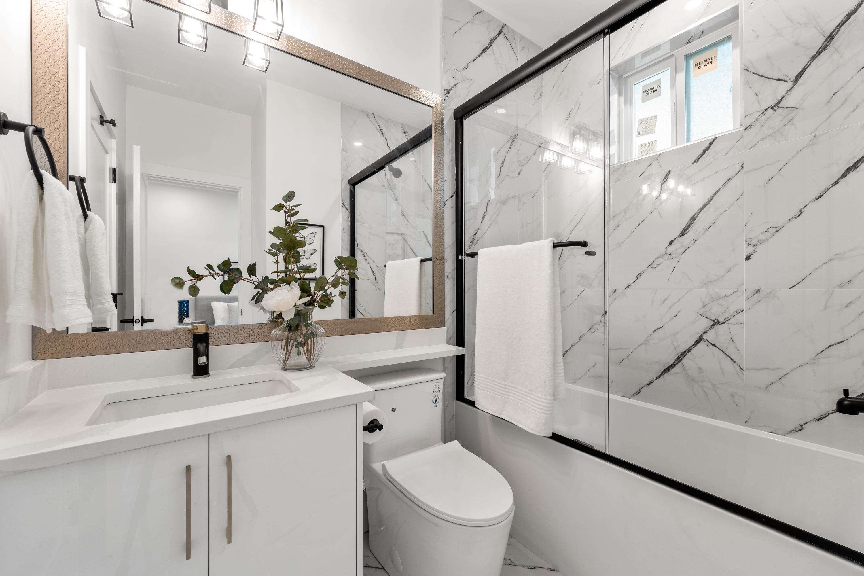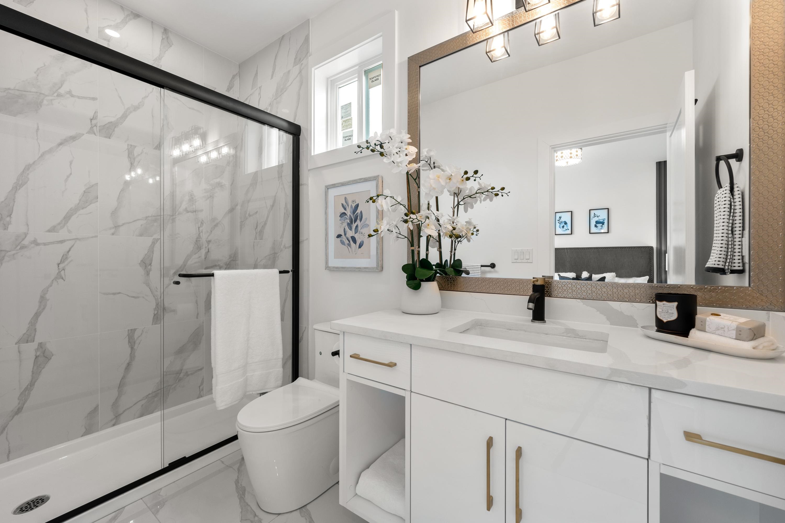 The best Duplex in town! Only 1 remaining brand new home in GlenBrooke North which has everything you need: high ceilings, privacy, ample sunshine, A/C, HRV, radiant floor heating & security cameras. Open kitchen features a 5 burner gas stove, waterfall kitchen island, s/s appliances, garburator for convenience, and a modern family room overlooking the open patio w/ BBQ gas connection and big backyard. The spacious living and dining areas have a 60" fireplace whilst the luxurious powder room feels like a 5 ...