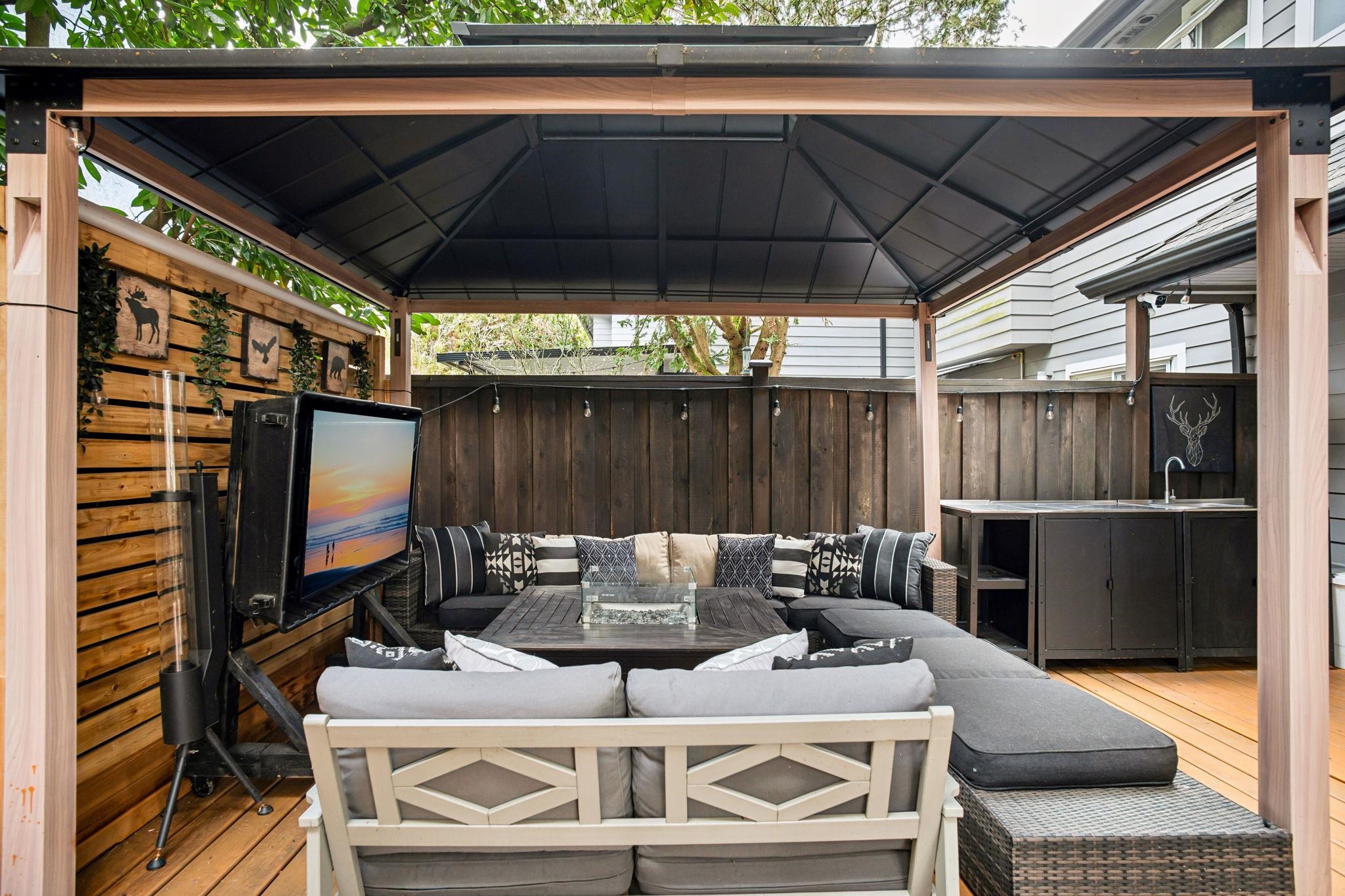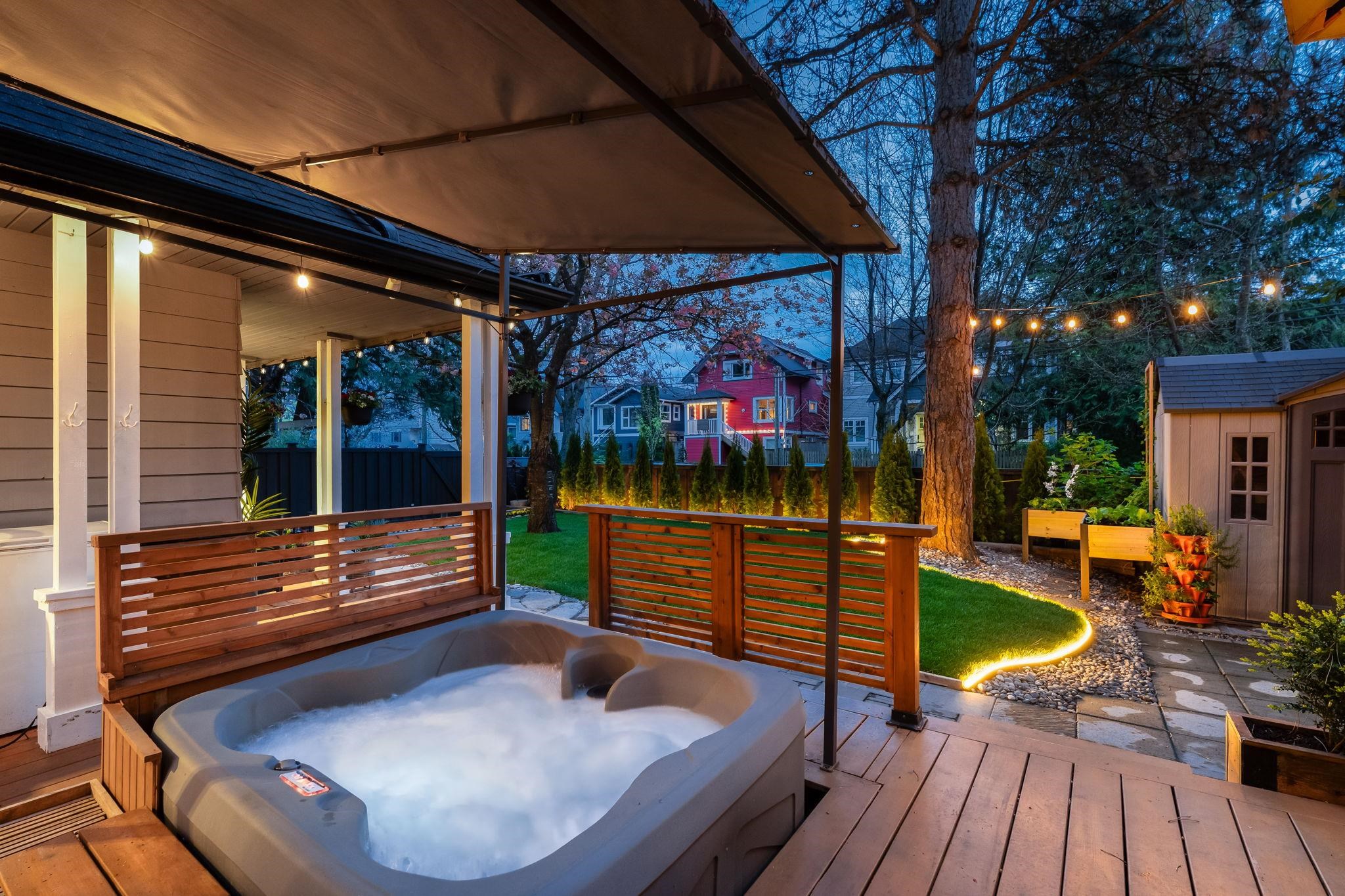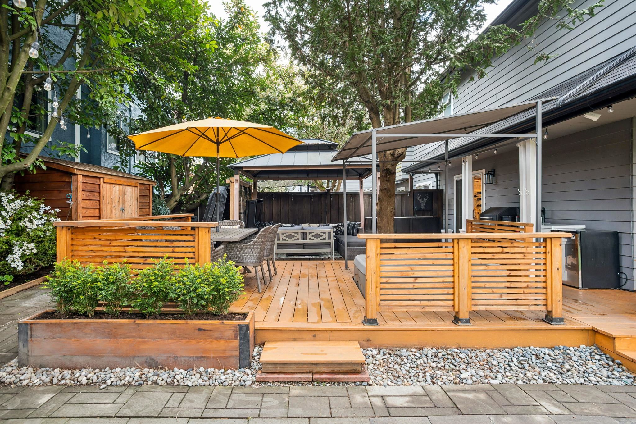 EXTREMELY RARE private yard oasis with the feel of a detached home in the sought-after neighbourhood of Mt Pleasant East. Nearly 2,000 sq ft of beautifully landscaped, fully fenced outdoor space offers an exceptional indoor-outdoor lifestyle, featuring expansive patios, dining area, hot tub, gazebo, sheds, lush lawn, and emerald cedars. Inside, this thoughtfully renovated home features a stylish kitchen, updated bathrooms, new flooring, and a warm, functional layout. Upstairs offers two spacious bedrooms wi...