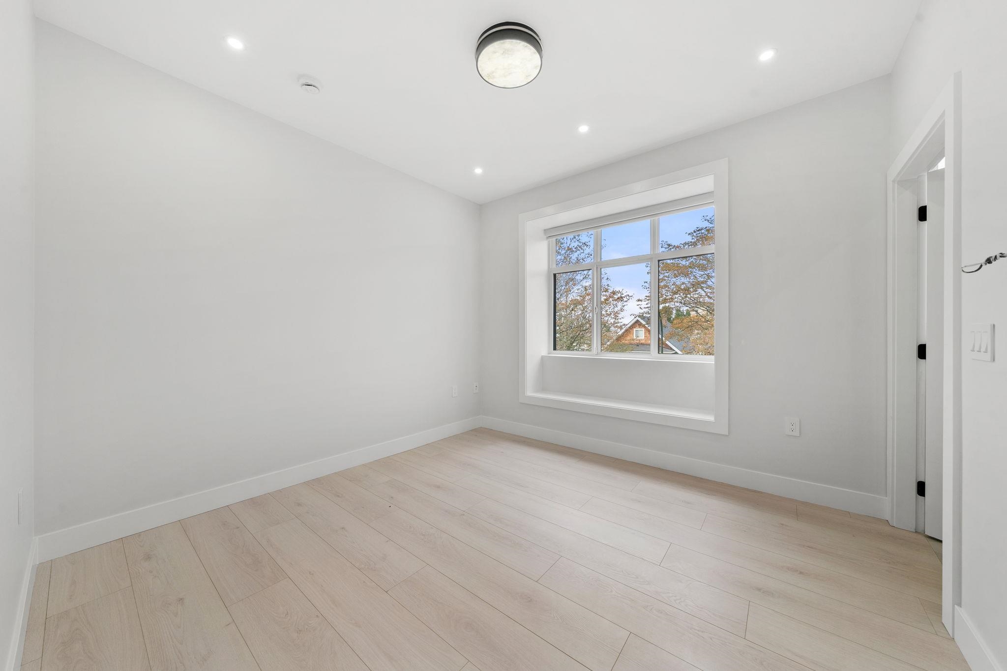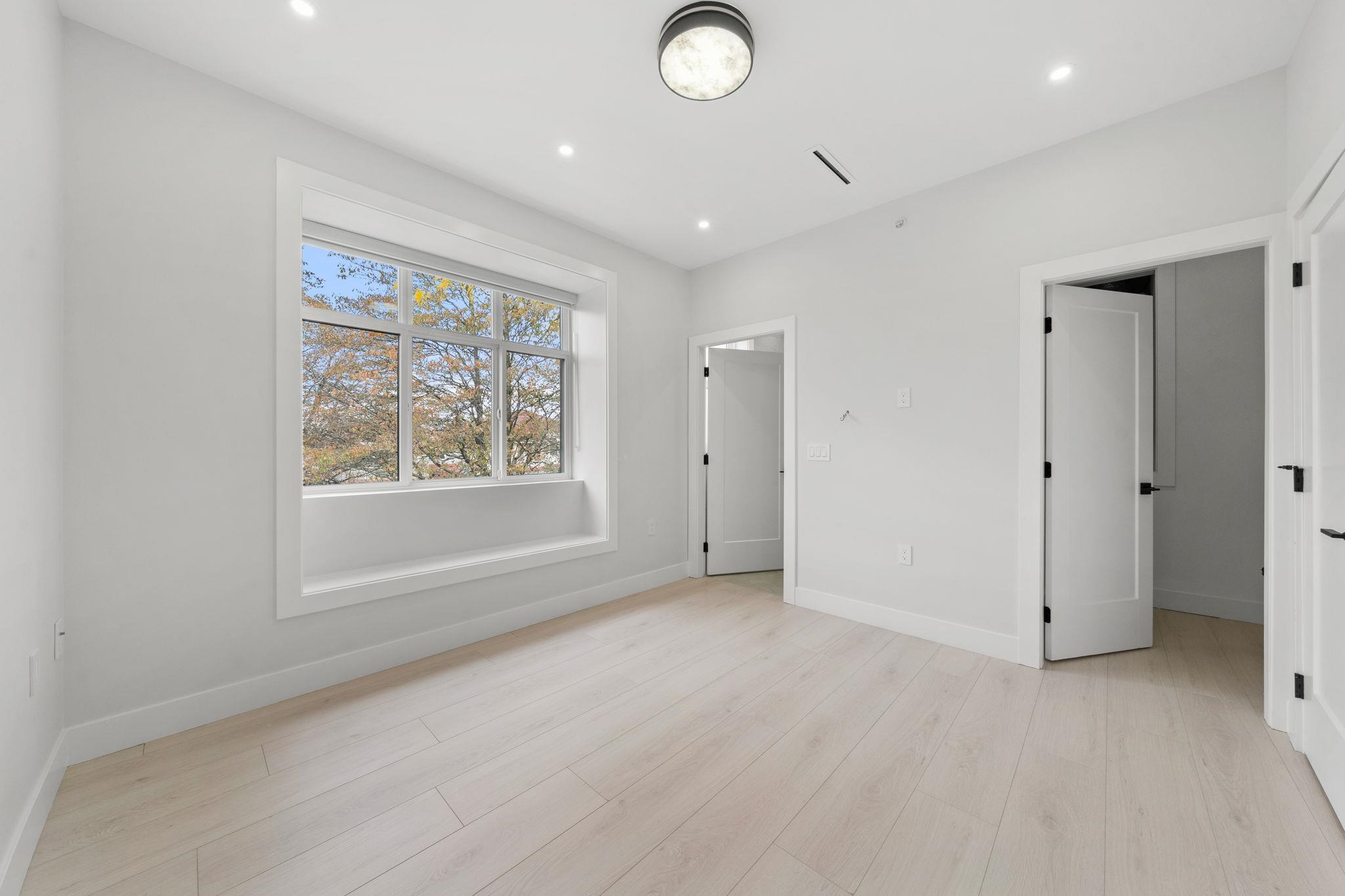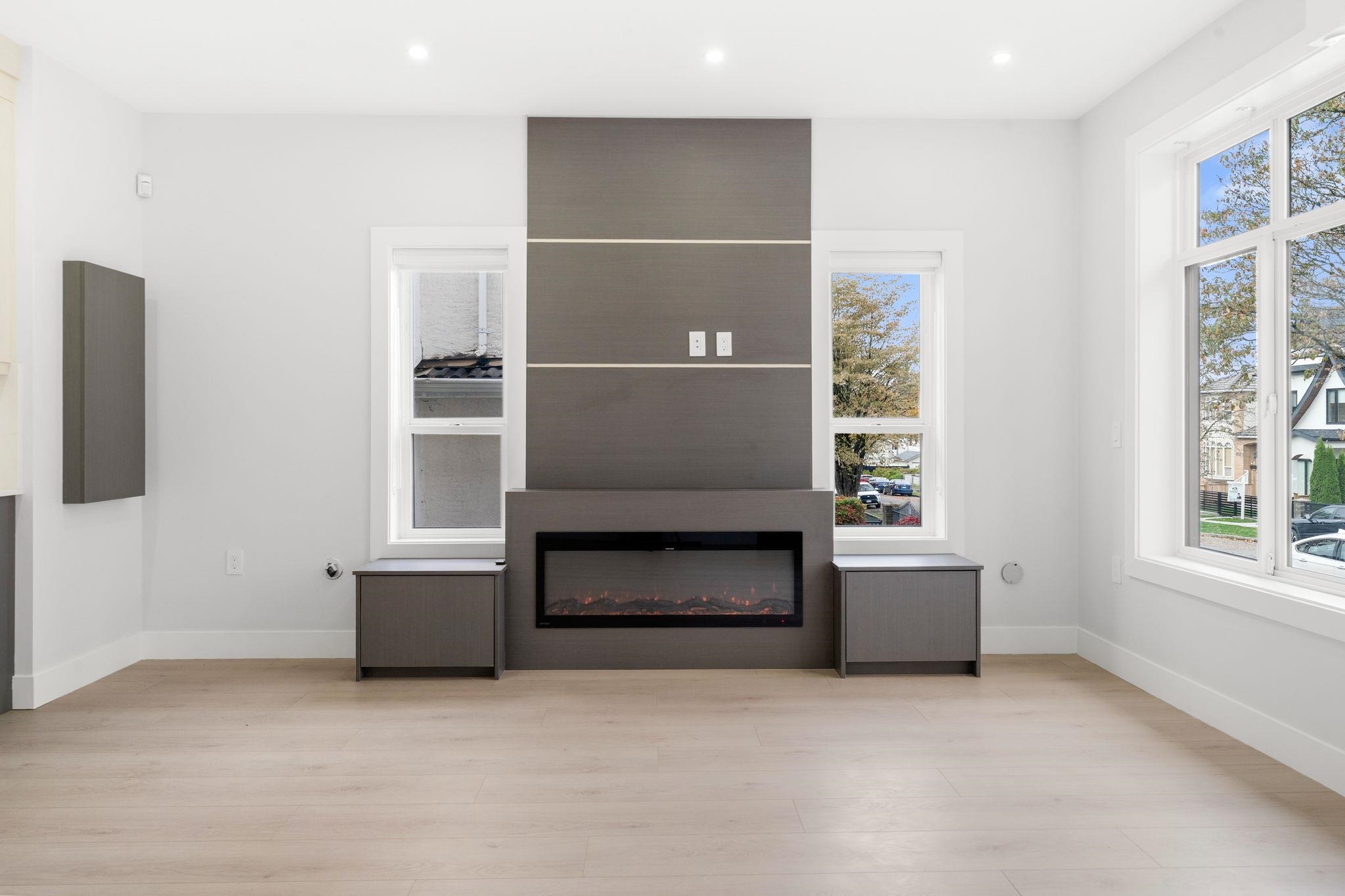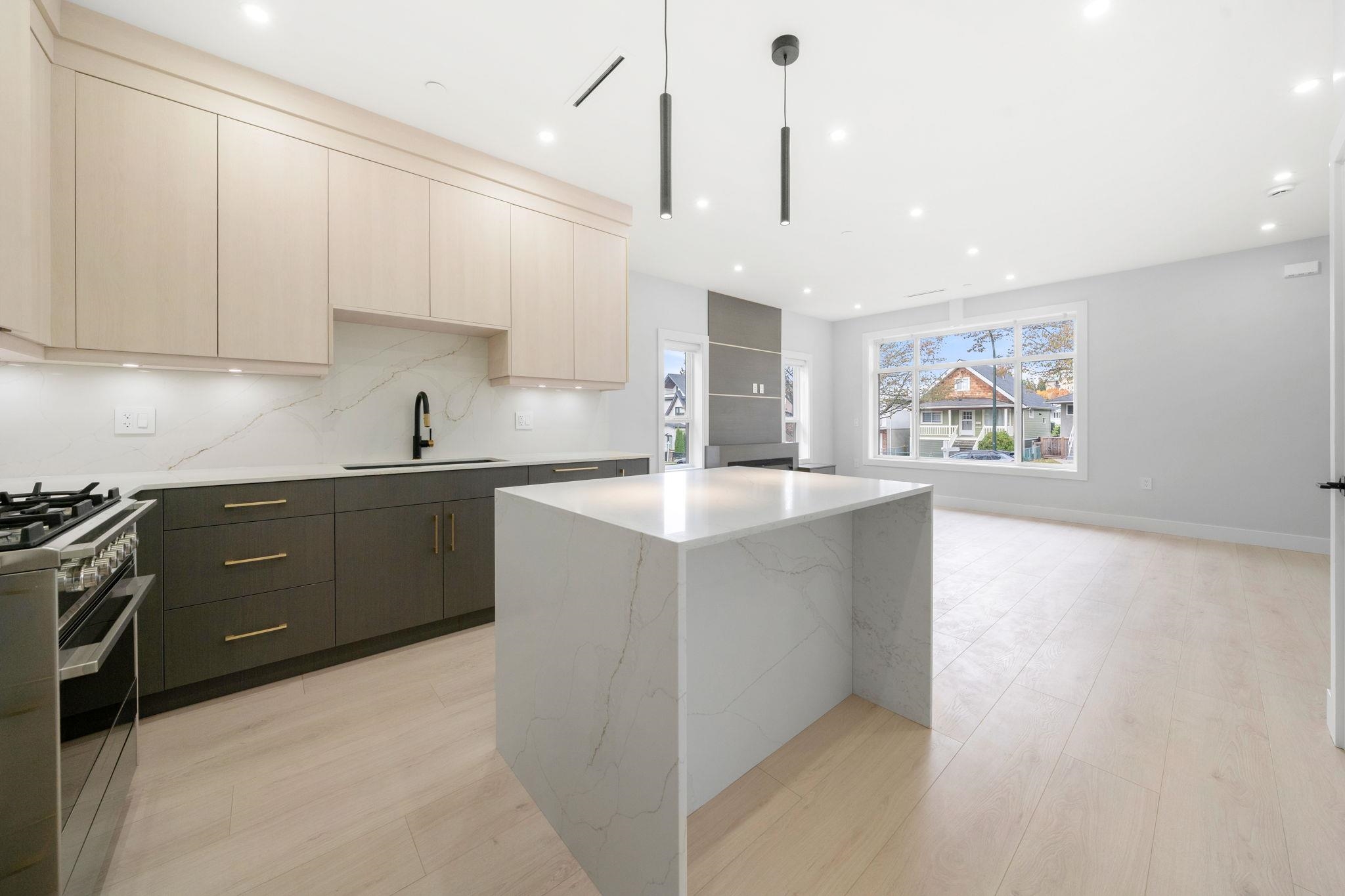 This stunning front half-duplex offers elegant design and quality construction in highly desirable Killarney, Vancouver. Featuring approx. 1,600 sq. ft. of well-planned living space, it includes a bright open-concept main floor with high ceilings, engineered hardwood, A/C and an electric fireplace. The gourmet kitchen boasts quartz countertops, premium appliances, and custom cabinetry. Upstairs features spacious bedrooms, a luxurious primary with walk-in closet, spa-like ensuite and sundeck. The lower level...