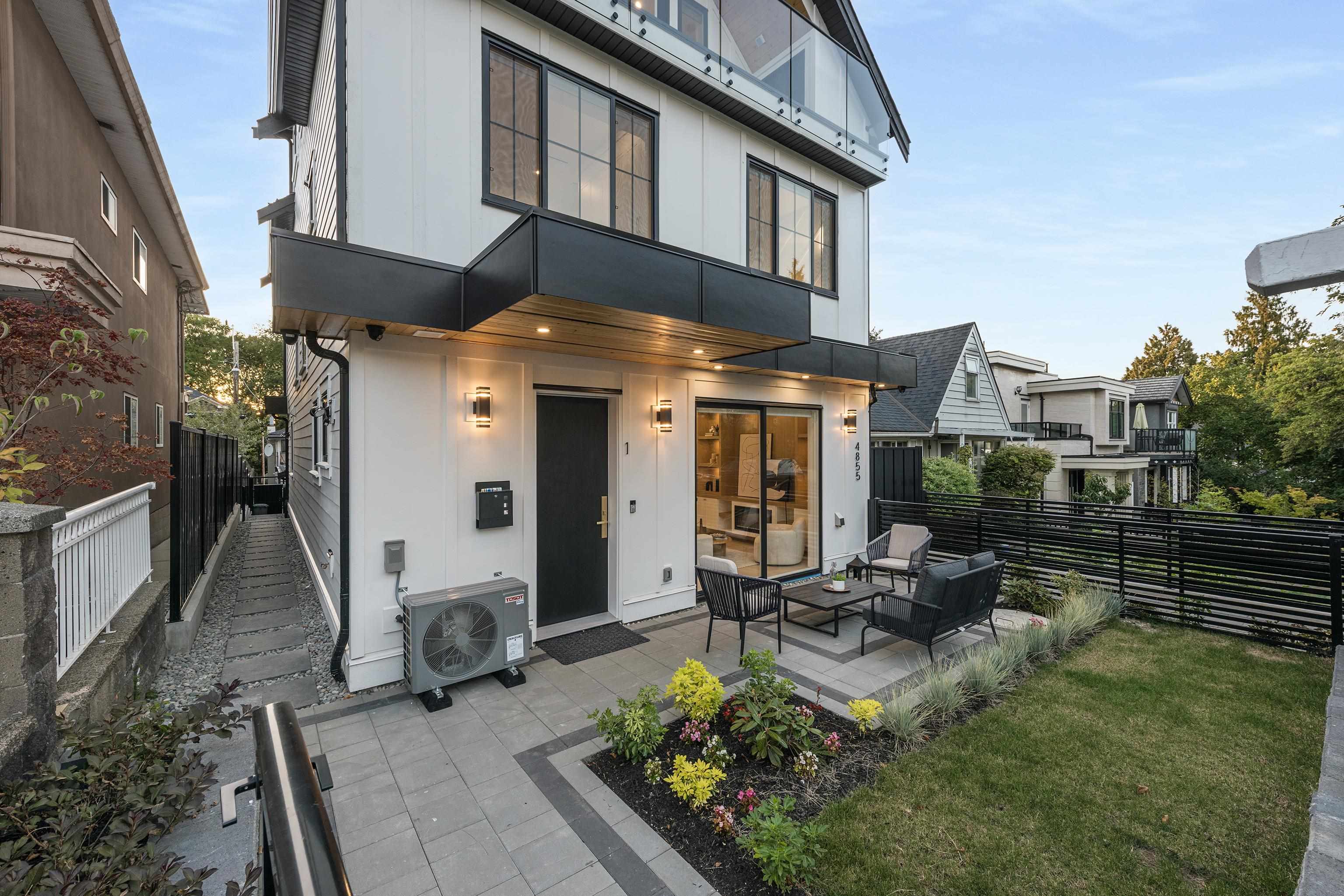 Discover modern living in this beautifully finished FRONT half duplex in East Vancouver. With 10 ft ceilings on the main floor and an open concept design, this home offers space, light, and functionality. The kitchen is equipped with Fisher & Paykel appliances, quartz countertops, and timeless color scheme. While the living room showcases a built-in entertainment centre and electric fireplace. Comfort and peace of mind come with a heat pump, forced air, A/C, alarm/security system with monitors, and built-i...