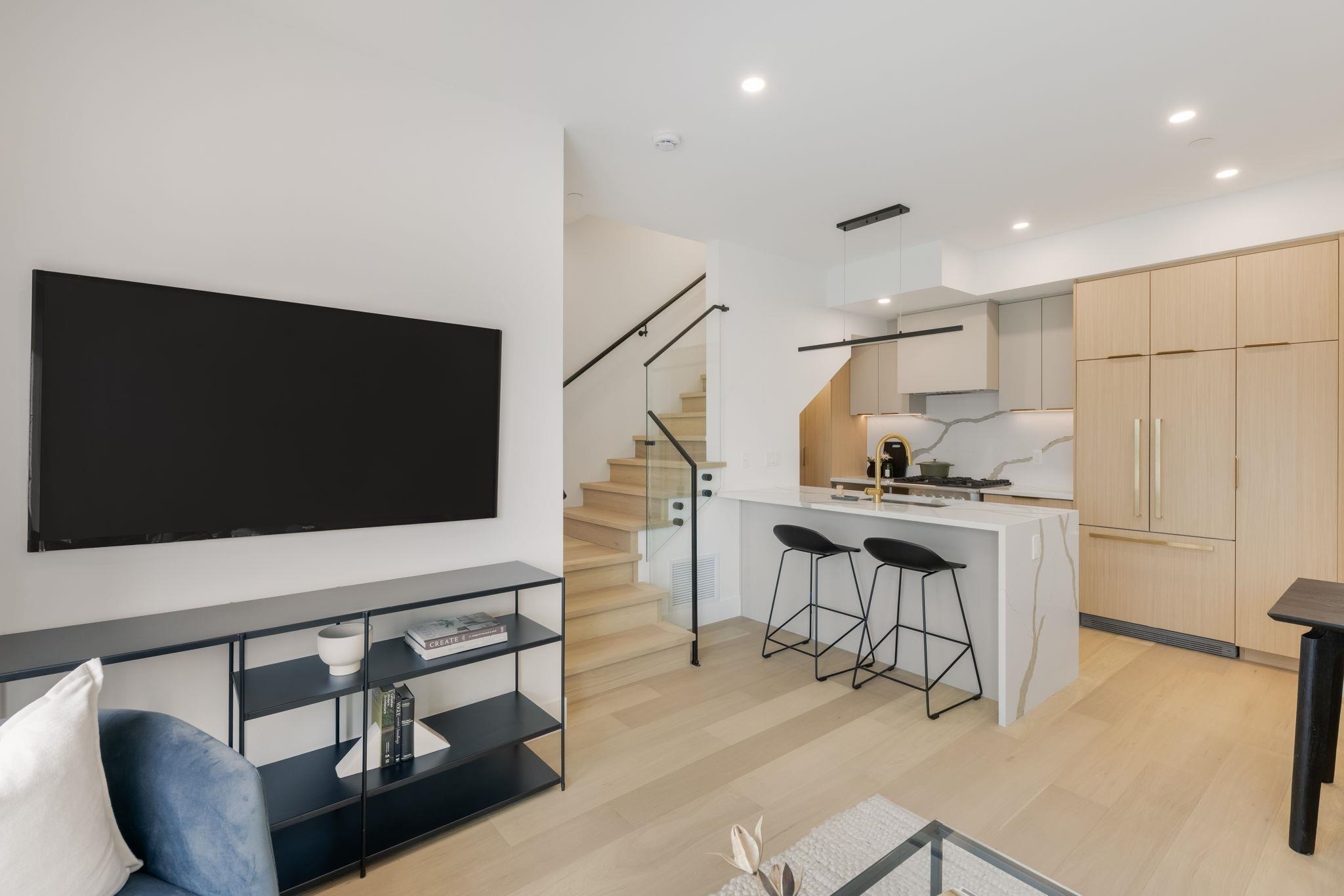 KASLO RESIDENCES by REACH PROPERTIES. This 3 bedroom, 2.5 bath duplex style Multiplex offers the privacy of a corner unit with a front door and back patio space. Main floor offers a West Coast elegant design kitchen with Fisher & Paykel appliances, waterfall counter tops and many built in storage spaces. Primary bedroom with vaulted ceilings includes a large walk-in closet, spa like bathroom and great views. Each home includes 1 EV ready parking & 1 bike locker and large crawl space spanning entire floor pl...