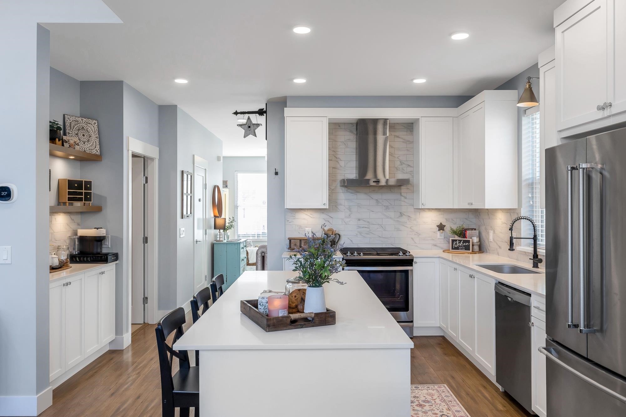 Luxury Style RANCHER with master on the main. Attached to only 1 unit this home is extra bright and has all the upgrades including A/C. Entertainers style open floor plan, gorgeous kitchen including gas stove and coffee bar! There's direct access off the dining room to a covered patio and totally private backyard sporting artificial turf for evergreen, low maintenance living! The primary suite has a lovely feature wall, vaulted ceilings and a walk-in closet with custom built-in cabinetry. The spa inspired e...
