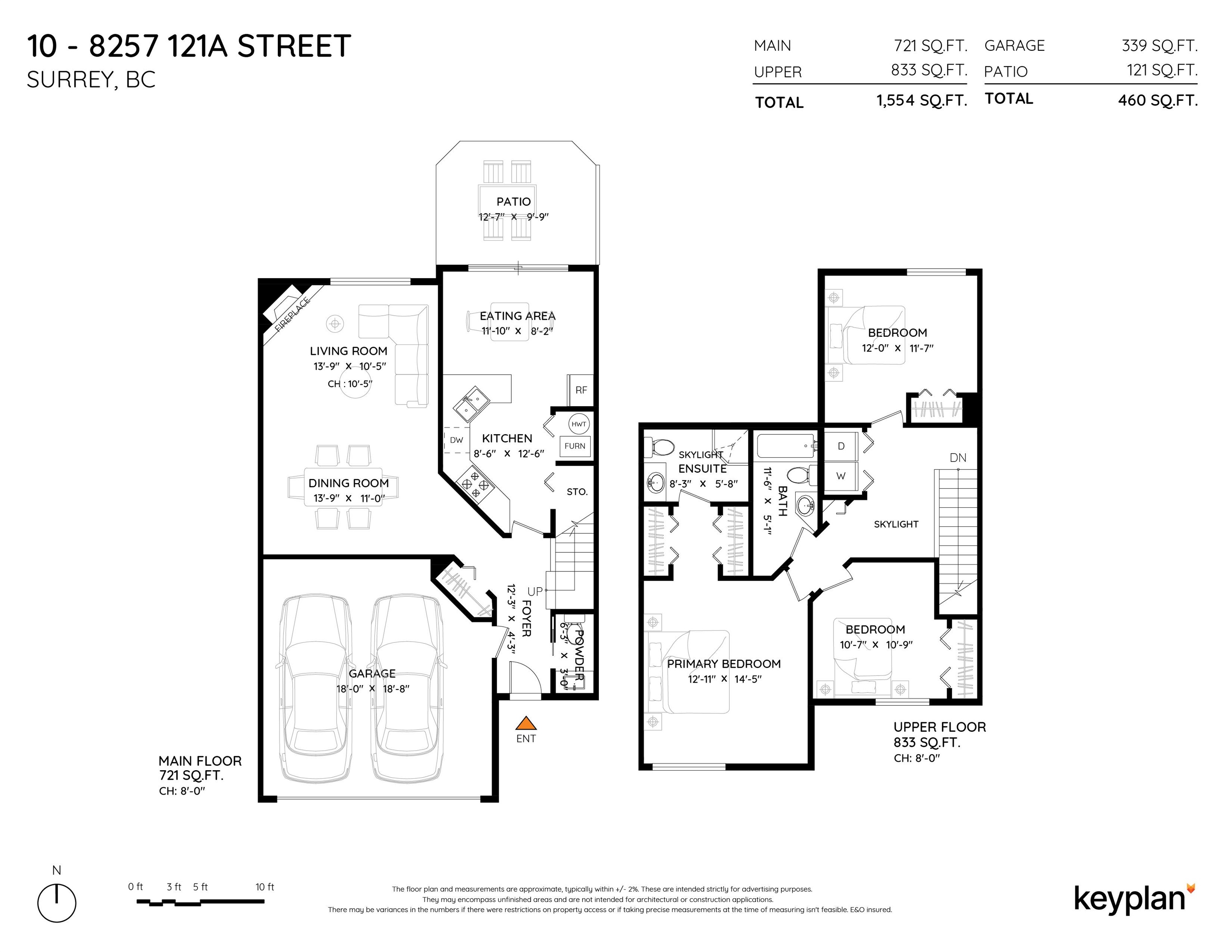 Centrally located, Rare to find a spacious two story Townhouse in this area with good size rooms. Master bedroom with ensuite and walk in closets. 2 Skylights. Large double SXS garage, lots of storage, including a crawlspace. Large back patio. Short walk to Scott Road shops & restaurants. Buyer/Buyers Agent to verify Measurements have been done by Onikon Creative.