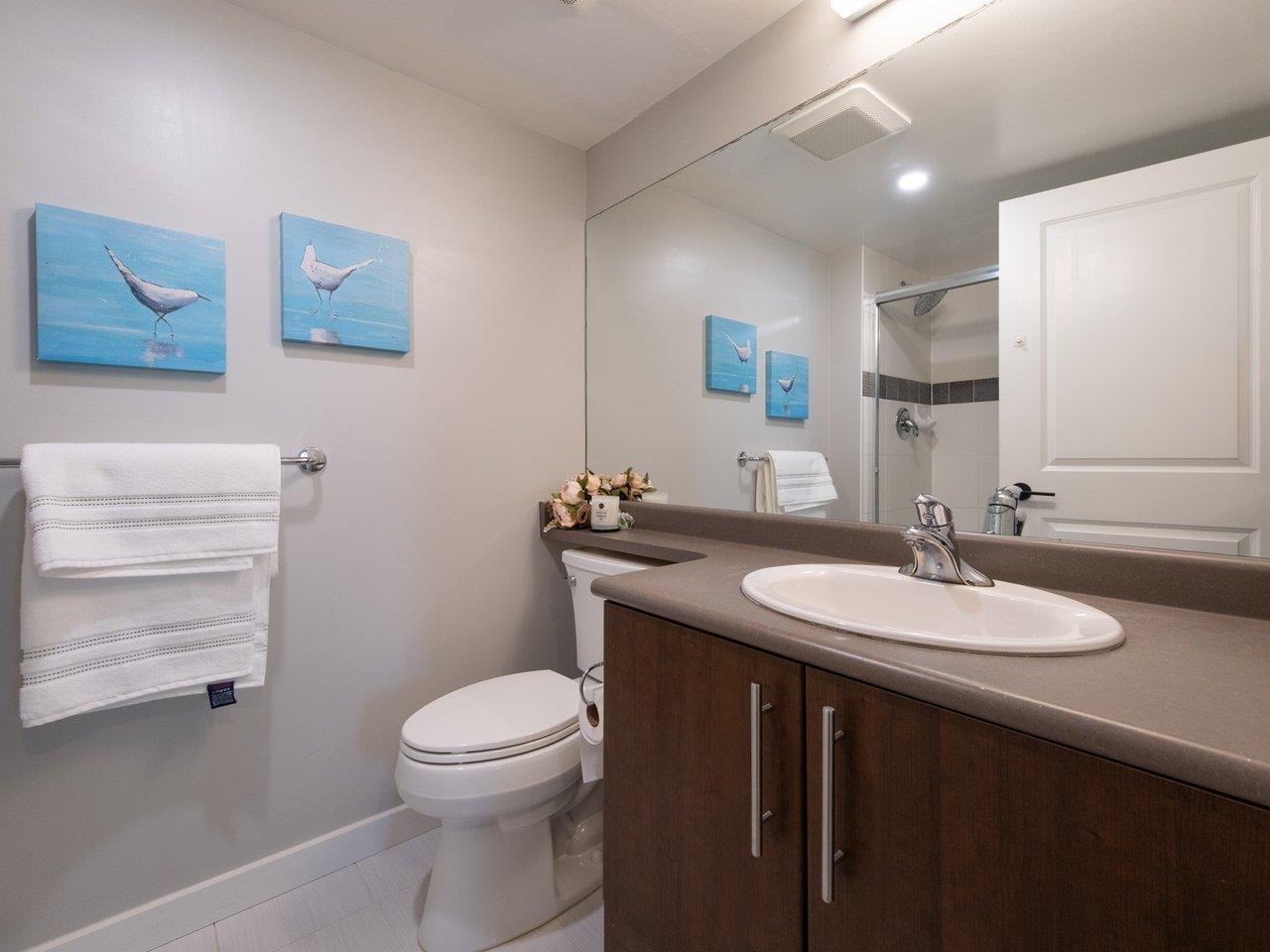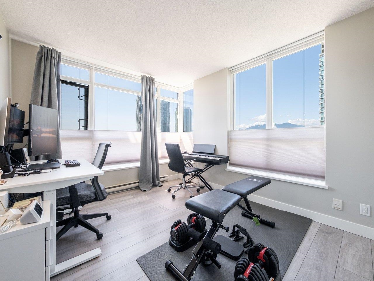 NW corner unit with mountain and city views. 2 non-adjacent bedrooms & 2 full baths in open concept living space. The covered large balcony is perfect for entertaining. Amenities include visitor parking (EVC possible), a party room, exercise room, bike room, hot tub, wet & dry sauna, and a private and beautiful garden, all maintained by a proactive strata. AC allowed, and major exterior improvement completed. Steps to the Amazing Brentwood Shopping Mall, Skytrain & Public Transit, walking distance to Costco...