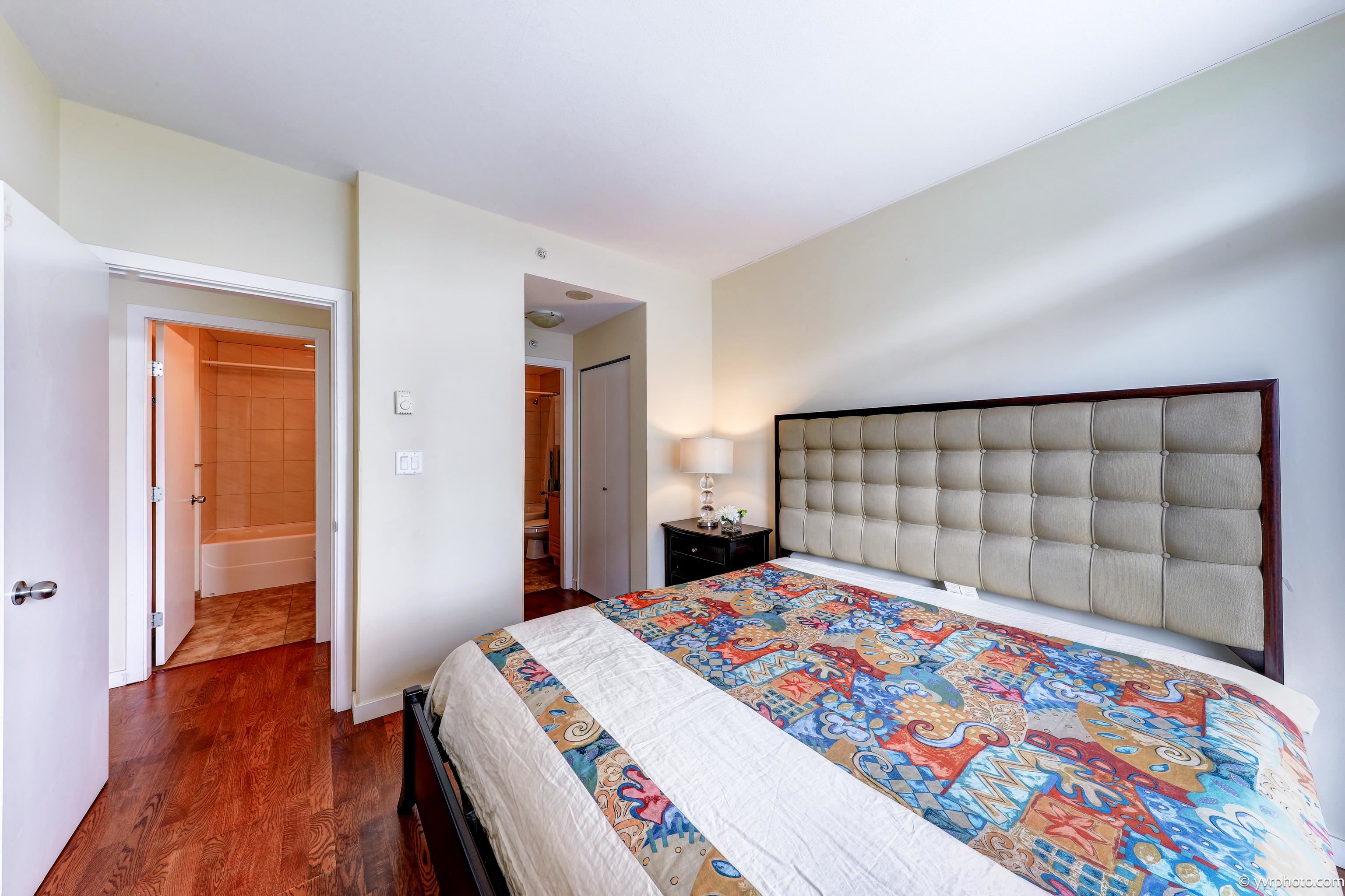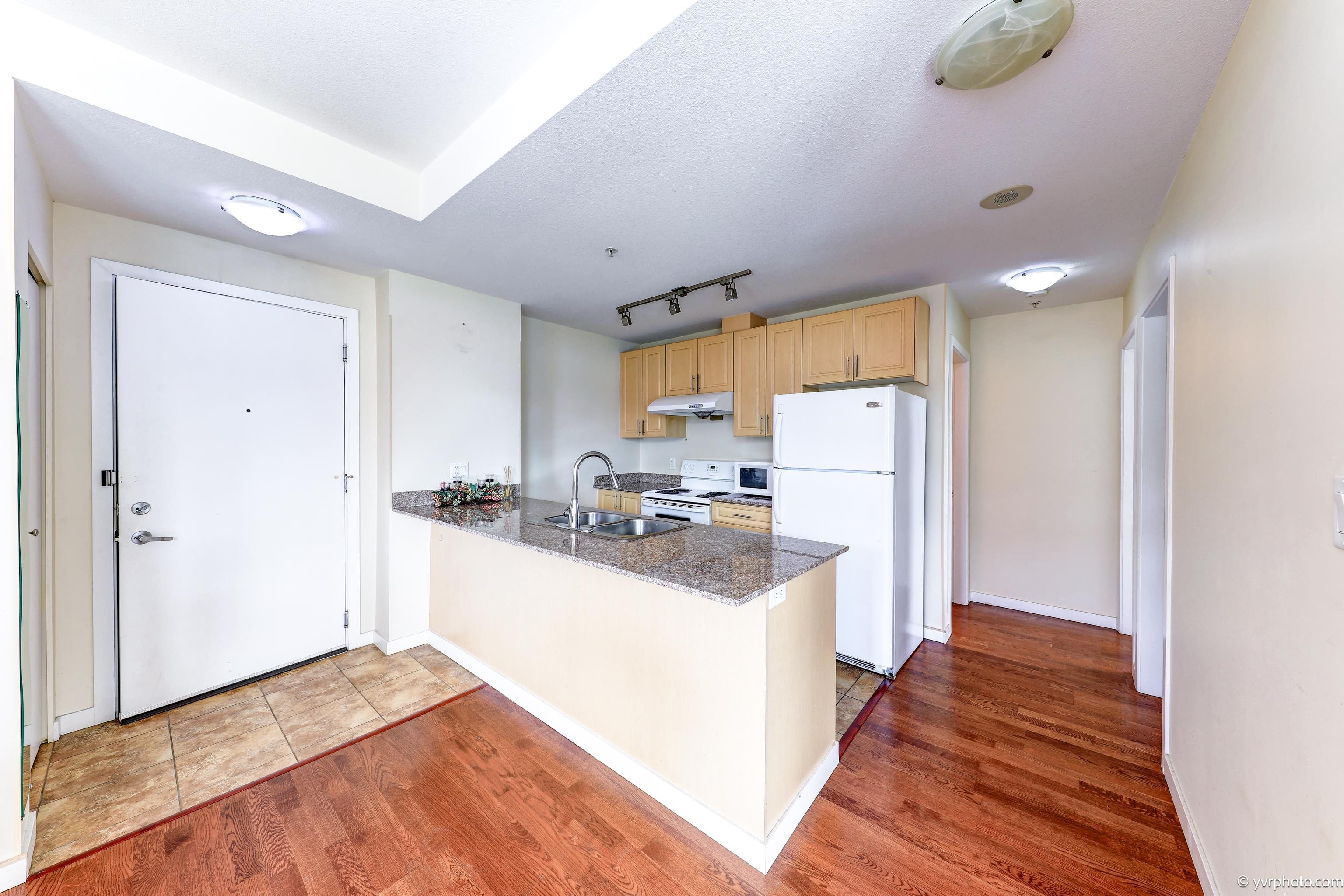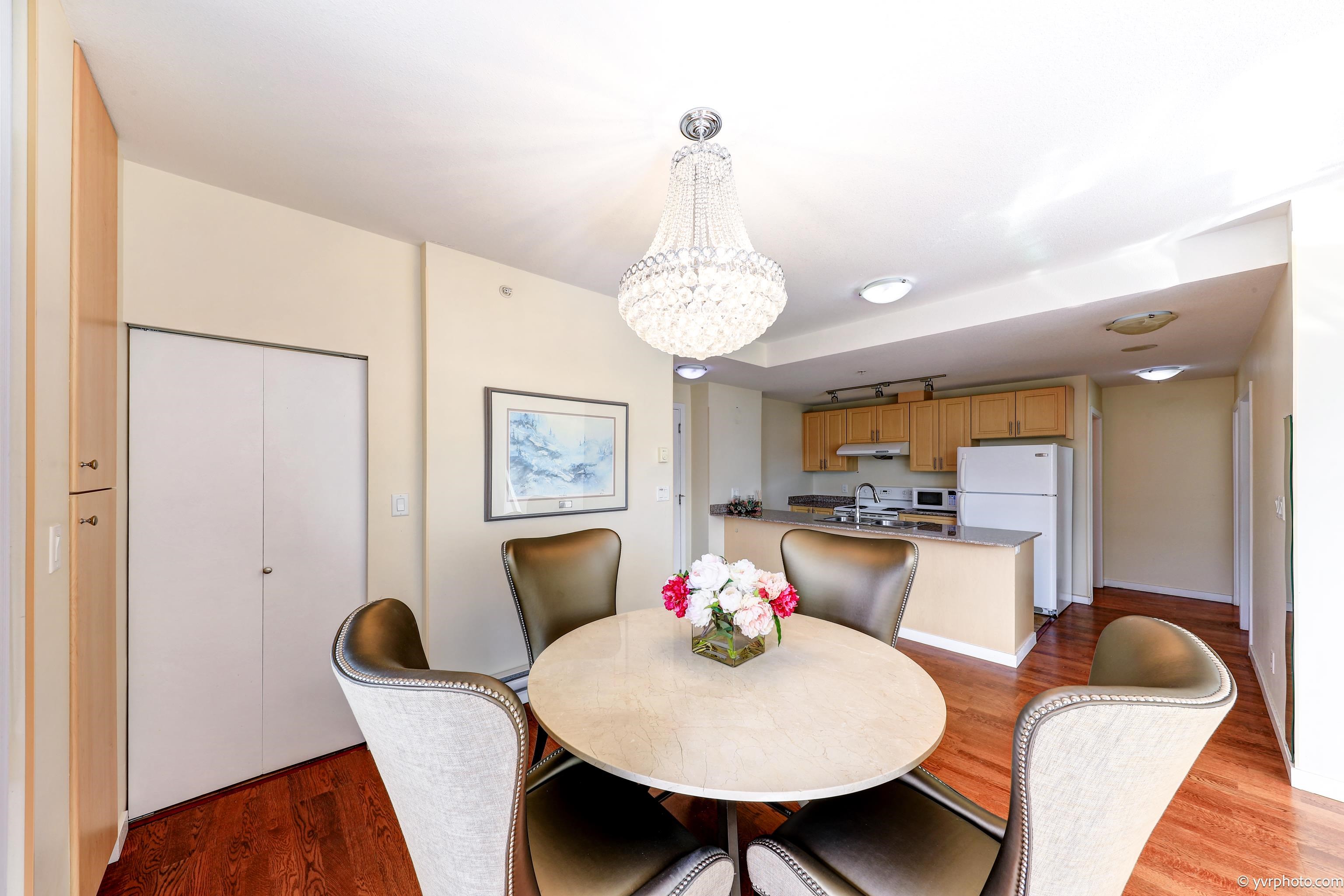 Welcome to Merry Park, Super convenient location at downtown Richmond. This Bright 861sf, Quiet SW corner suite with 2 bedrooms, 2 full baths and 2 balconies of 270 degree view of mountain and city. 9' ceiling and spacious layout makes living room bright. In-suite laundry, stone countertops, hardwood flooring, covered balcony and very clean. Near New bus loop, short walk to Richmond Centre, 24 hour Shoppers Drug, banks, restaurants, malls, Skytrain station, Kwantlan Polytechnic University, Parks and more! R...