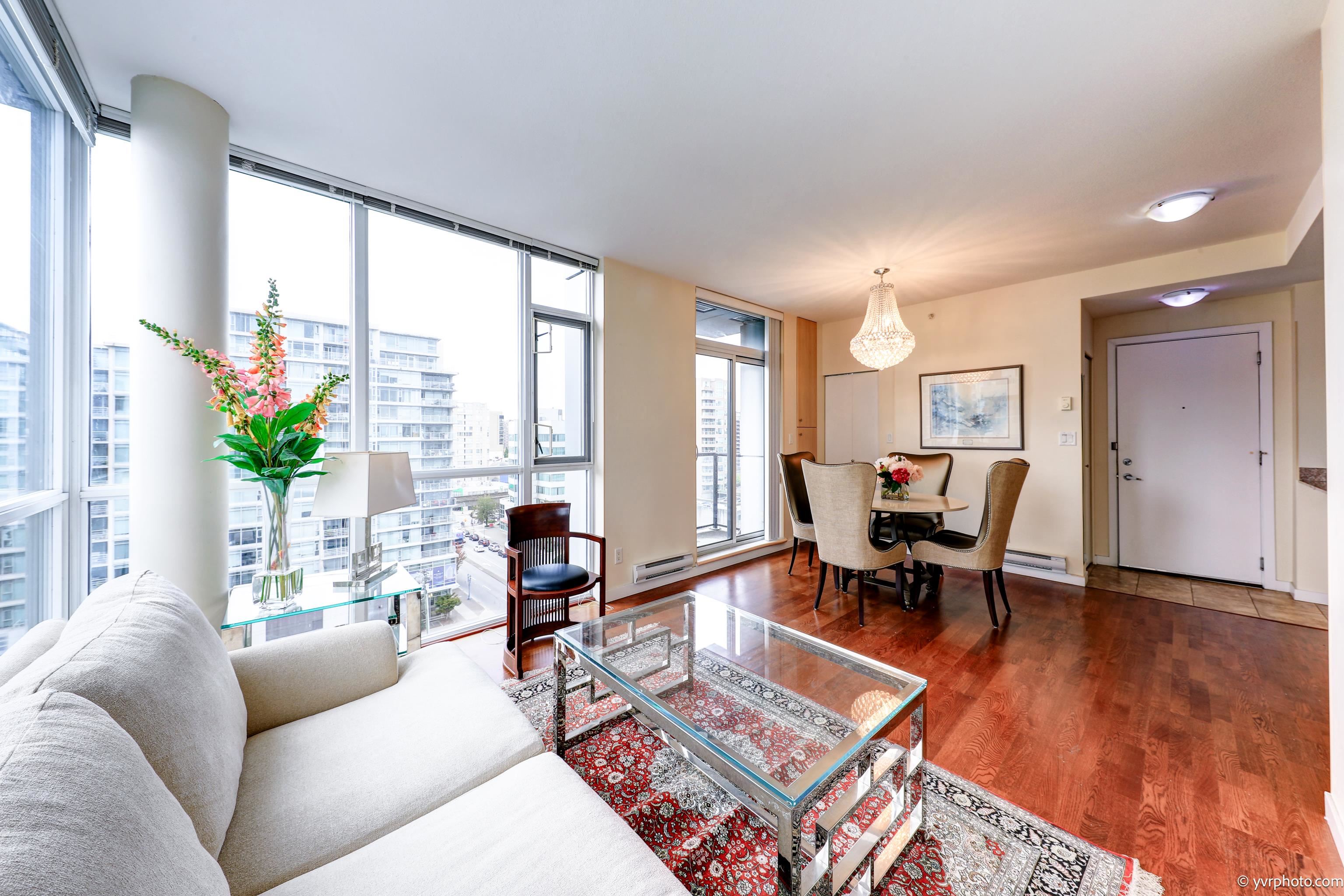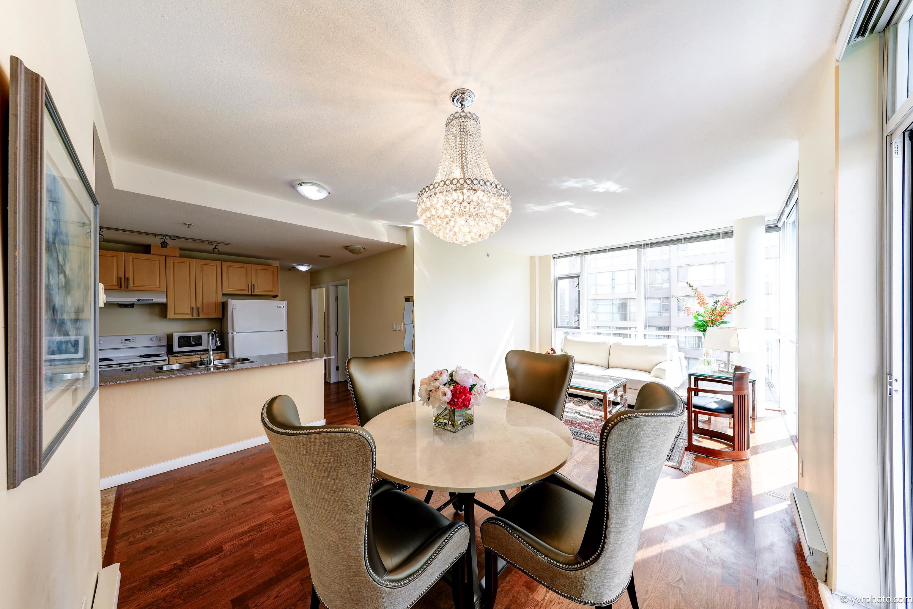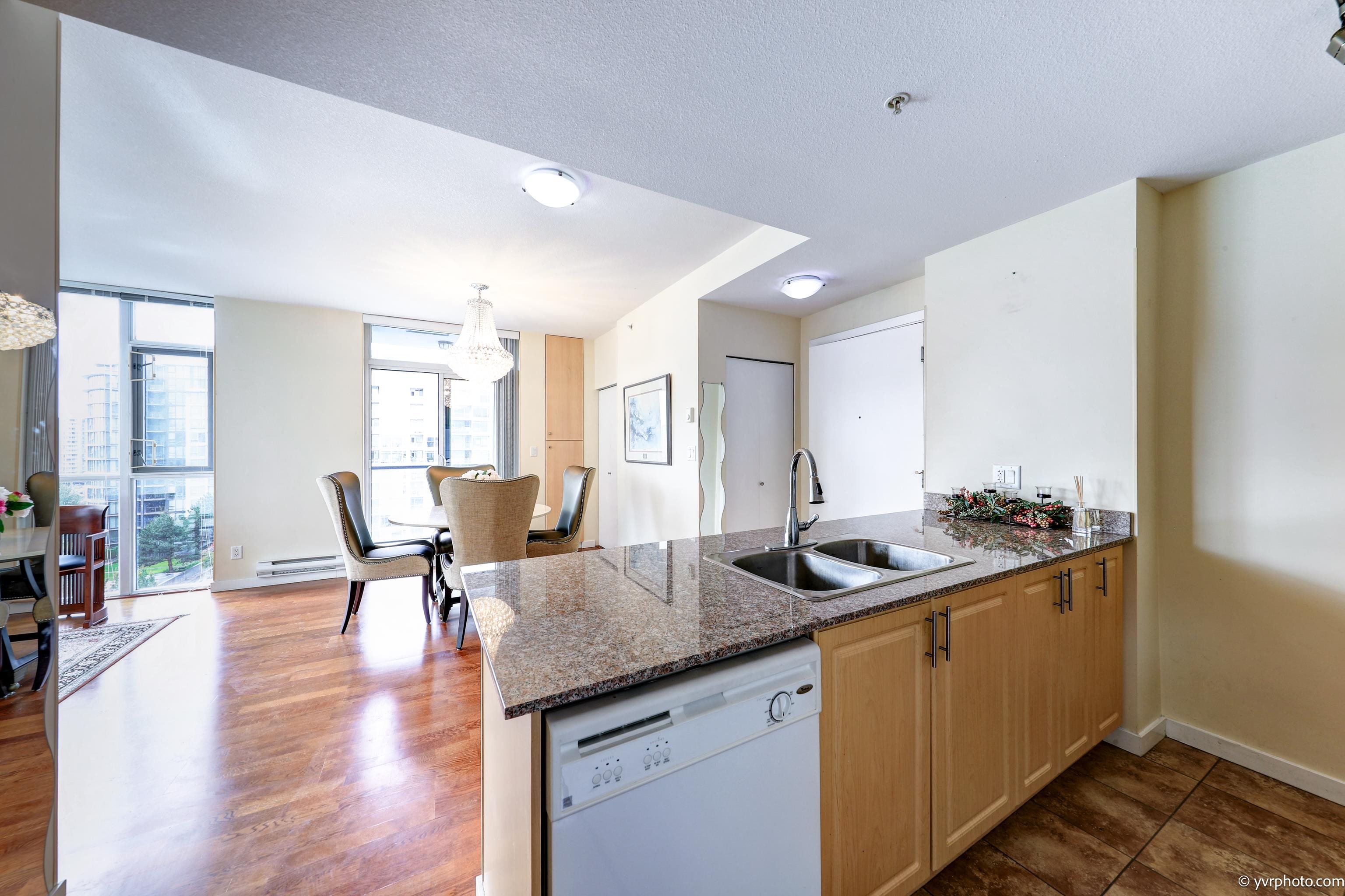 Welcome to Merry Park, Super convenient location at downtown Richmond. This Bright 861sf, Quiet SW corner suite with 2 bedrooms, 2 full baths and 2 balconies of 270 degree view of mountain and city. 9' ceiling and spacious layout makes living room bright. In-suite laundry, stone countertops, hardwood flooring, covered balcony and very clean. Near New bus loop, short walk to Richmond Centre, 24 hour Shoppers Drug, banks, restaurants, malls, Skytrain station, Kwantlan Polytechnic University, Parks and more! R...
