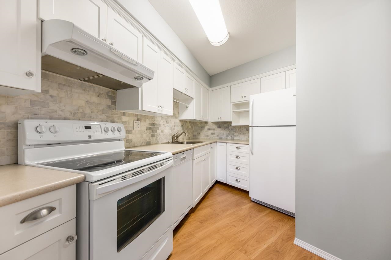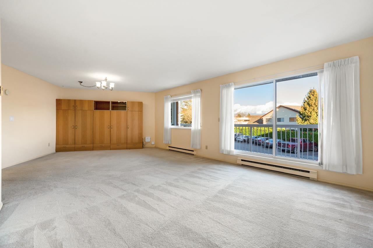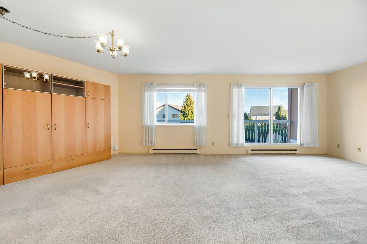 Bright and SPACIOUS 1 bedroom, 1.5 bath unit in desirable Mellis Gardens! Over 940 sq ft and will easily handle all of your house sized furniture! Features updated kitchen and baths, tons of storage space and an actual insuite laundry room! Building was rainscreened including new windows so buy with confidence! Super convenient location with easy access to Highways 99 and 91 and bridges into Vancouver. Move in condition, put this one on your list!