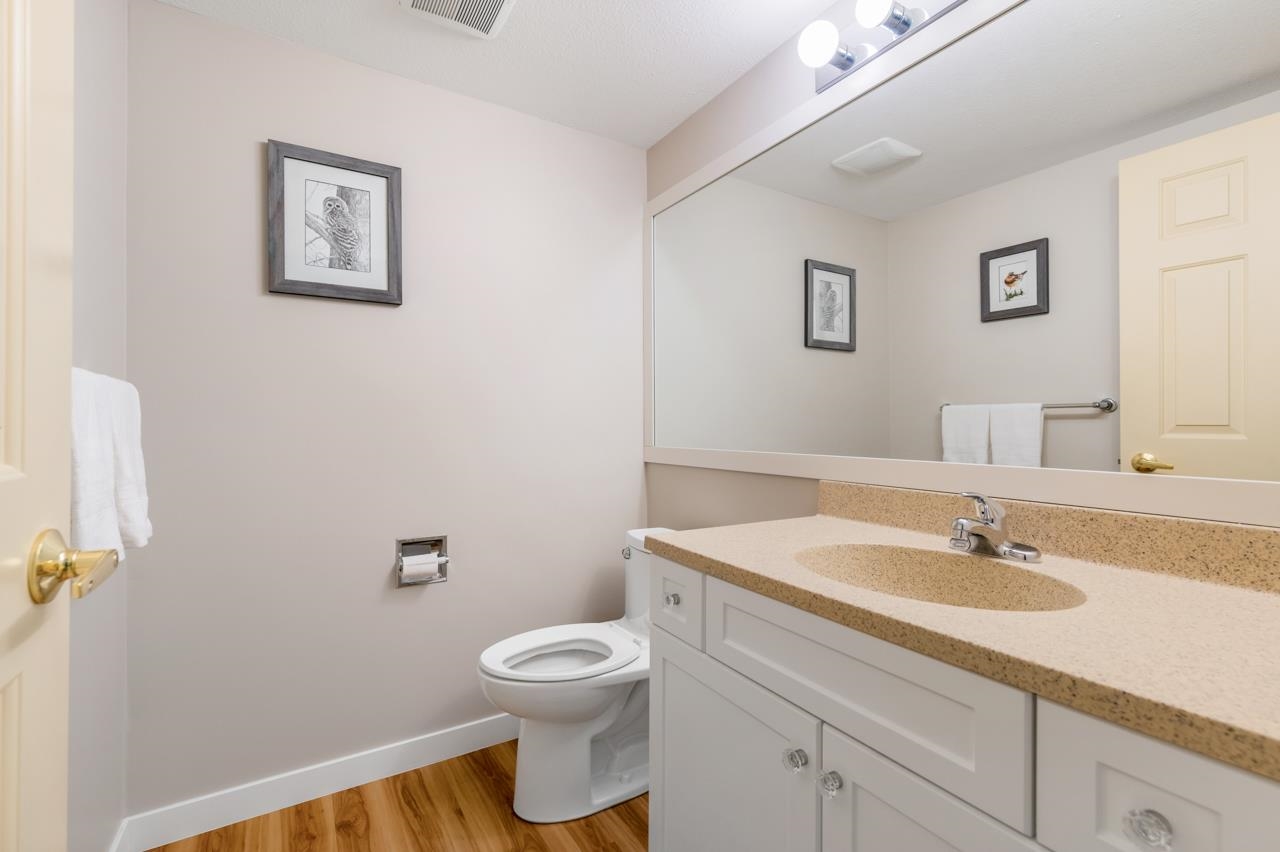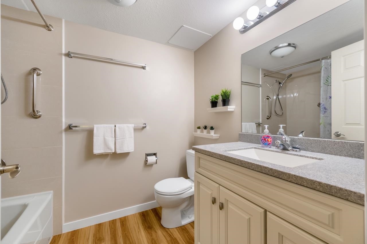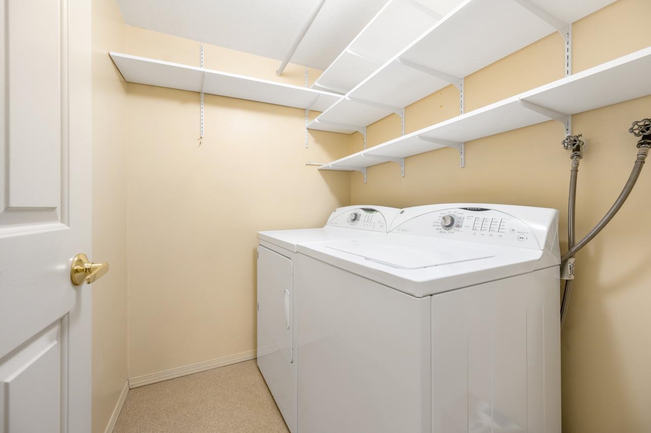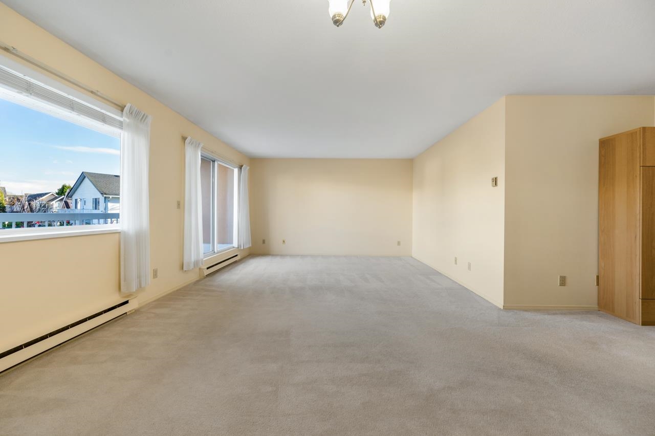 Bright and SPACIOUS 1 bedroom, 1.5 bath unit in desirable Mellis Gardens! Over 940 sq ft and will easily handle all of your house sized furniture! Features updated kitchen and baths, tons of storage space and an actual insuite laundry room! Building was rainscreened including new windows so buy with confidence! Super convenient location with easy access to Highways 99 and 91 and bridges into Vancouver. Move in condition, put this one on your list!