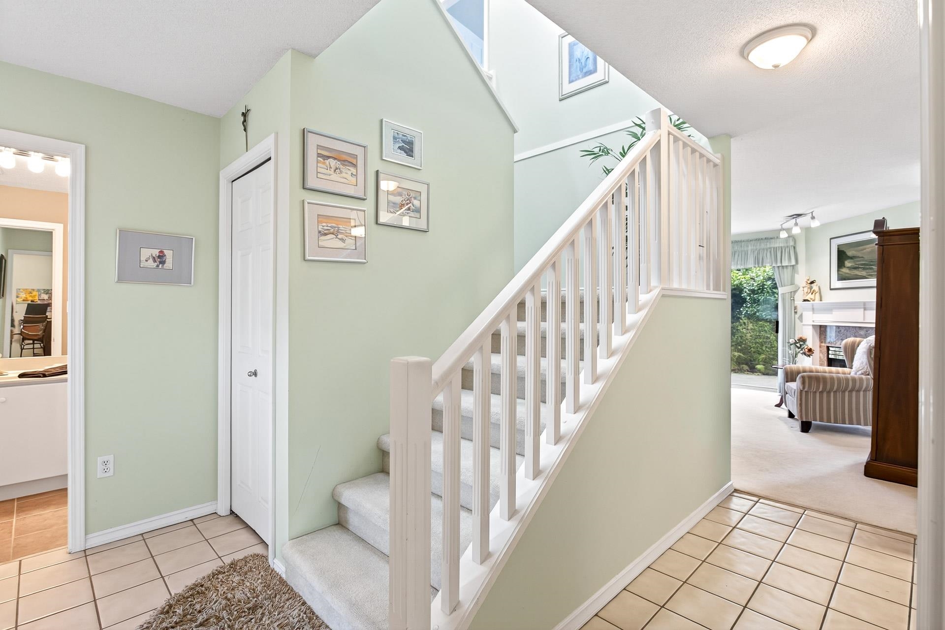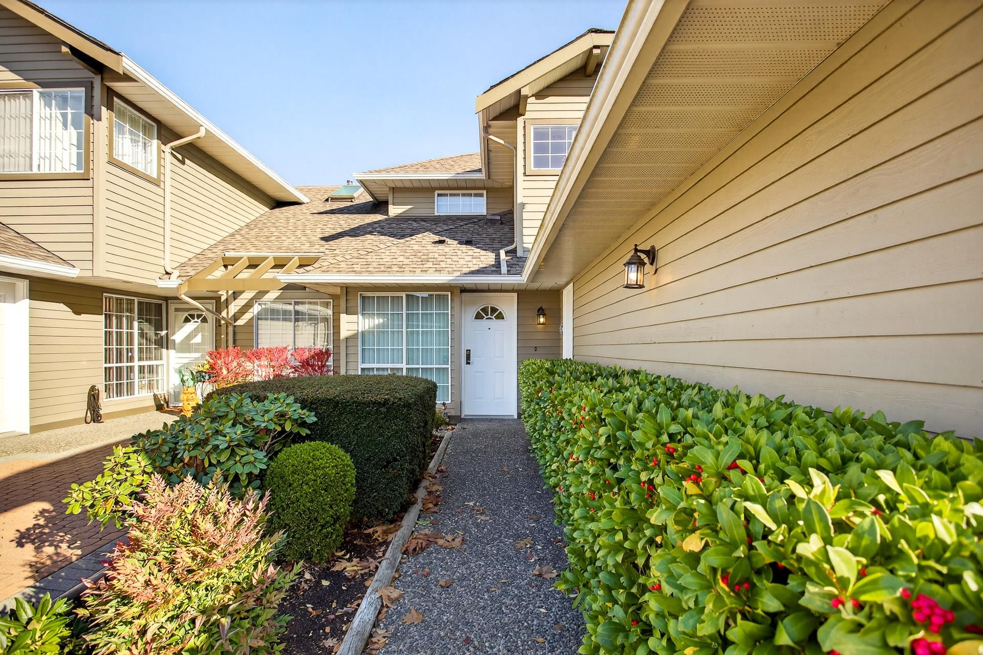 FIRST TIME ON THE MARKET! Welcome to Sunrise Pointe, a desirable gated sought-after community in the heart of South Surrey/White Rock. This bright and immaculate 3-bdrm, 2-level END UNIT townhome features a spacious layout. The living room features a cozy gas fireplace, vaulted ceilings, and sliding doors that open to your MASSIVE and PRIVATE wraparound patio and garden area. The kitchen includes ample counter space and cabinets, perfect for everyday living and entertaining. Enjoy a side-by-side DOUBLE gara...
