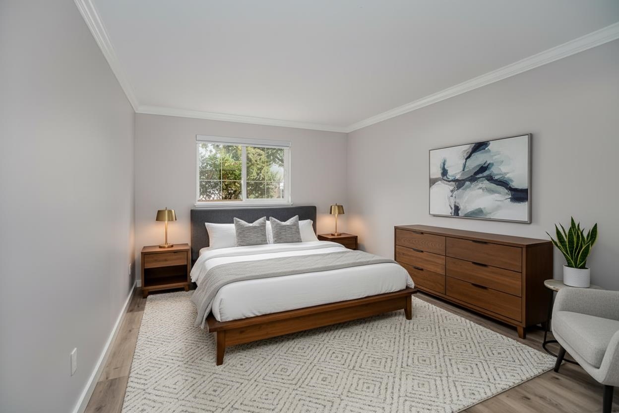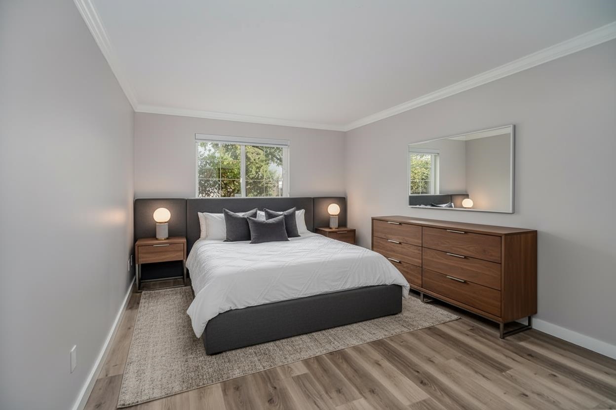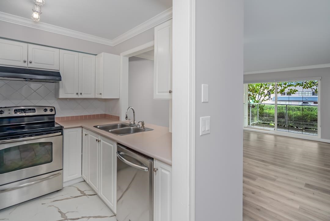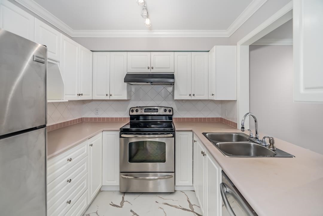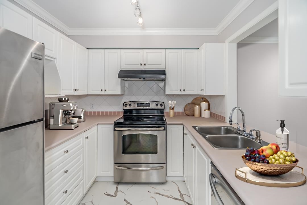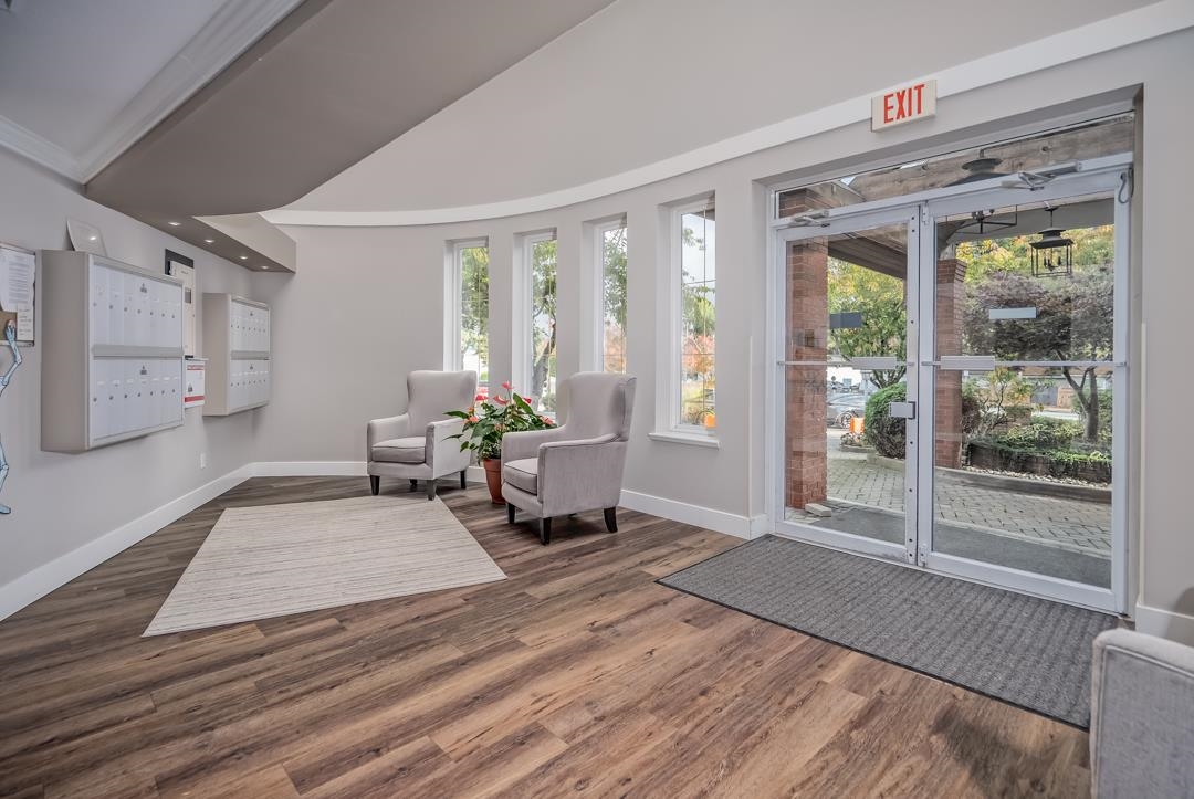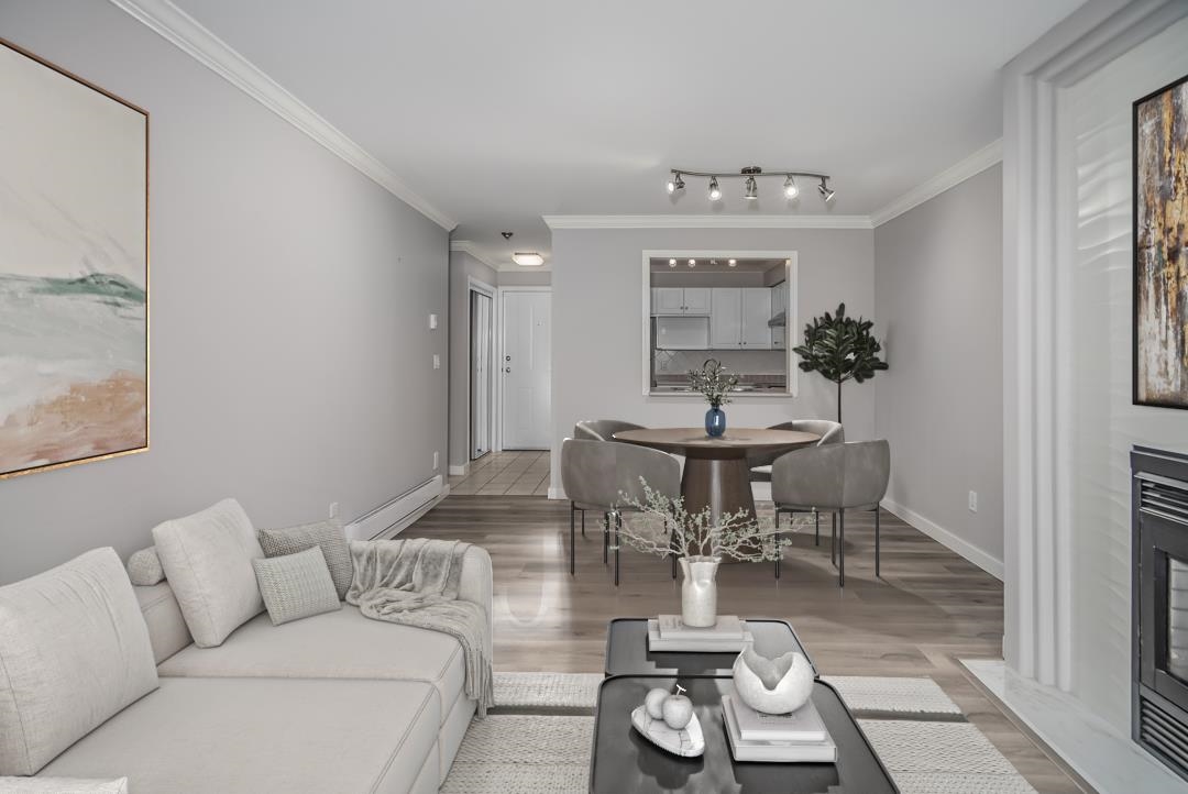Delightful, beautifully updated 2 bedroom 2 bath end unit apartment in Semiahoo Court, a 27-unit boutique building in the heart of Sunnyside Park! This home which was the original show home for the development, boasts high quality window coverings, extensive millwork, gorgeous modern lighting, freshly painted throughout Oct 2025, beautiful floor to ceiing tiled fireplace, custom closet organizers, laminate flooring & high end Maytag washer/dryer are 2 years young. Excellent location in close proximity to tr...