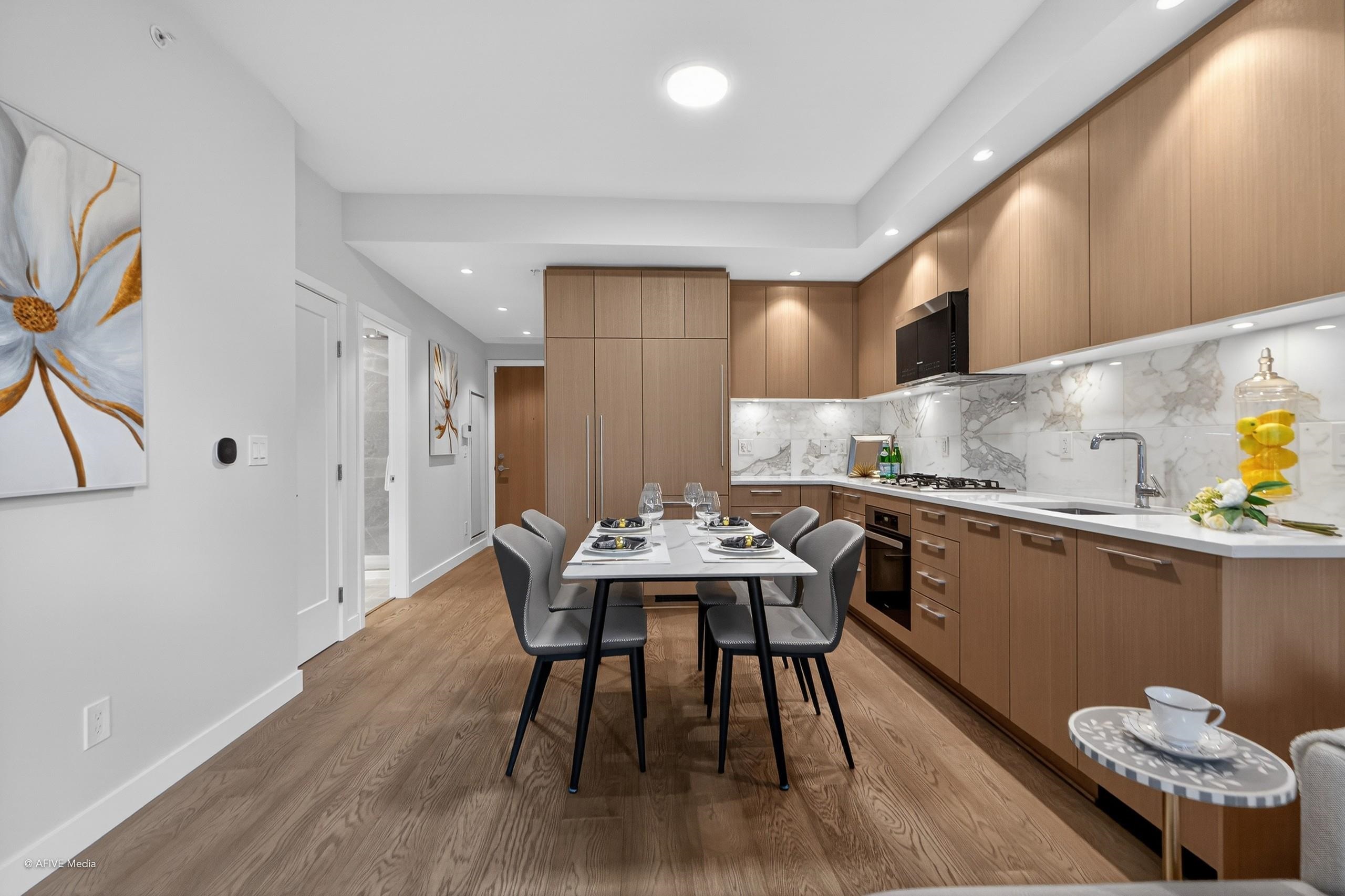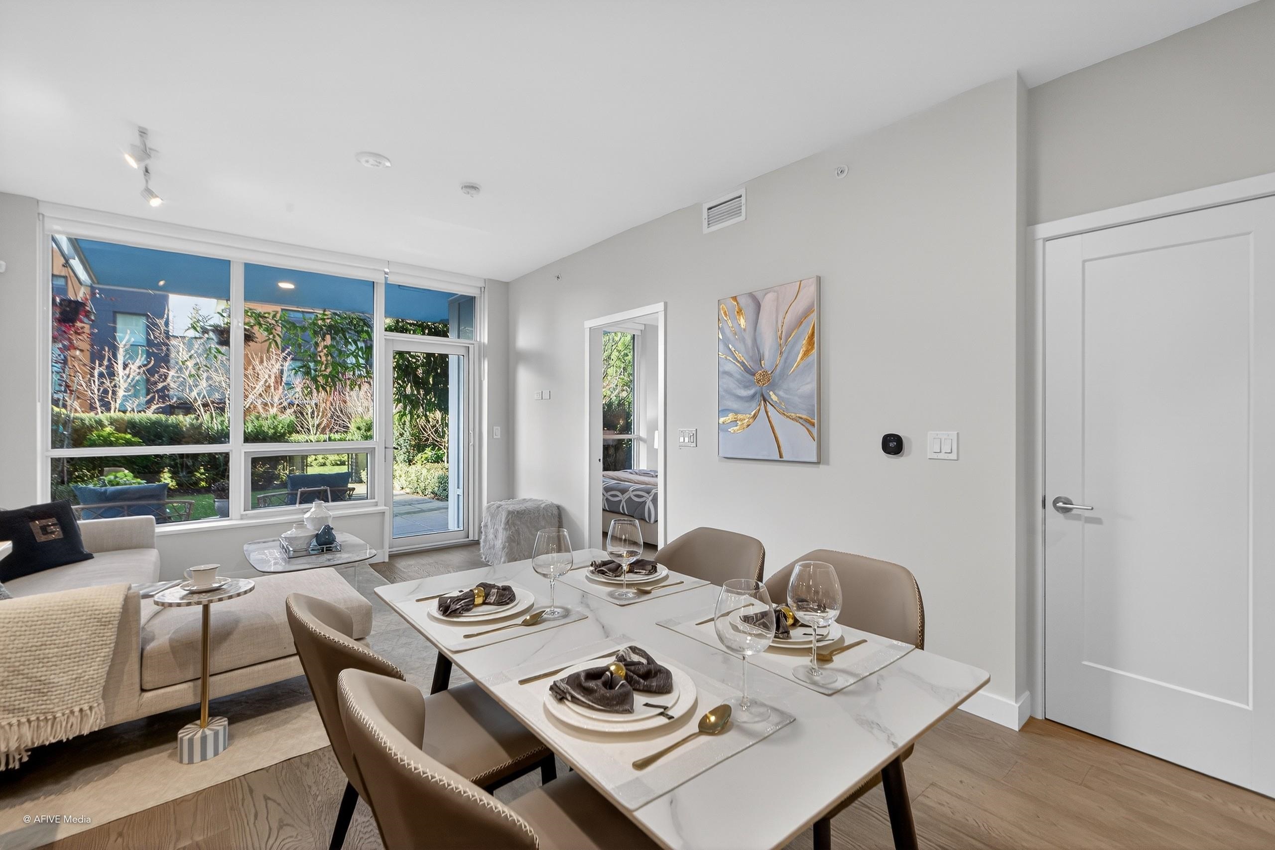 Welcome to The Conservatory by Polygon, located in UBC's Wesbrook Village. This unique ground-level one-bedroom home features high ceilings, Miele appliances, quartz countertops, an extra-large walk-in closet, and a spacious private fenced yard. Enjoy excellent amenities including concierge, dog wash room, lounge, smart parcel lockers, one parking stall, and a large private storage room. Restaurants, shops, and Pacific Spirit Park are nearby. Top school catchment: Norma Rose Point School and University Hill...