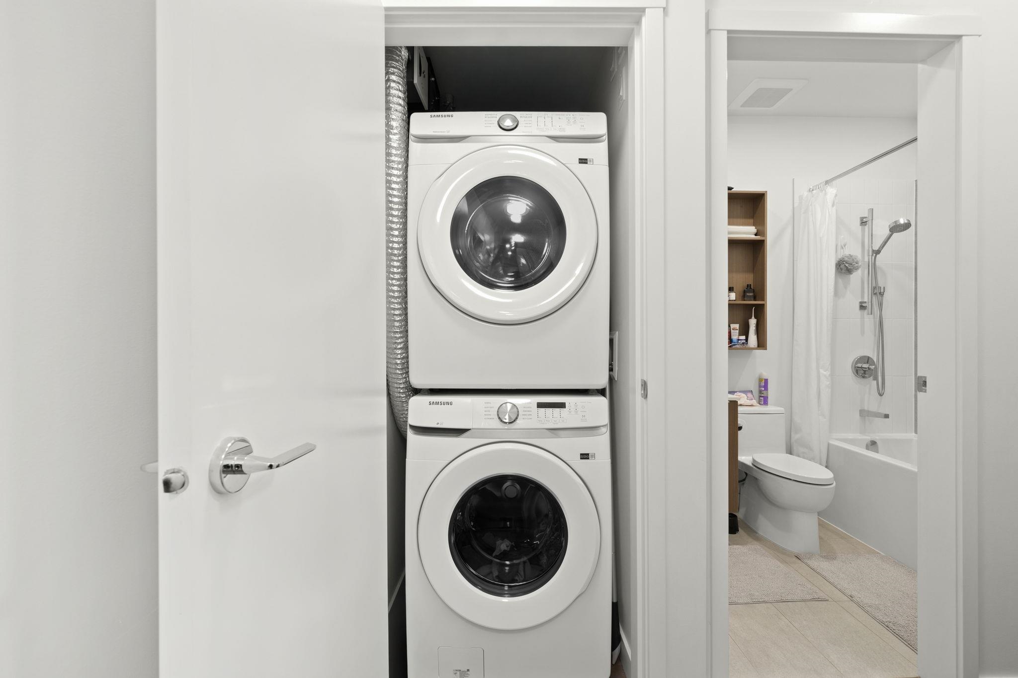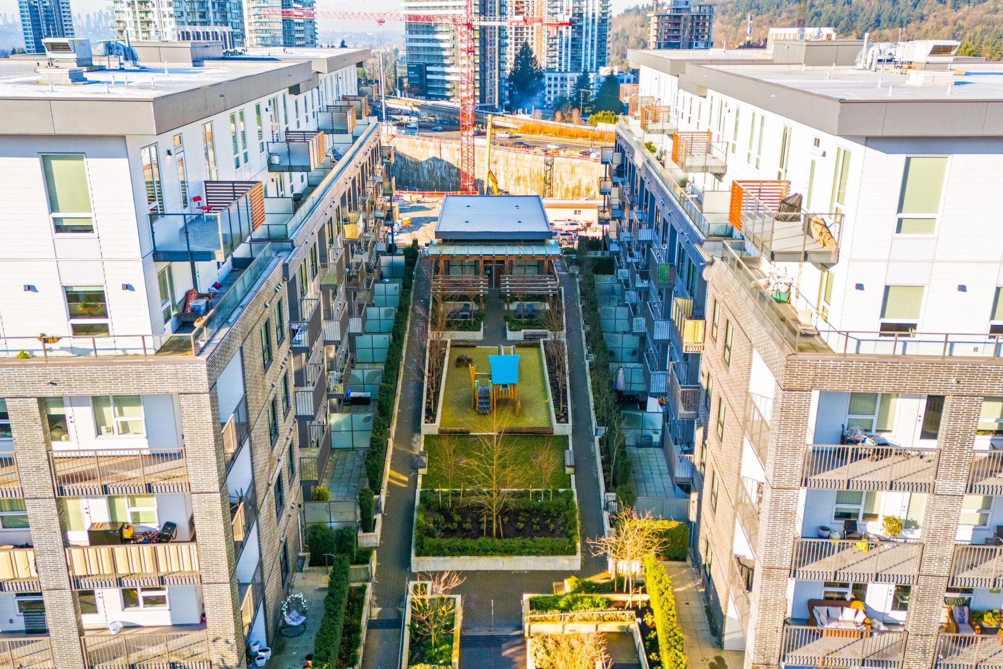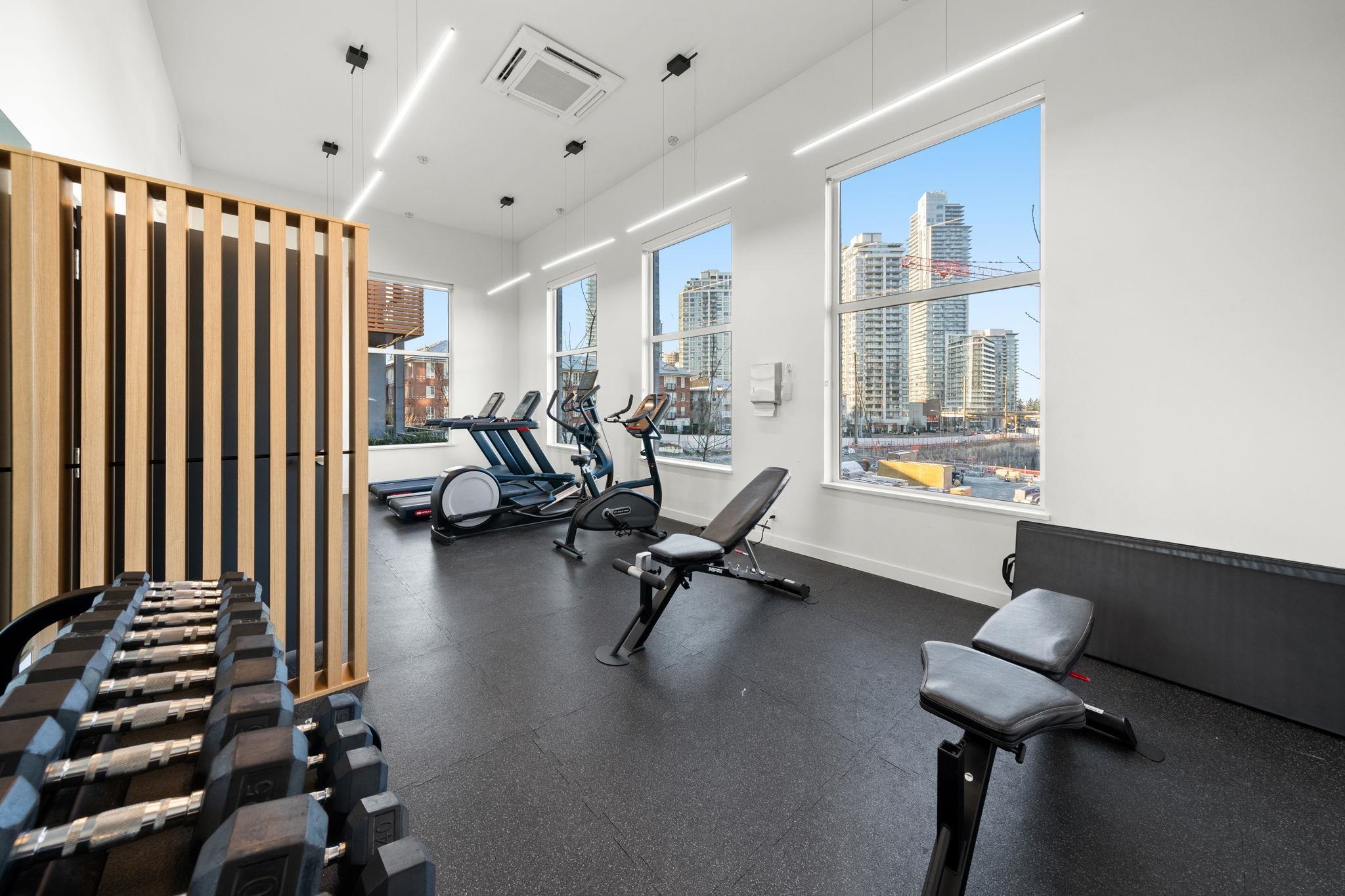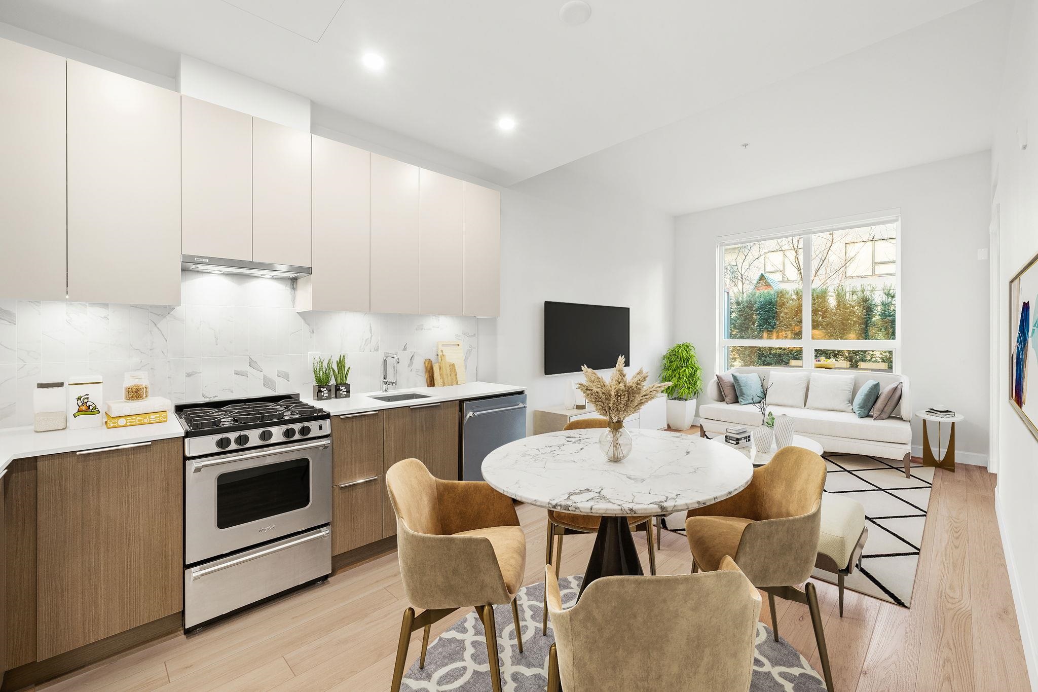 A truly unique offering at Port & Mill in West Coquitlam. This one-of-a-kind 1-bedroom home features soaring 9-foot ceilings & a sleek, functional kitchen complete w/ a gas range & ample storage. Enjoy direct access from the common courtyard—an ideal setup for pet owners, strollers, or anyone who values the ease of coming and going without relying on elevators. The expansive ground-level patio offers over 200 sq ft of private outdoor space, perfect for relaxing or entertaining. Built-in air conditioning ens...