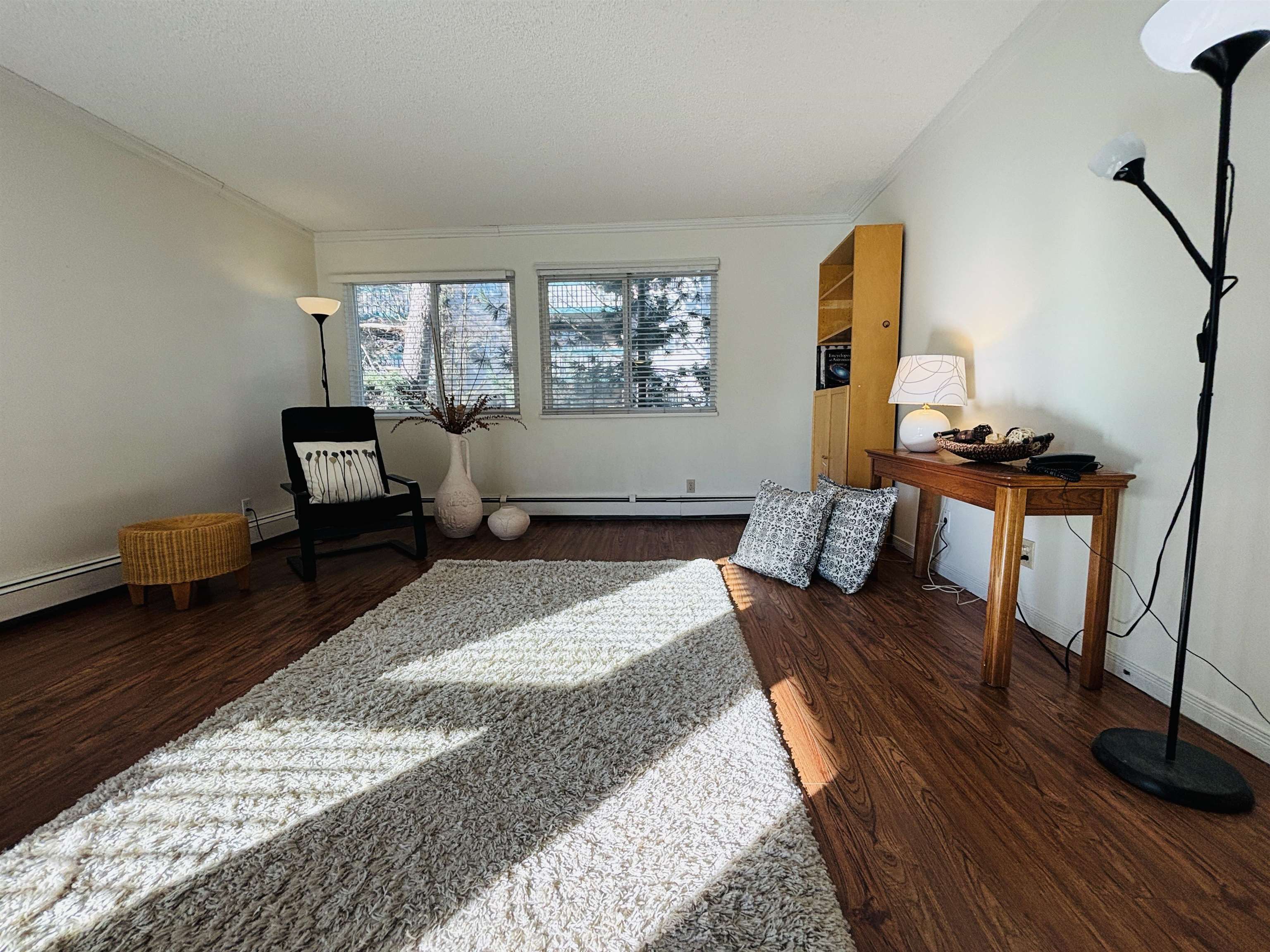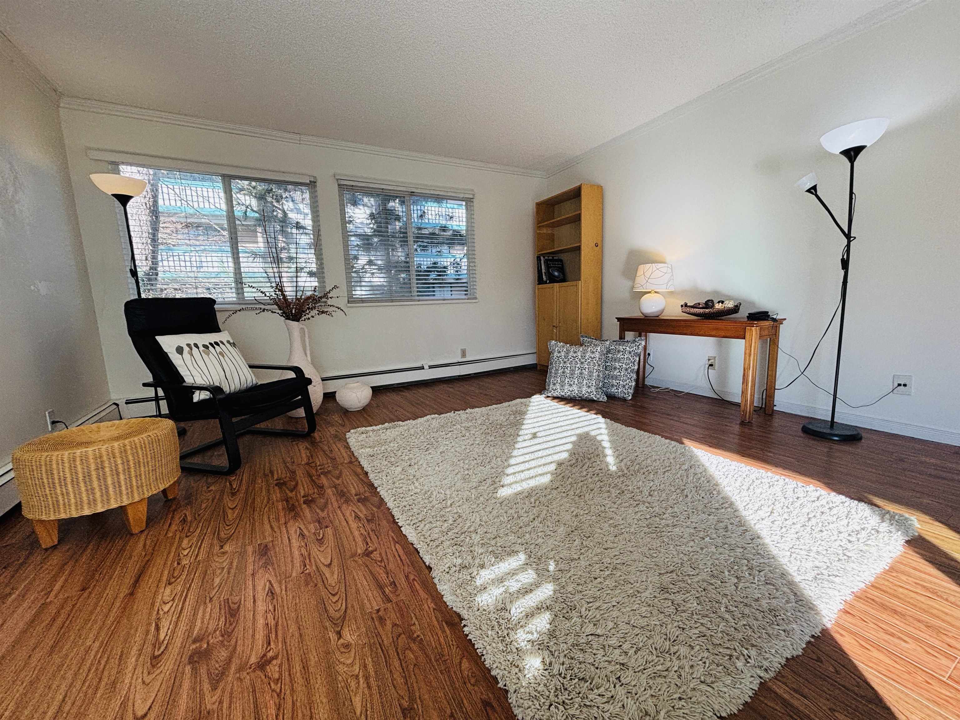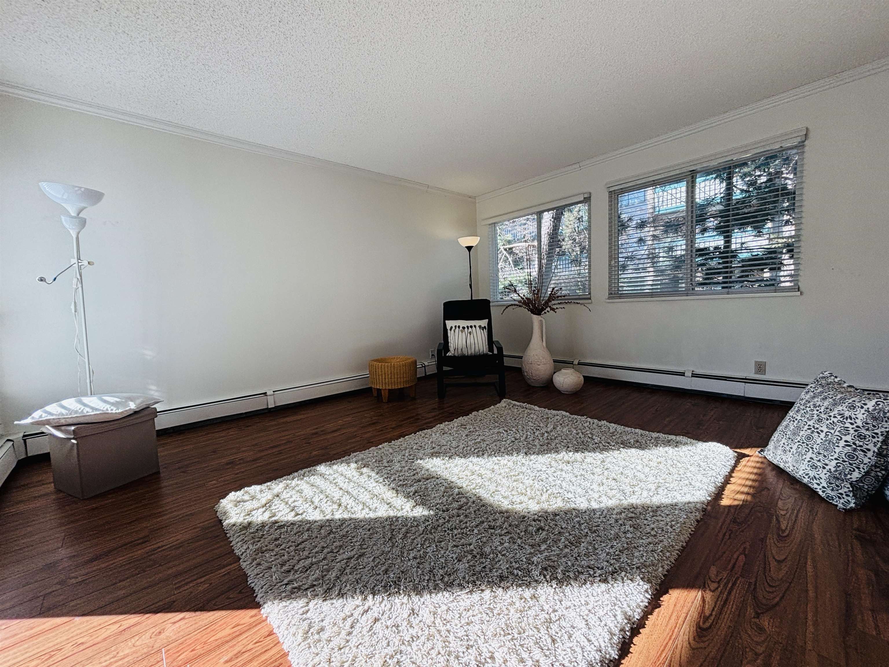 A bright, quiet corner unit. 2 bedrooms with 1 bath in the heart of Richmond. Easy to show. Sizable, Well-maintained building. Strata has done the roof, window, patio door, and elevator upgrade. Few strata upgrade projects are complete. Water heating is included in the strata fee. Great location near a shopping mall and sky train station. Walkable distance to Cook Elementary School. Great for a growing family or investors. Easy to show. Do not miss out. Open House : Feb 1, Sunday, 1:30 to 3:30 pm.