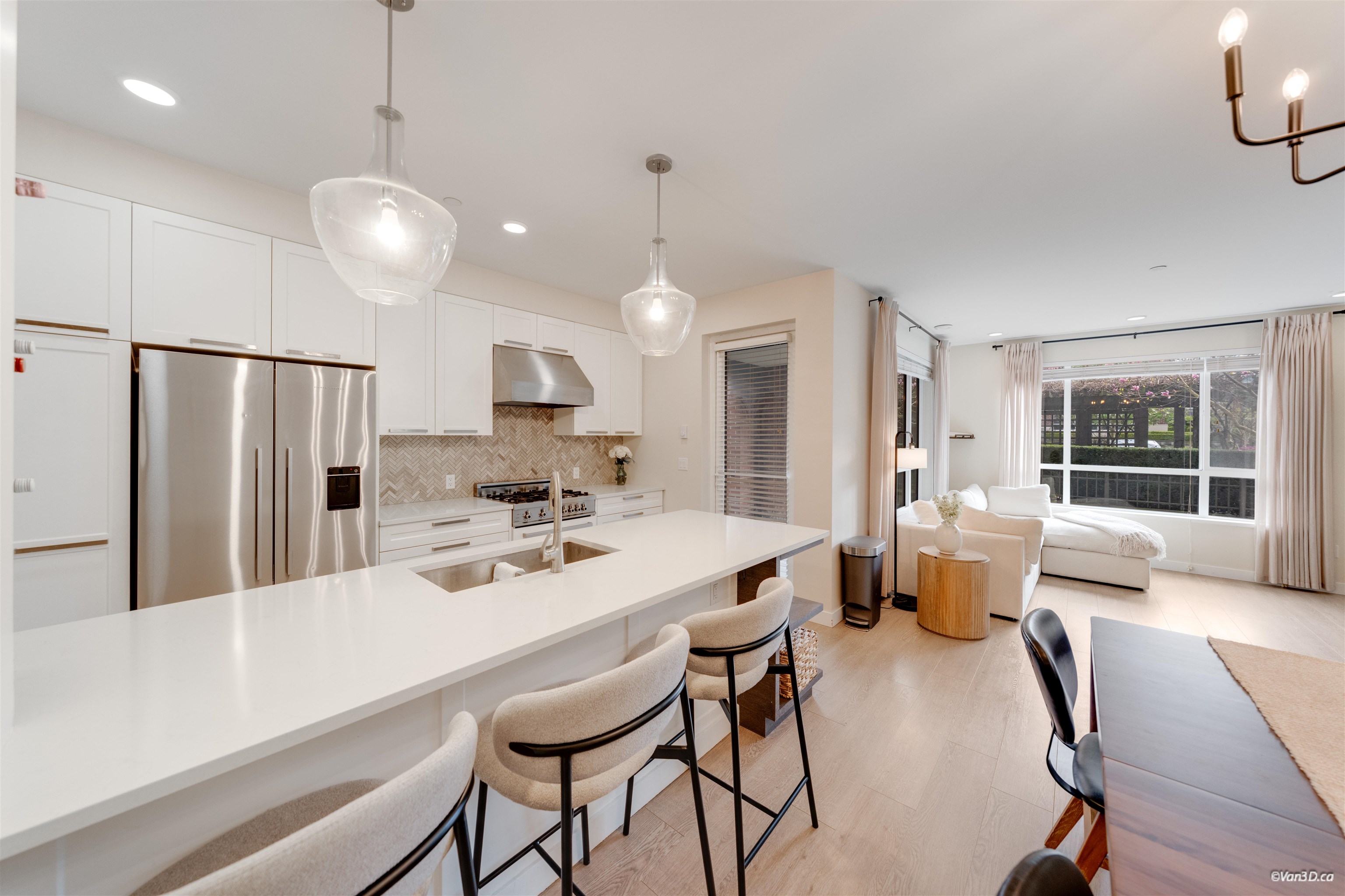 This is the unit you have been waiting for! Rare opportunity to own a spacious ground-floor 3 Bed + 2 Bath home at The Residences at Gateway. Offering over 1,200 sqft of well-designed living space, this pristine unit features high ceilings, open-concept layout, and generously sized rooms throughout. The modern kitchen includes a gas range, quartz counters, and quality cabinetry. Enjoy luxury living with high quality finishings throughout & a wrap around fully fenced patio ideal for relaxing or entertaining....