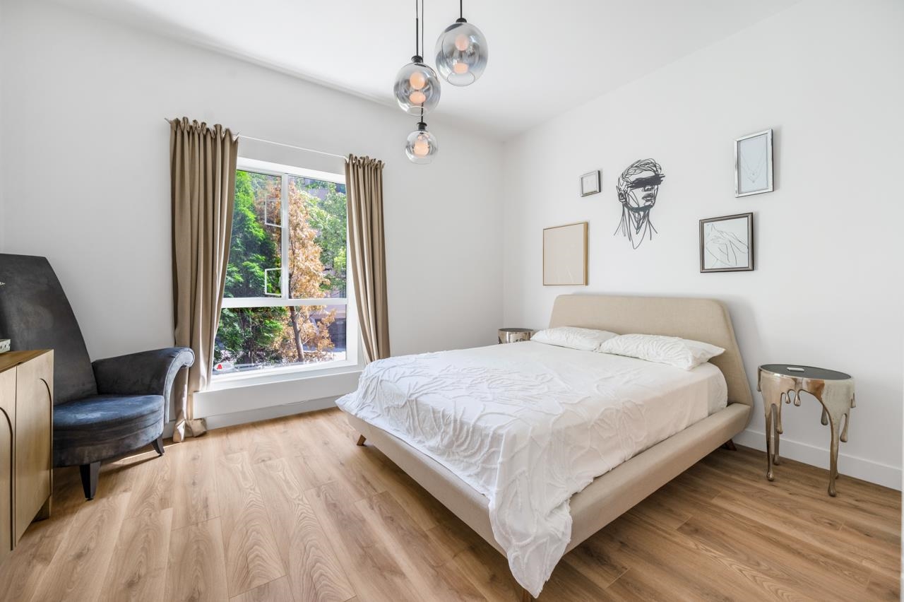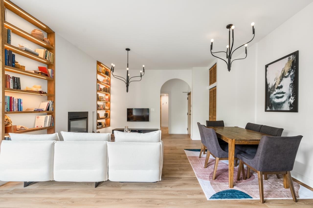 Stunning, fully renovated 2 bed, 2 bath ground floor corner unit with a huge private garden patio in a concrete building with direct SkyTrain access. Features include Euro oak flooring, Lutron smart lighting, spa-inspired bathrooms with imported tile, towel warmers, custom mirrors, and a built-in library. Furniture included. Enjoy secure parking, pool, sauna, gym, and rooftop patio. Located steps from shops, restaurants, daycares, schools, Royal Columbian Hospital, and the Quay. Pet and rental friendly — a ...