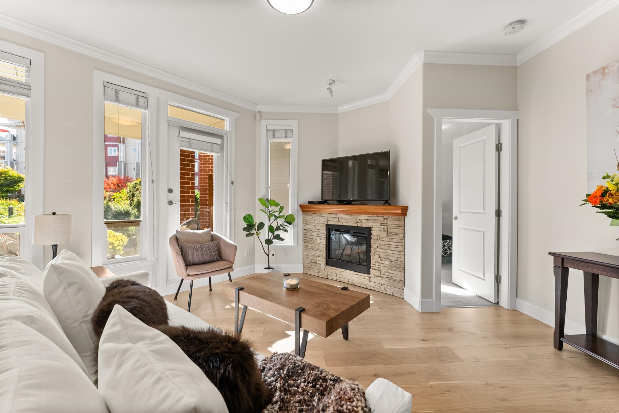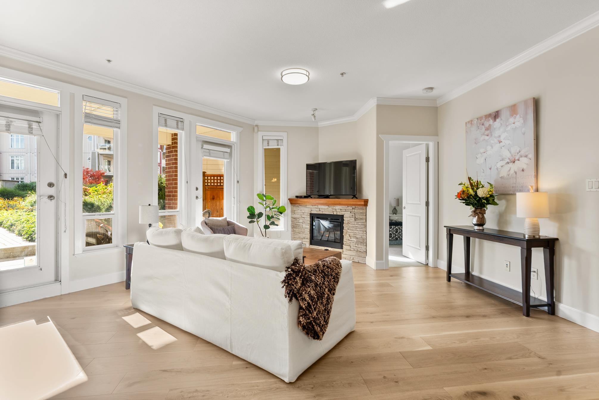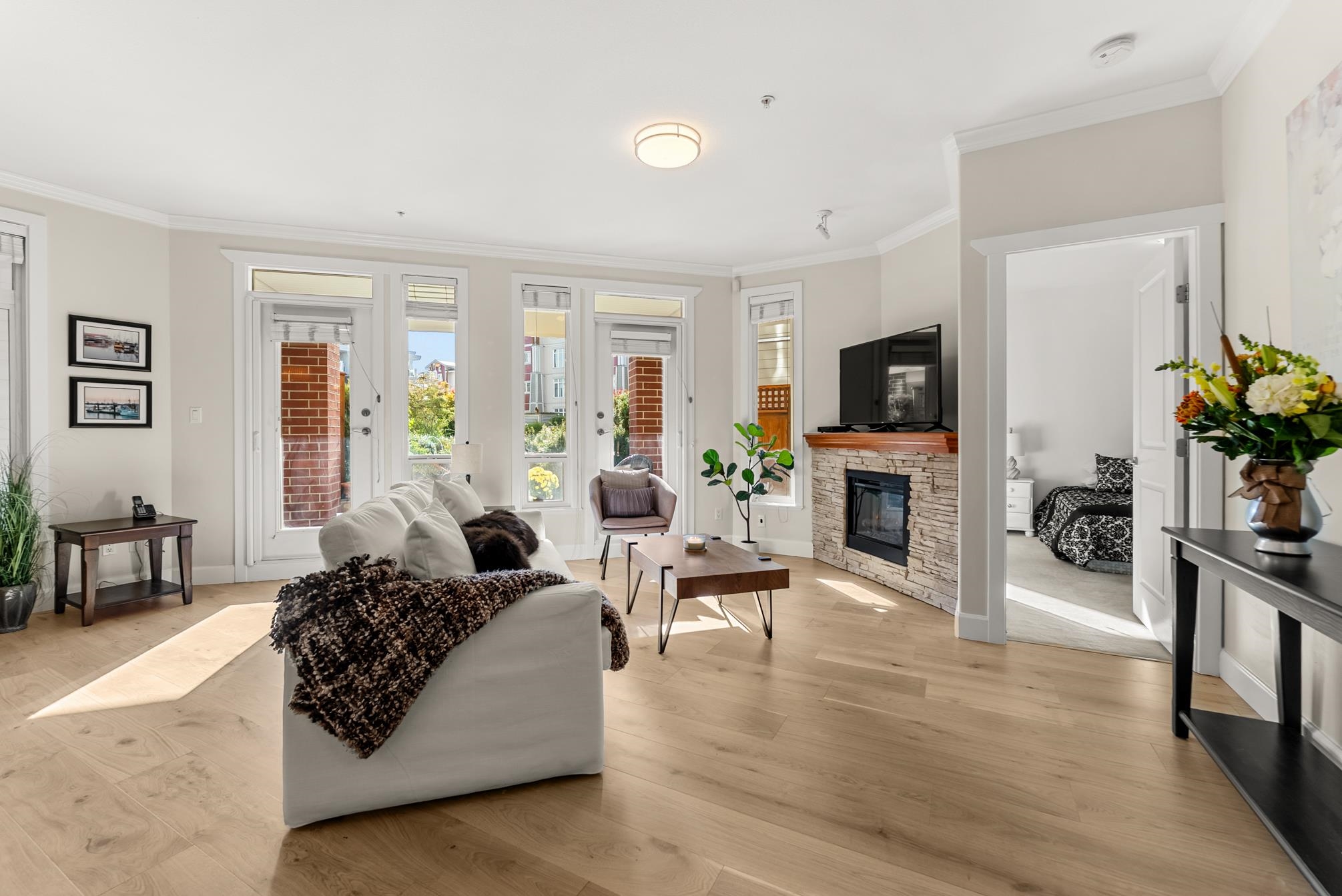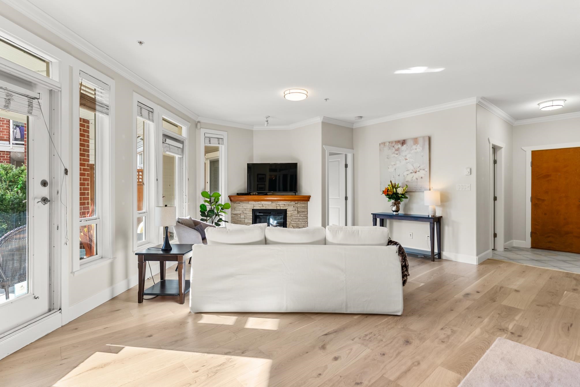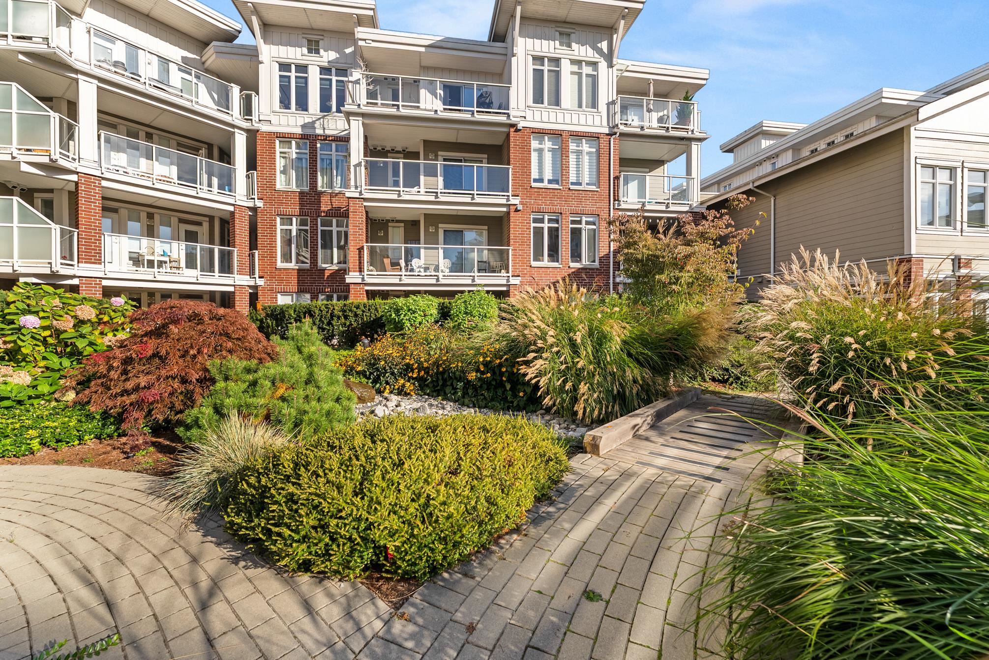 Experience the best of Steveston Village living in this beautiful walk in-walk out 2 bed PLUS den/storage, 2 full bath home! Bright, spacious, and southeast-facing, this home features brand-new flooring and large windows that fill the space with natural light. Step outside to your own huge private patio (328SF) overlooking the quiet courtyard, perfect for morning coffee or evening gatherings. Enjoy unbeatable convenience just steps from your patio on your own trail in the courtyard to the shops, restaurant...