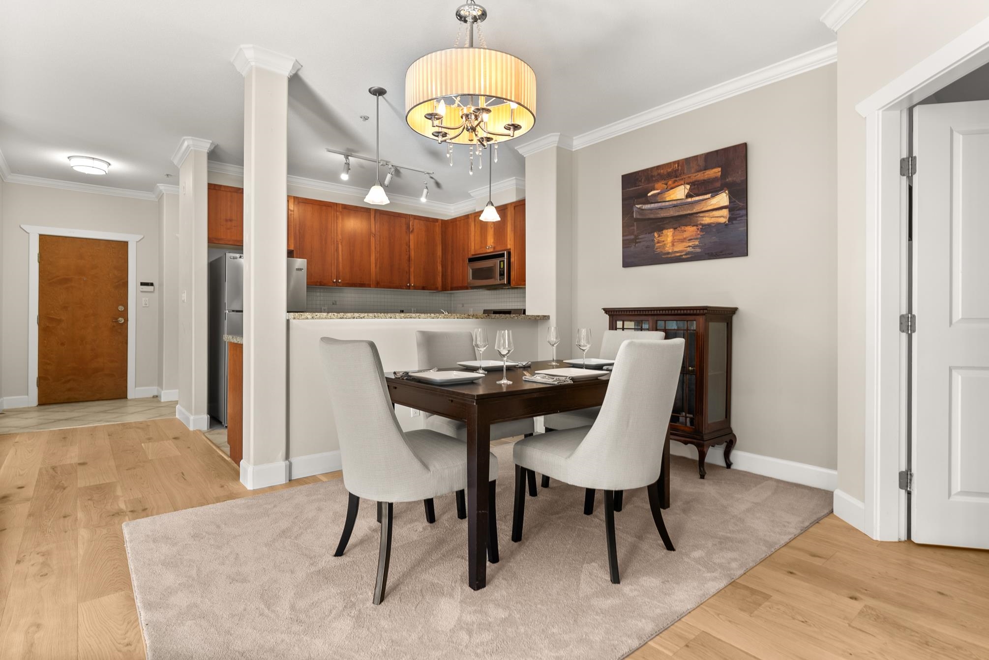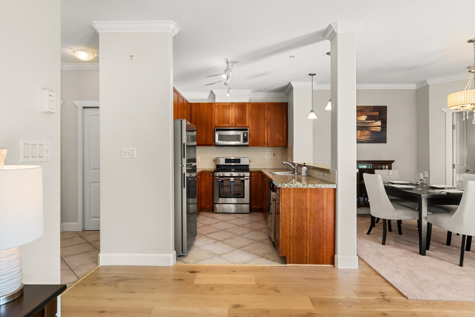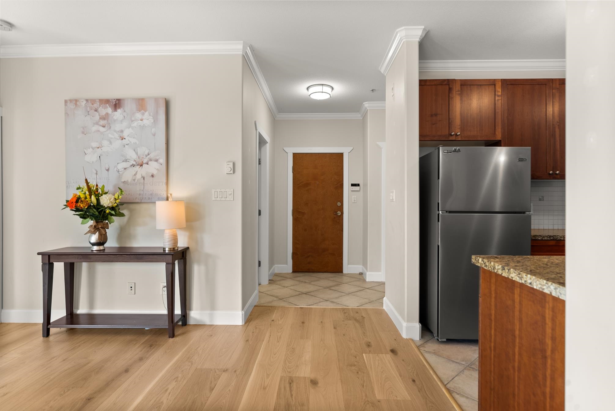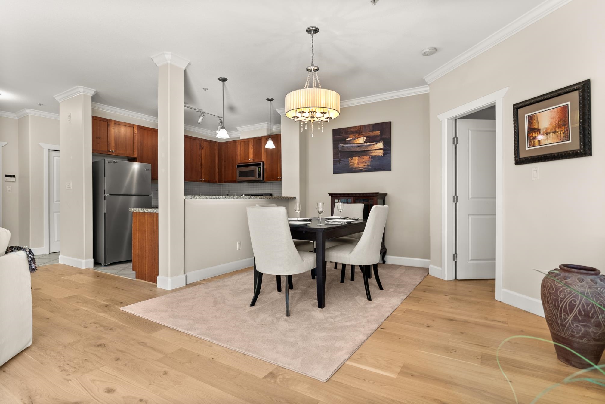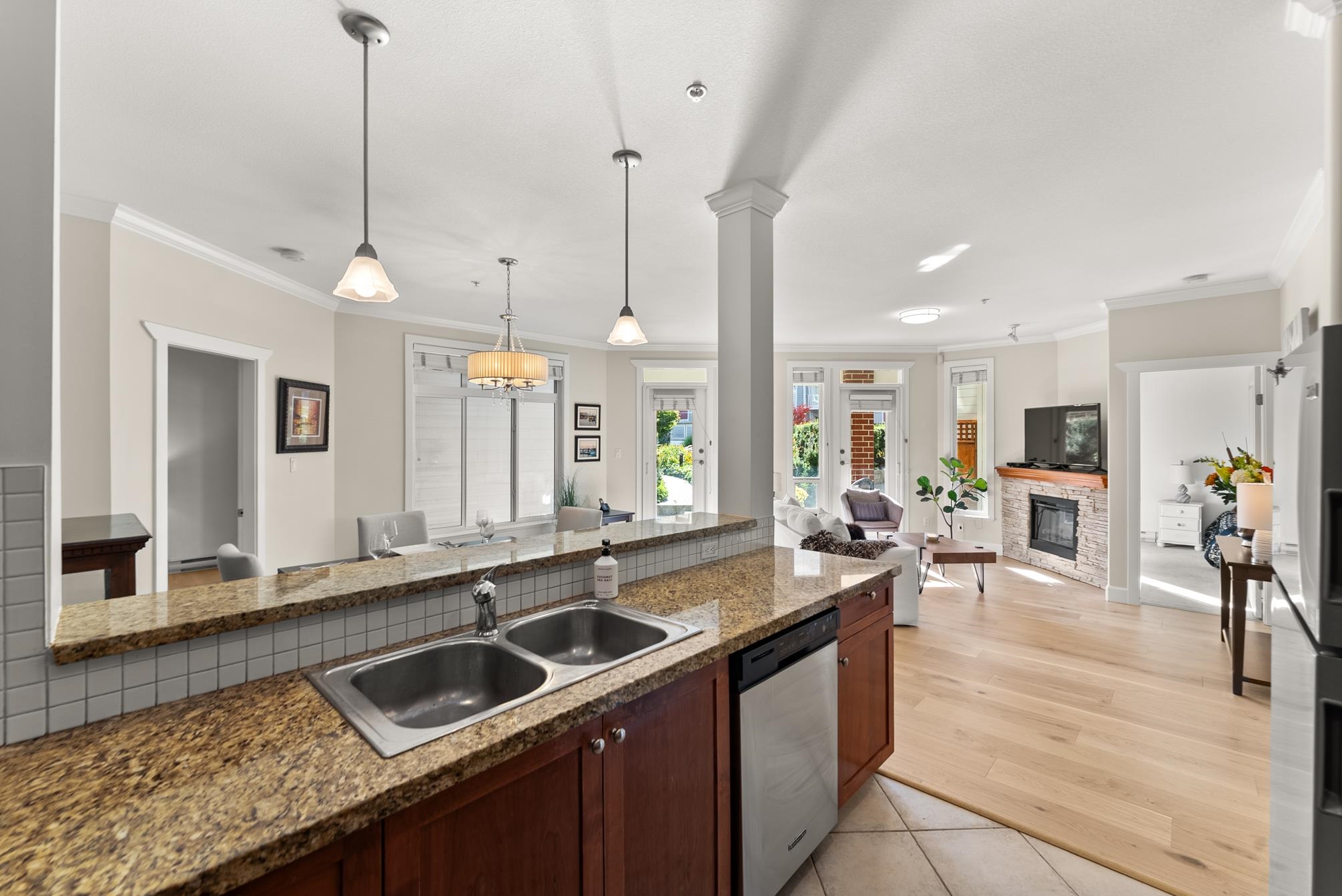 Experience the best of Steveston Village living in this beautiful walk in-walk out 2 bed PLUS den/storage, 2 full bath home! Bright, spacious, and southeast-facing, this home features brand-new flooring and large windows that fill the space with natural light. Step outside to your own huge private patio (328SF) overlooking the quiet courtyard, perfect for morning coffee or evening gatherings. Enjoy unbeatable convenience just steps from your patio on your own trail in the courtyard to the shops, restaurant...