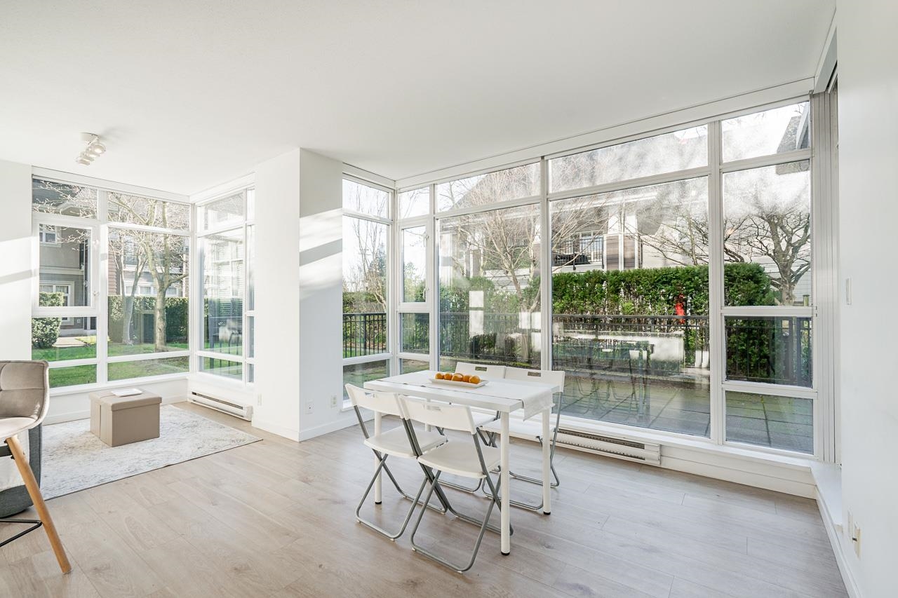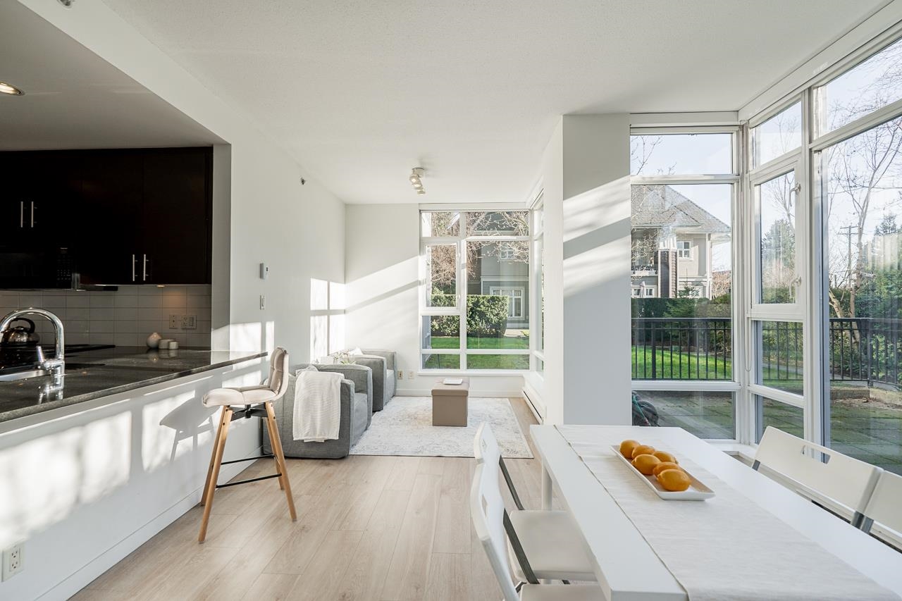 PERFECT HOME ALERT for a first time buyer or a downsizer. Check out this open plan with generous square footage for a one bedroom condo. You can fit both a proper dining table and a King Sized Bed! There is even a nook for your desk if you work from home. The kitchen offers lots of cupboard space and a granite breakfast bar for additional seating. This home is bathed in light and looks out to a 388 square foot private fenced patio. Enjoy concrete construction without the elevator wait! Cora Towers offers an...