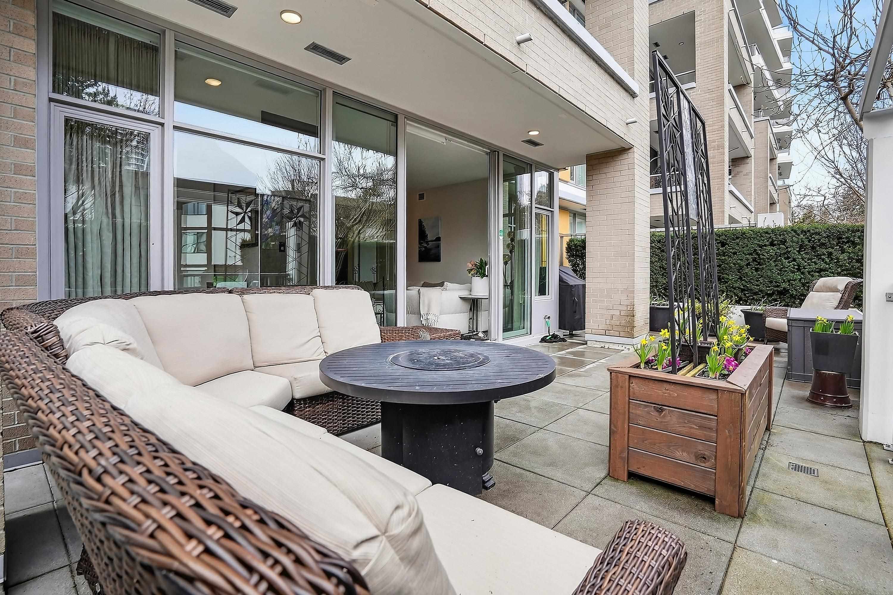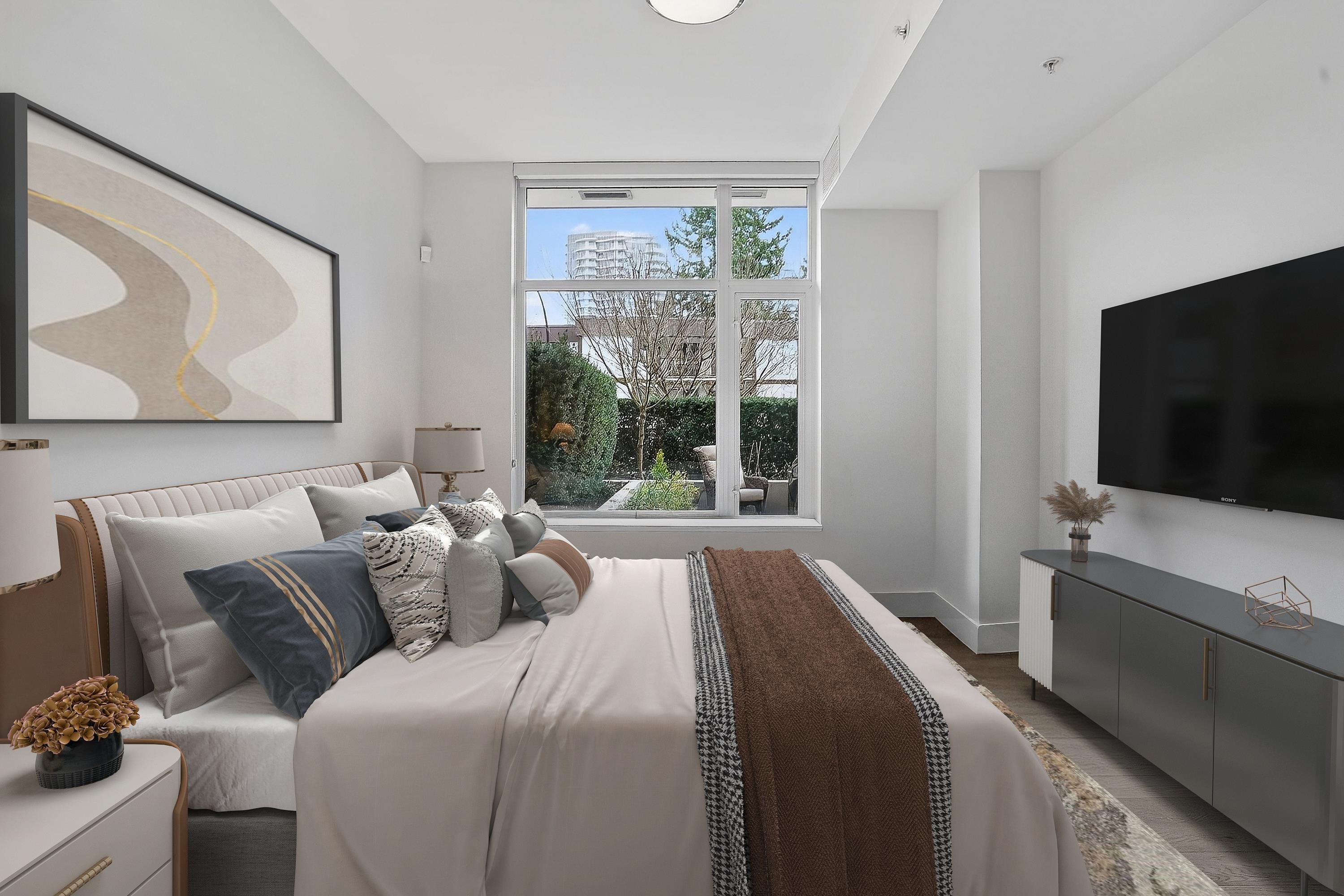 Luxury living at The Beverley, White Rock’s premier concrete high-rise on a quiet central street. This rare 2 bed + den home offers main level access (no elevators or lobby needed). The oversized 464 SF private garden patio is perfect for outdoor living. Bright open layout with 9' ceilings, floor-to-ceiling windows, air conditioning, gas fireplace, and engineered hardwood and tile flooring. Chef’s kitchen with marble countertops and premium JennAir appliances. Exceptional amenities feature a stunning roofto...