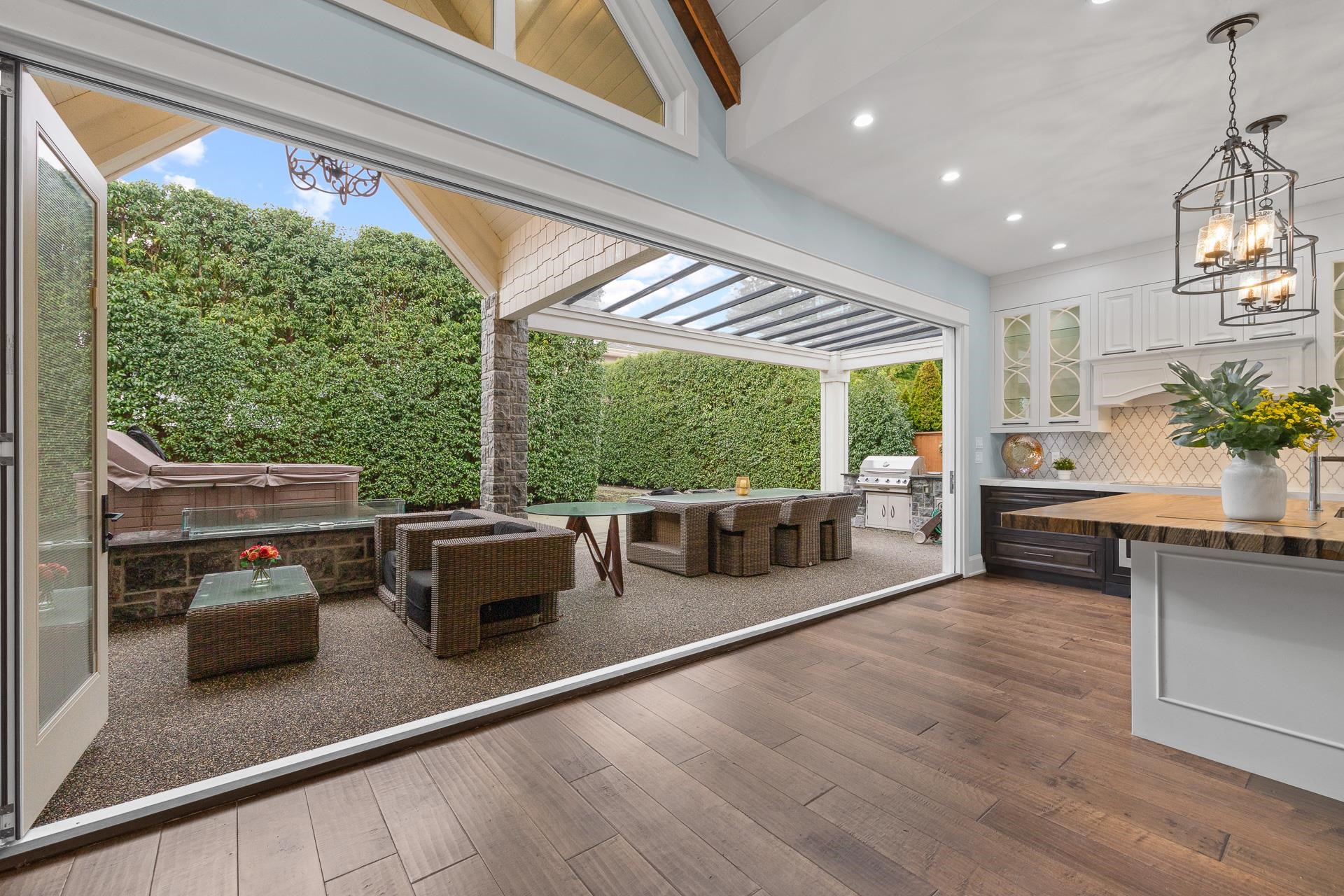 Resort-inspired home offering approx. 4,000 sq ft of living space on a 9,445 sq ft lot, plus a detached ~500 sq ft fully equipped Coach House. Features 4 bedrooms + office, 4.5 baths, gourmet main kitchen with Bosch steam oven & 72” fridge, and an oversized wok kitchen with 6-burner Miele gas range. Enjoy seamless indoor-outdoor living with 7-panel folding patio doors opening to a private backyard with 17’ Swim Spa pool, hot tub, built-in BBQ & gas fire pit. Media room with 100” projection screen. Primary s...