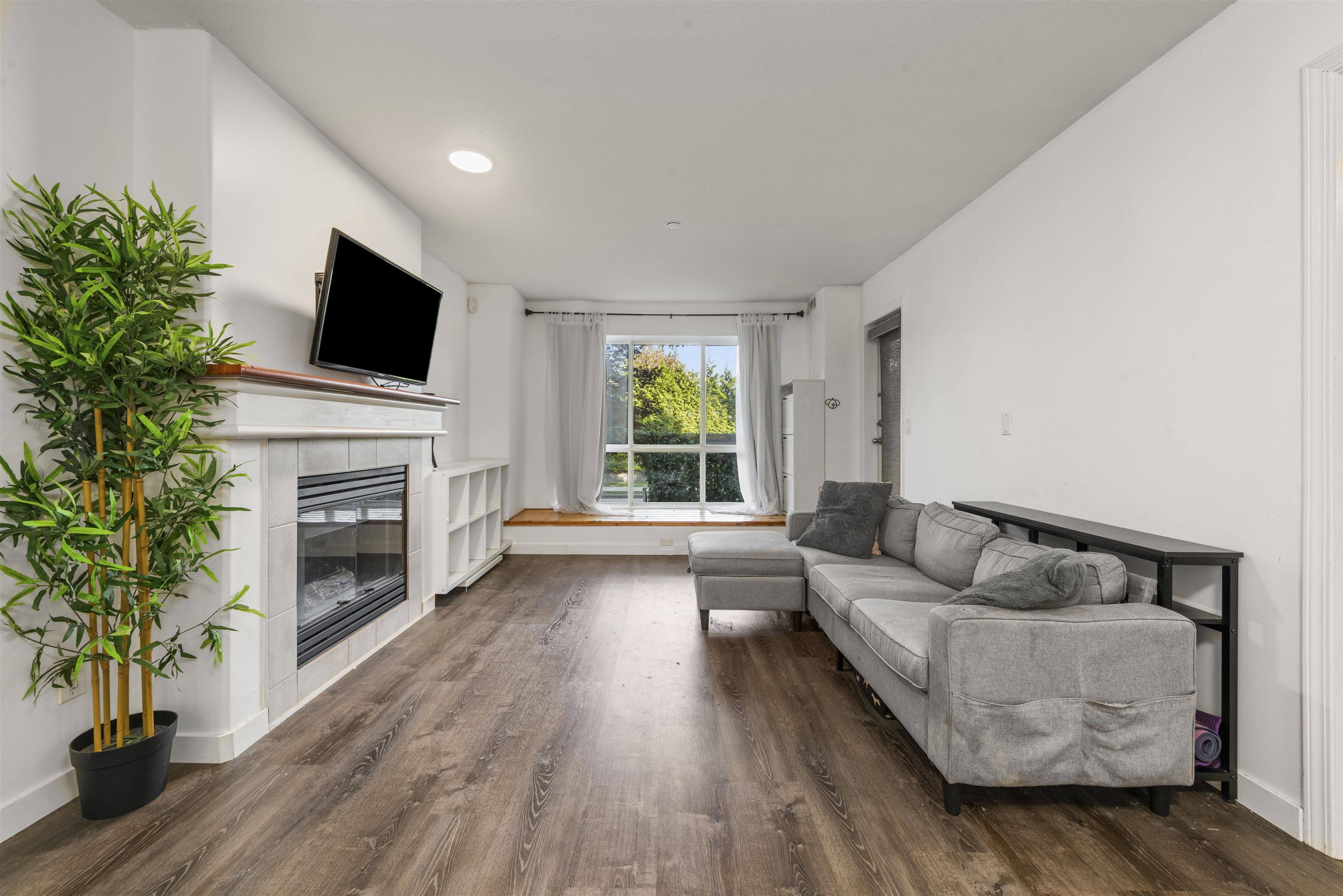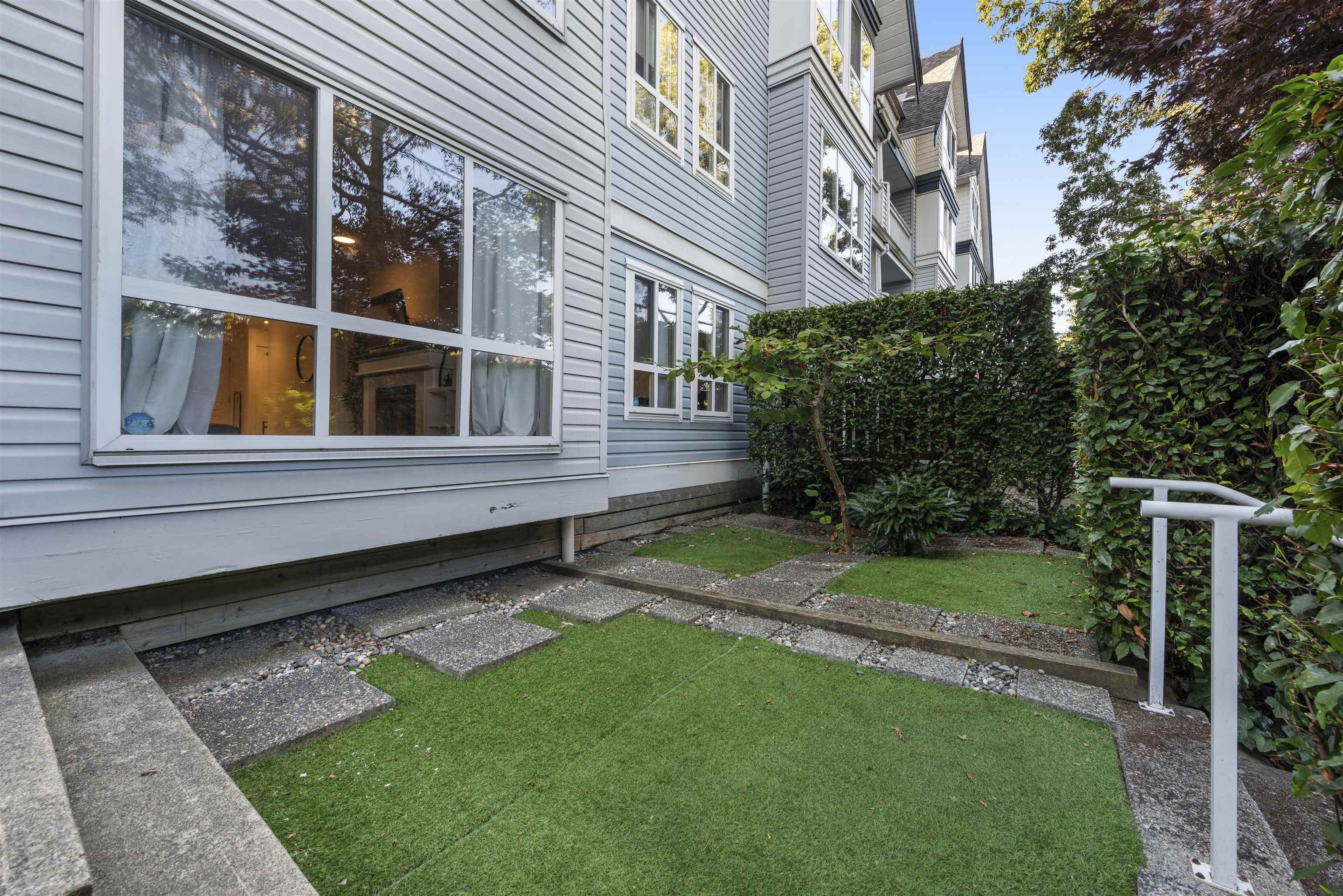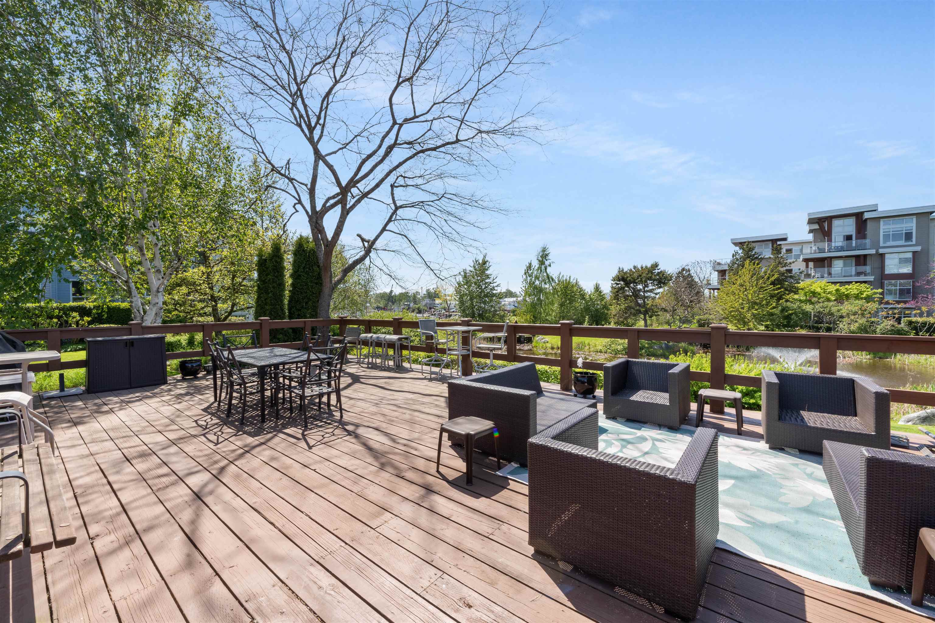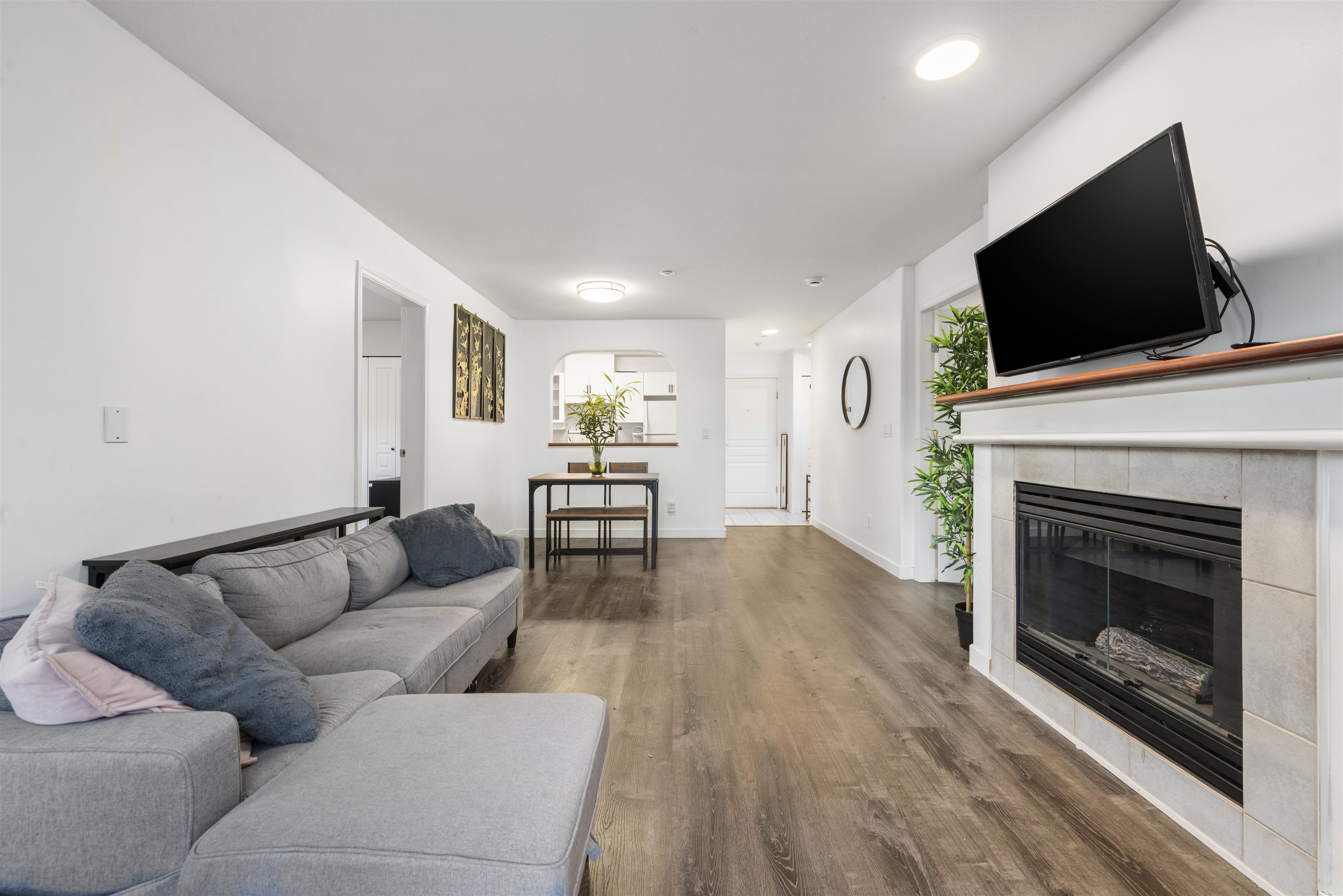 Steveston charm meets modern comfort at Nautica North with unit #104, a 2-bed suite offering over 960SF of well-designed living. A welcoming foyer leads to a spacious kitchen with ample cabinetry, opening into a bright dining & living area framed by large windows and a cozy fireplace. The bedrooms are smartly separated for privacy, while the generous primary easily accommodates a king bed, dressers, and even a workstation. Step outside to a 160SF ground-floor patio—partially covered for year-round BBQs—and ...