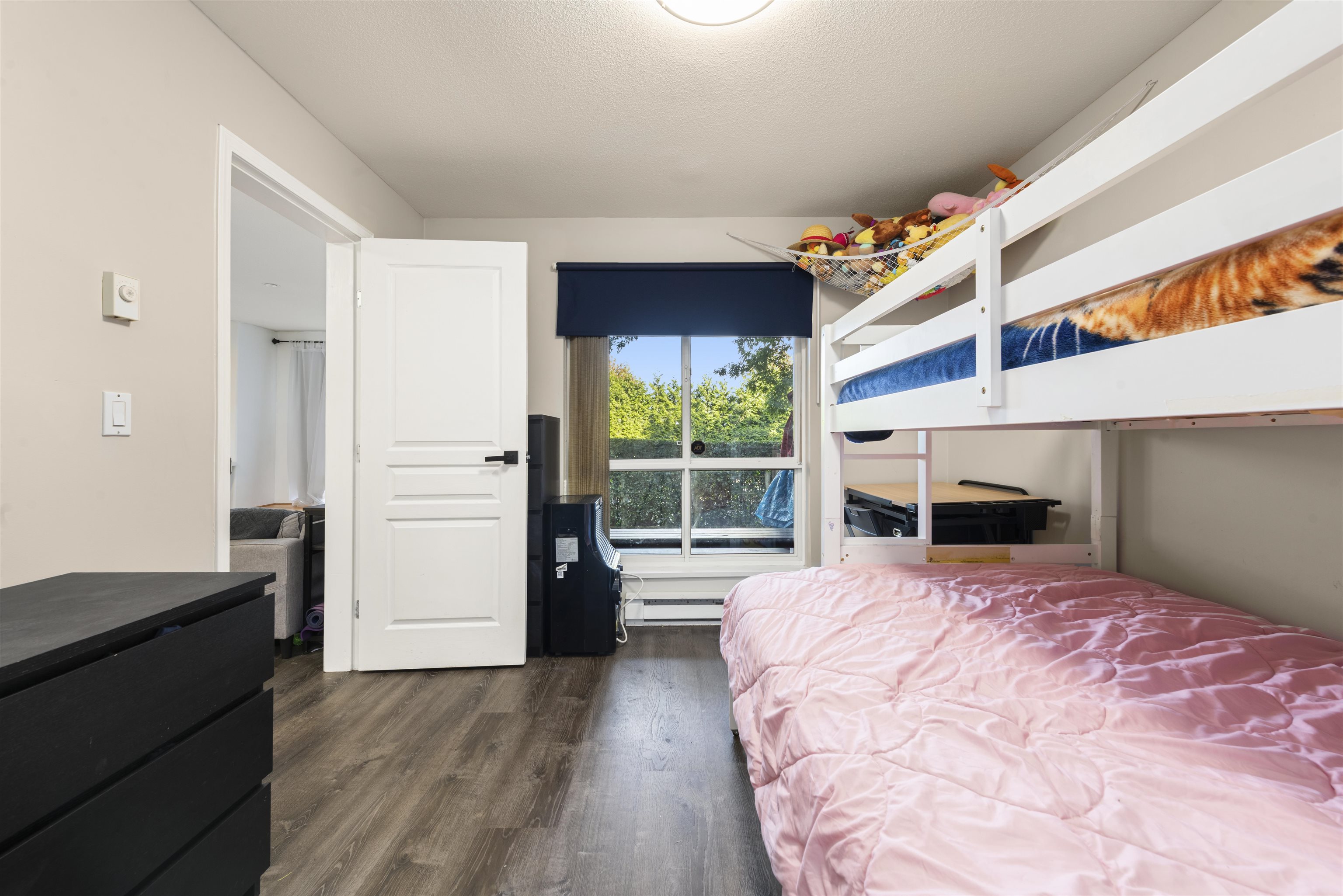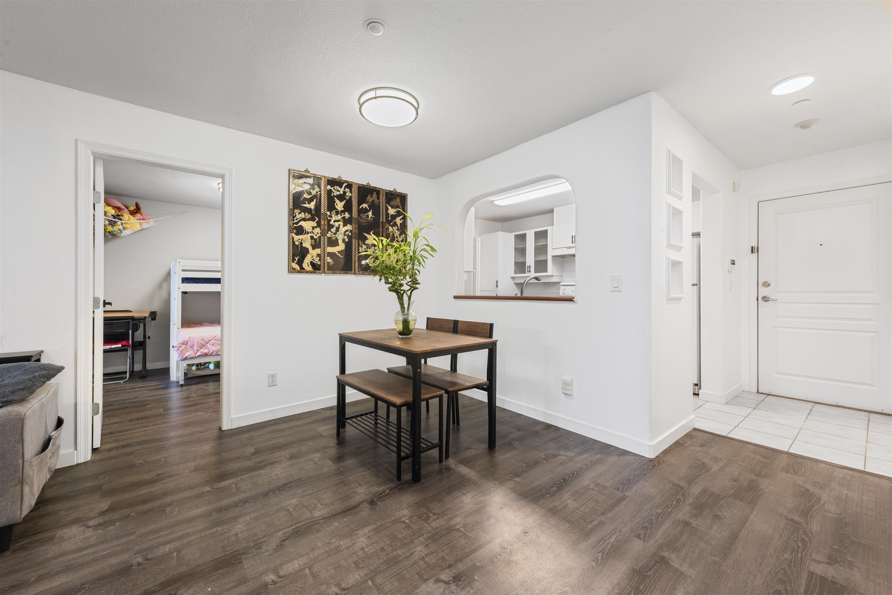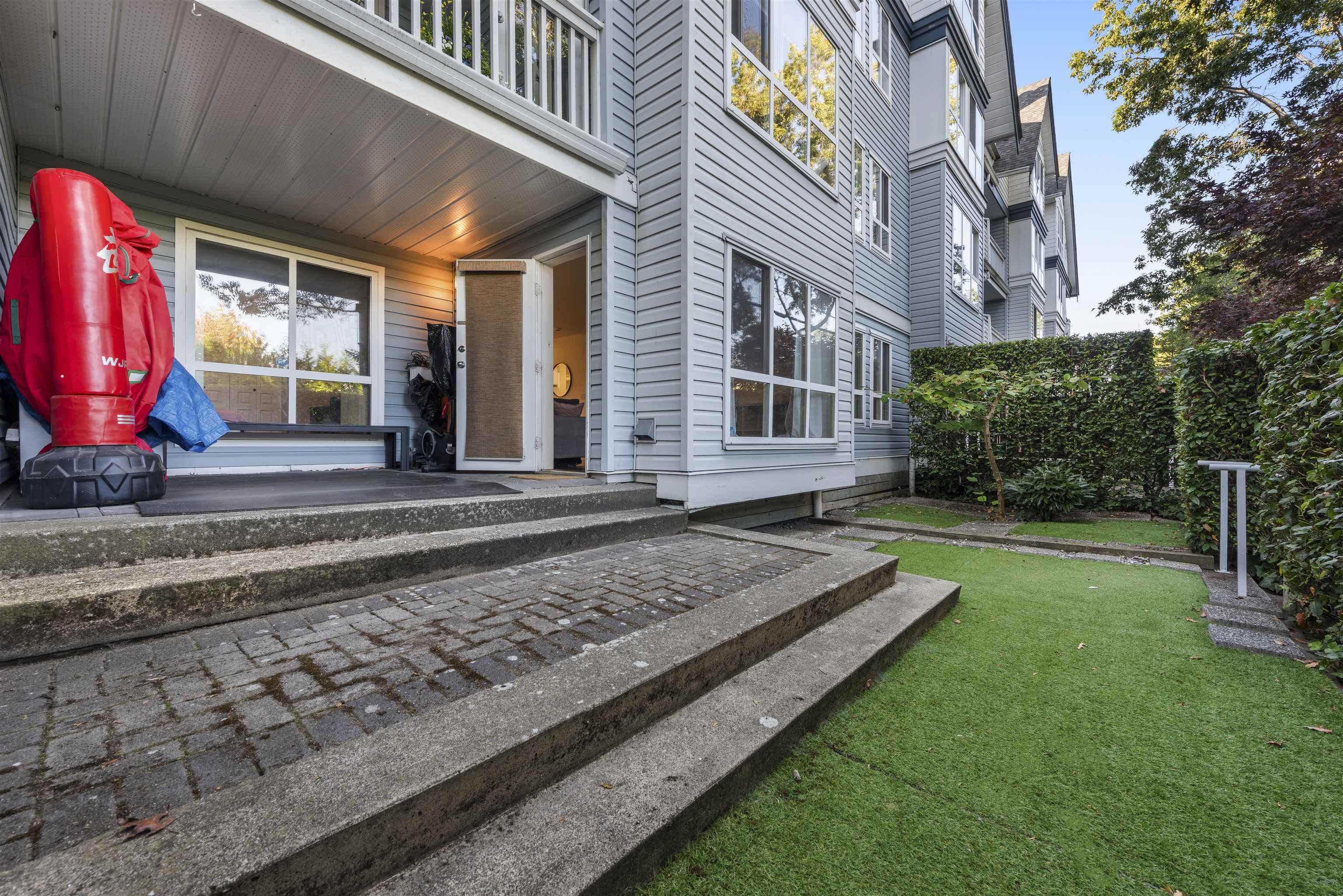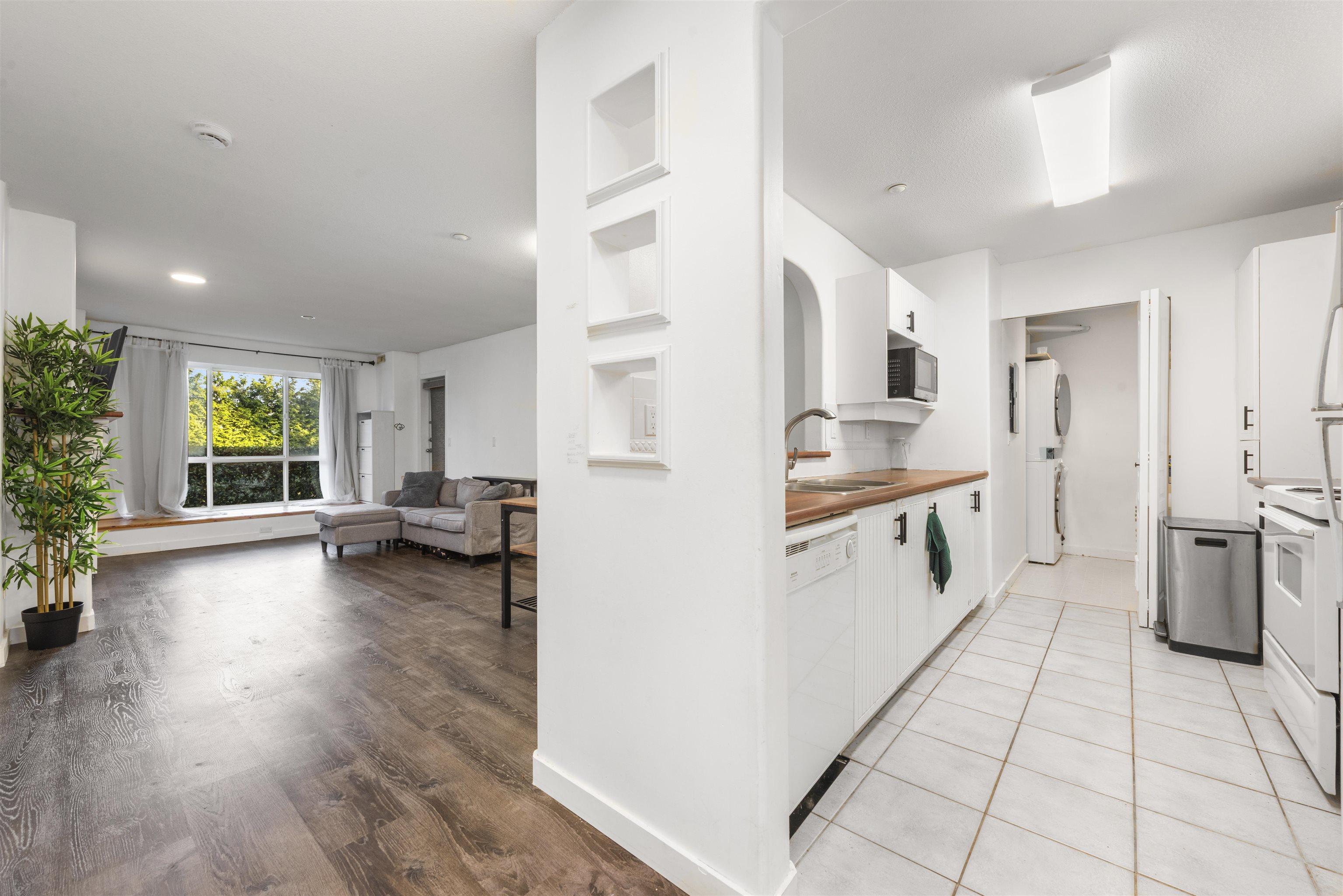 Steveston charm meets modern comfort at Nautica North with unit #104, a 2-bed suite offering over 960SF of well-designed living. A welcoming foyer leads to a spacious kitchen with ample cabinetry, opening into a bright dining & living area framed by large windows and a cozy fireplace. The bedrooms are smartly separated for privacy, while the generous primary easily accommodates a king bed, dressers, and even a workstation. Step outside to a 160SF ground-floor patio—partially covered for year-round BBQs—and ...