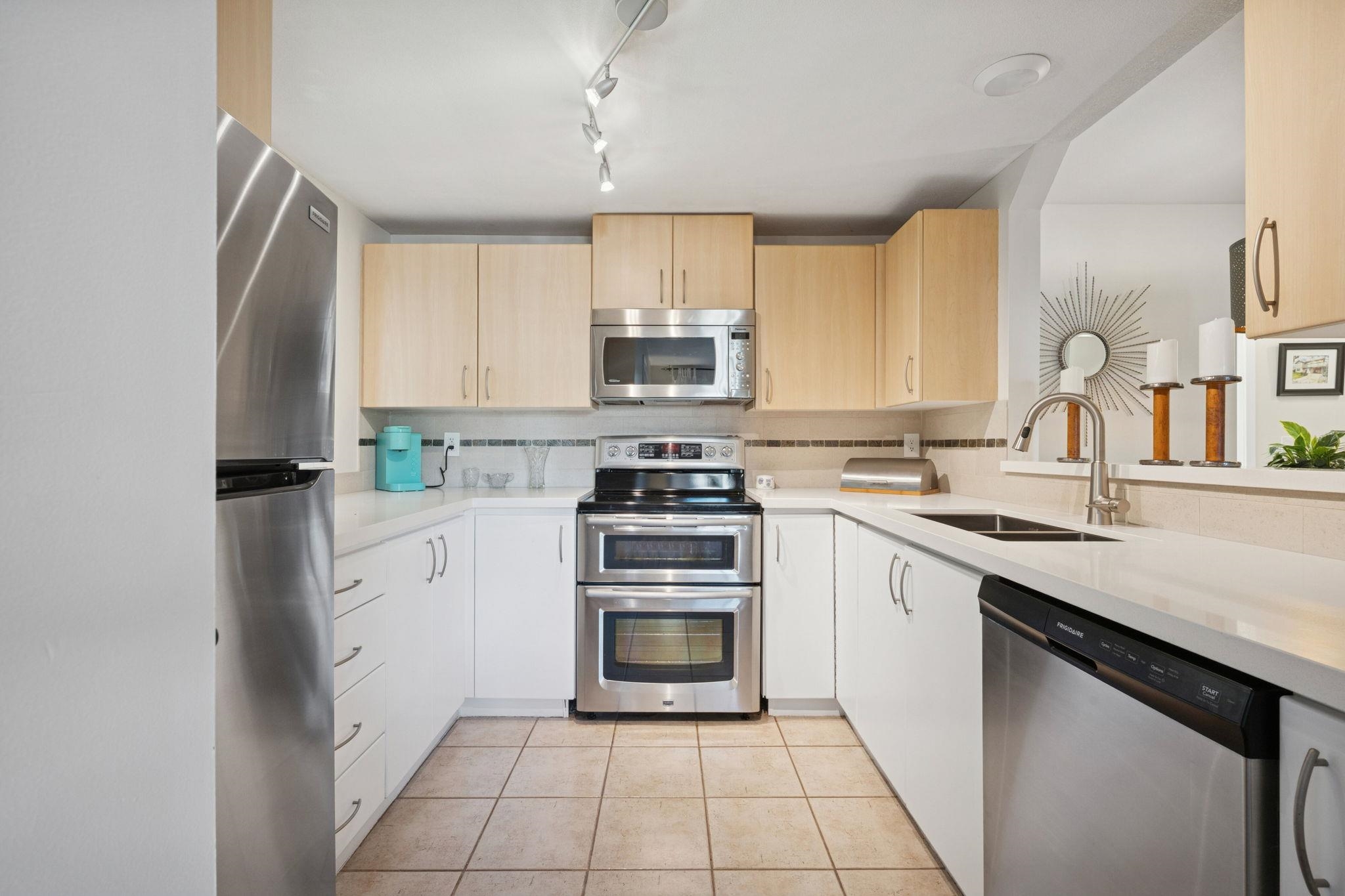 Welcome to Rivers Reach - Award-winning complex built by Adera, featuring timeless Pacific Northwest lodge-style architecture. This rarely available, tastefully upgraded two bed, two bath corner suite offers an efficient open-concept layout ideal for today's living. The home features upgraded kitchen and bathrooms, a cozy gas fireplace in the living room, a generously sized primary bedroom, and a bright second bedroom or office that is perfect for remote work. Enjoy seamless indoor-outdoor living with a lar...