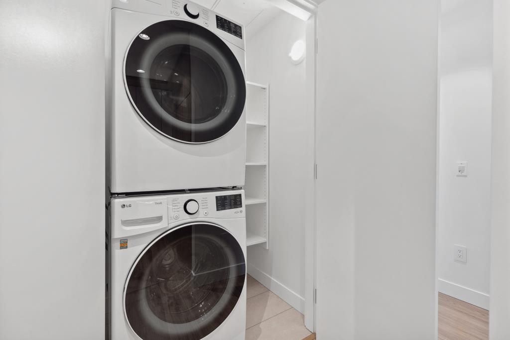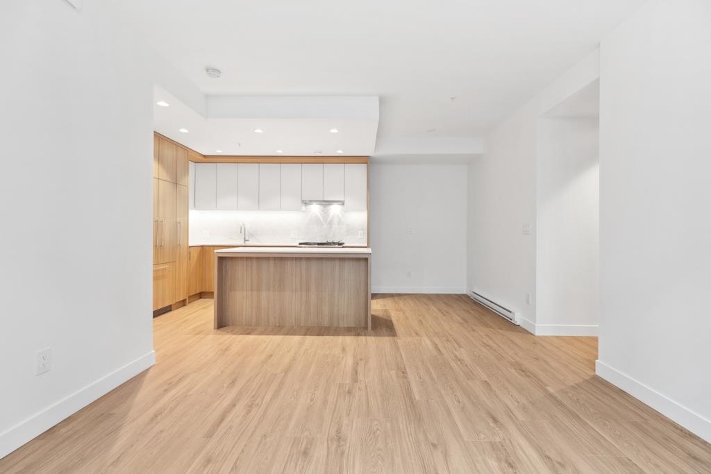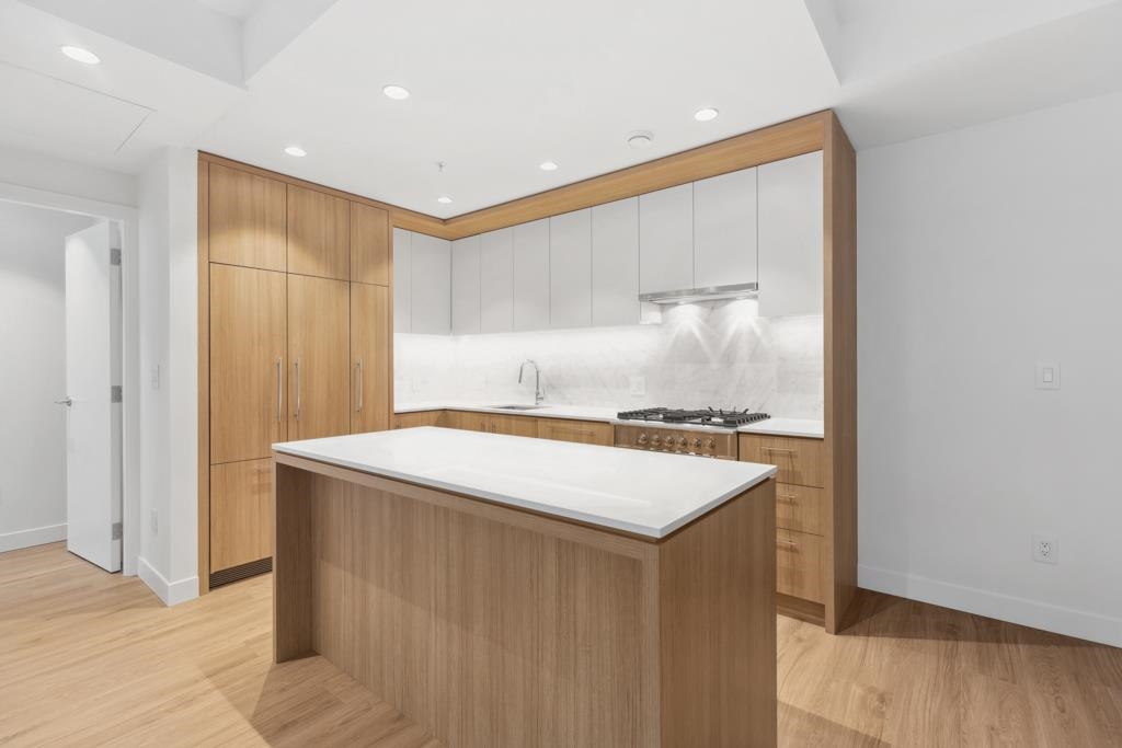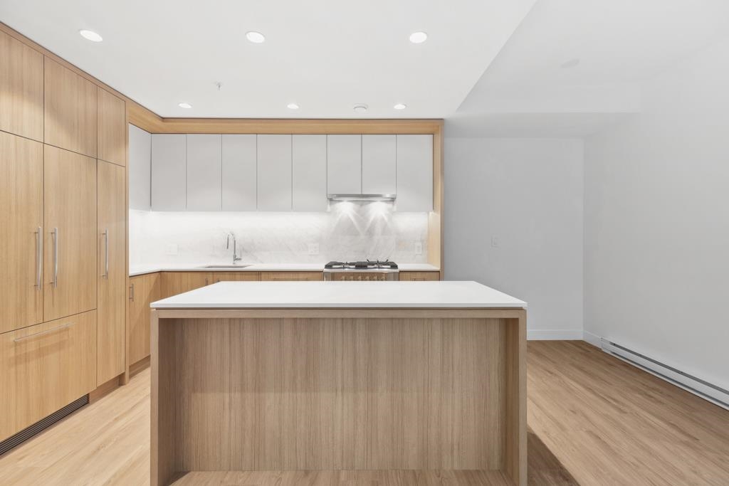 This spacious garden-level home offers 901 sf of living space with 2 bedrooms, a flex room, and 2 bathrooms, finished with light laminate flooring throughout. Through serene courtyards, step down to an impressive 362 sf private patio with concrete pavers and planters-perfect for multiple outdoor seating areas, complete with gas and water bibs for barbecues and easy cleaning. The bright living and dining area features large windows and sliding doors overlooking the patio. The gourmet kitchen boasts two-toned...