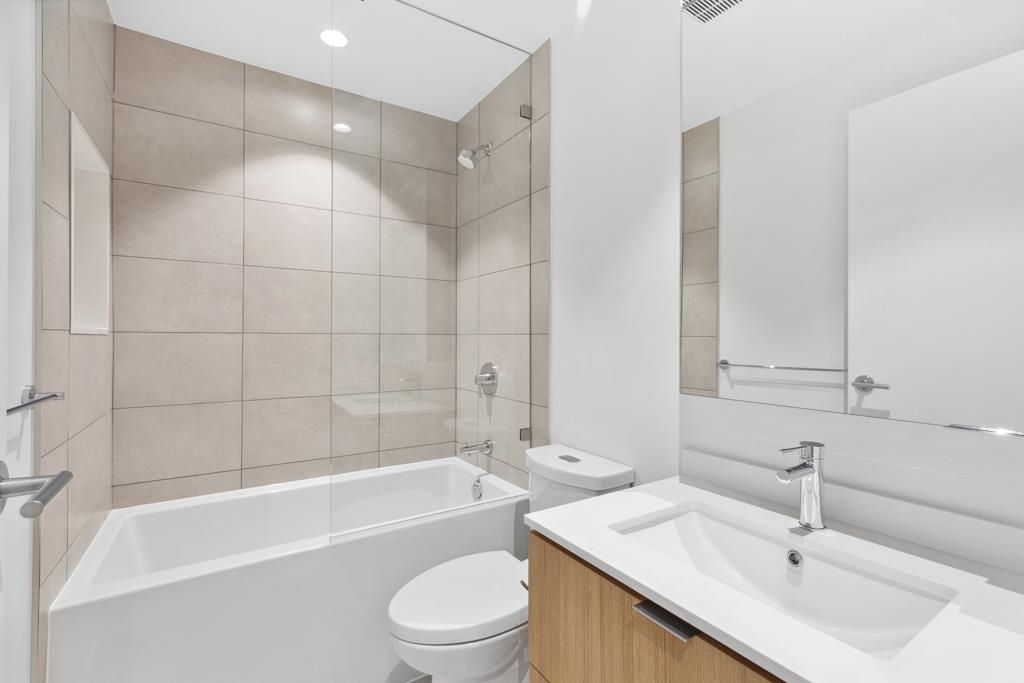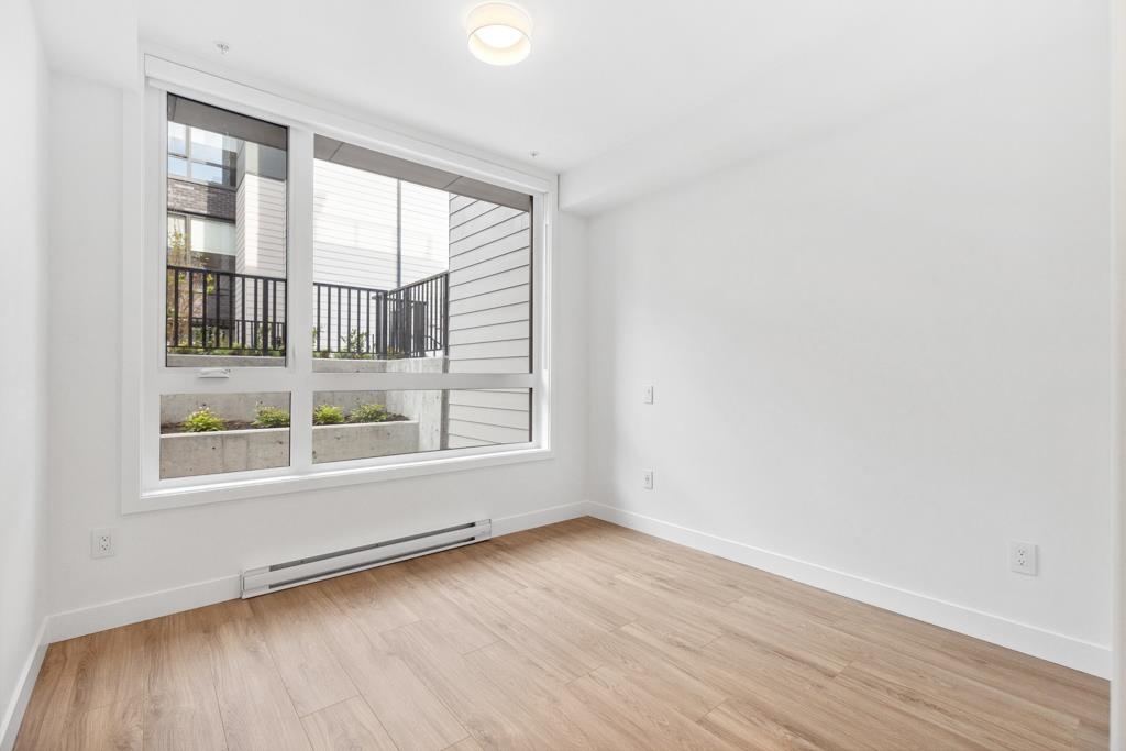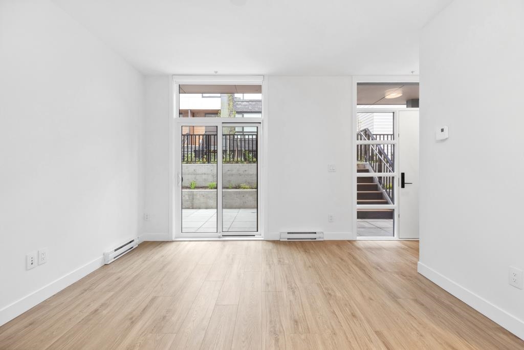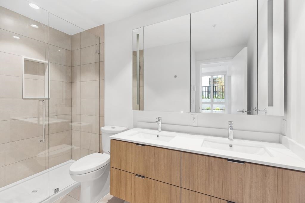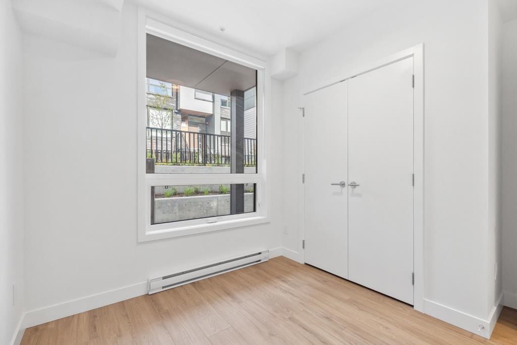 This spacious garden-level home offers 901 sf of living space with 2 bedrooms, a flex room, and 2 bathrooms, finished with light laminate flooring throughout. Through serene courtyards, step down to an impressive 362 sf private patio with concrete pavers and planters-perfect for multiple outdoor seating areas, complete with gas and water bibs for barbecues and easy cleaning. The bright living and dining area features large windows and sliding doors overlooking the patio. The gourmet kitchen boasts two-toned...
