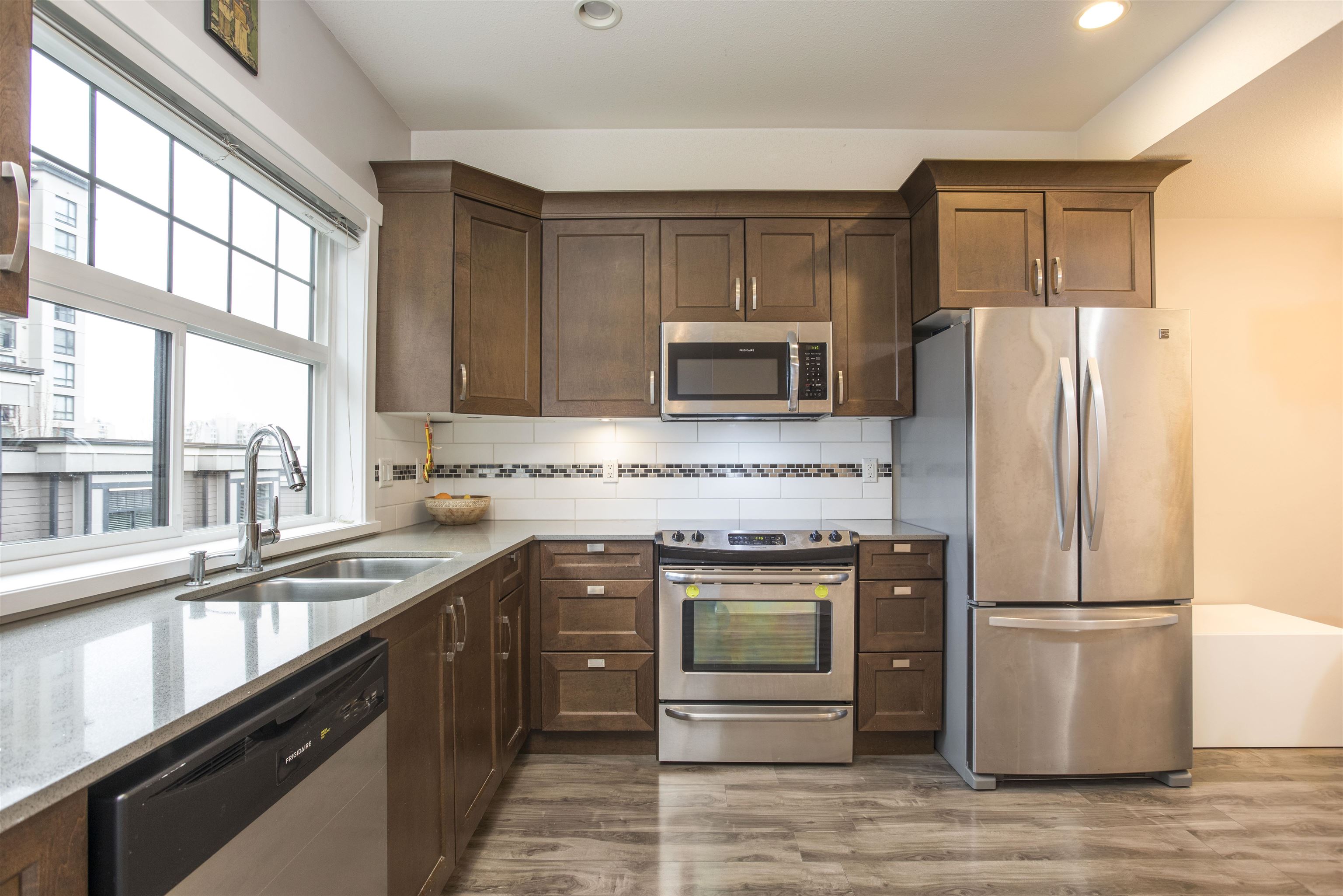 Welcome to Brickstone Walk in vibrant downtown New Westminster. This urban townhouse offers a functional two-level layout with an open main floor featuring a spacious living room, powder room, and private balcony. Upstairs, you’ll find two well-separated bedrooms and two full bathrooms, an ideal setup for couples, small families, or roommates. Includes 1 parking and 1 storage locker. Located just steps to a middle school and Simcoe Park, and a short walk to the riverfront boardwalk, cafés, shops, and transi...