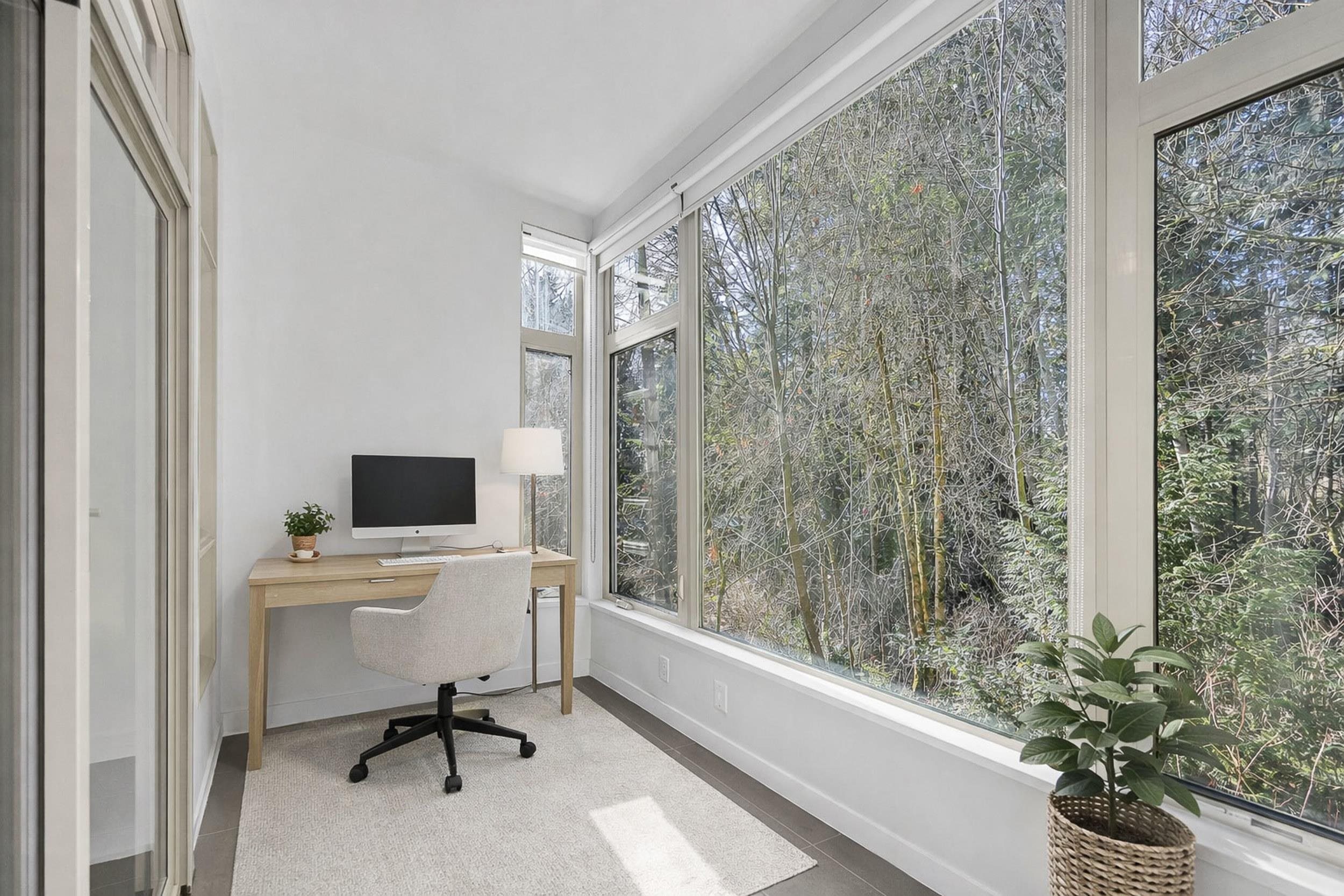 Beautifully updated 2 bed + den, 2 bath ground-level home with no elevator required and ramp access. Fresh paint, new carpet & lighting, all new appliances, gas stove, new sinks & tap, plus an electric fireplace. Bright solarium, private green outlook, and a spacious primary with walk-through double closet. Den/office at entry is perfect for WFH. Well-run complex with guest suite, fitness room & playground. Steps to Parkgate Community Centre, shopping, library & transit. Backs onto Northlands Golf Course, t...