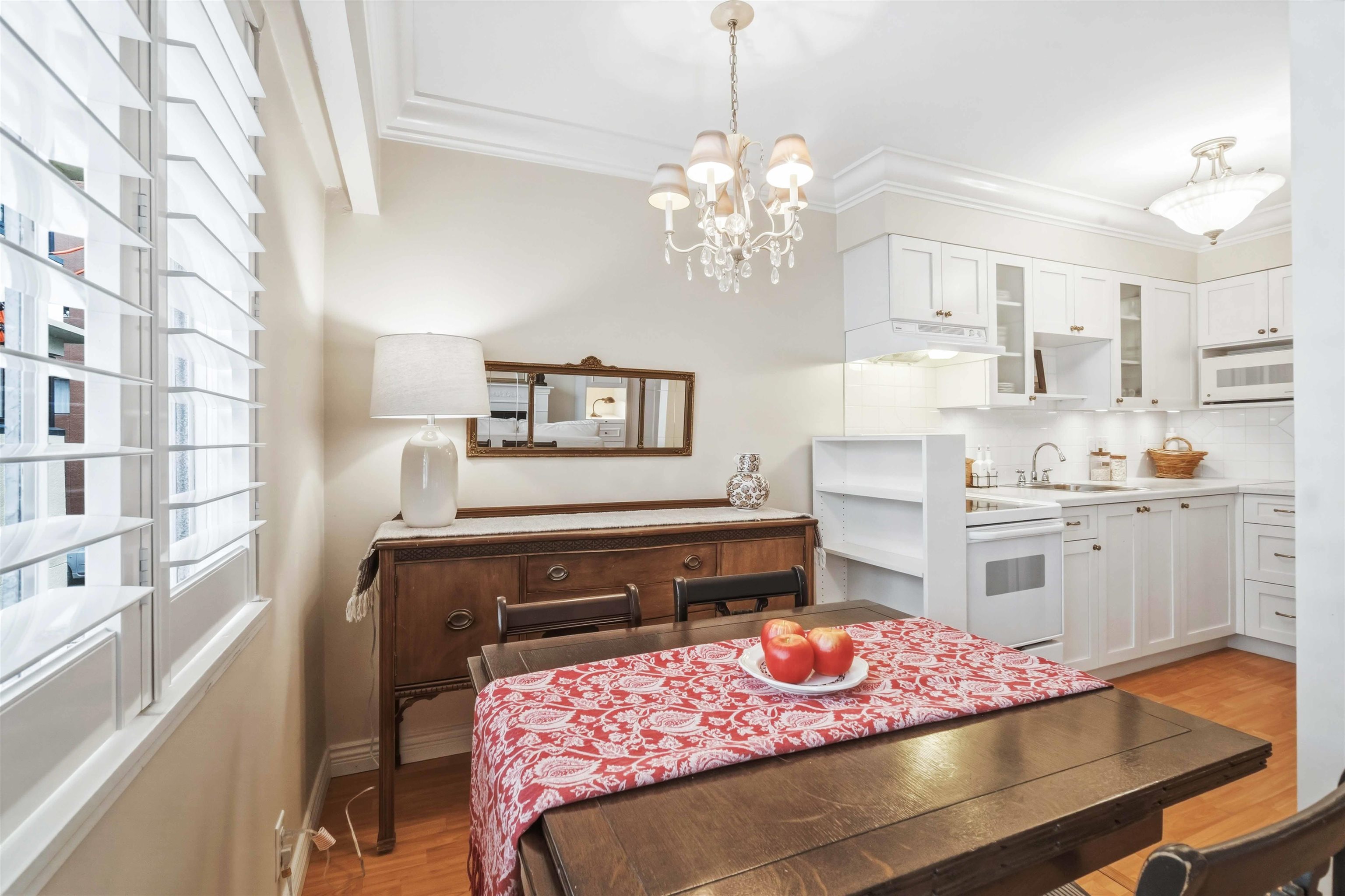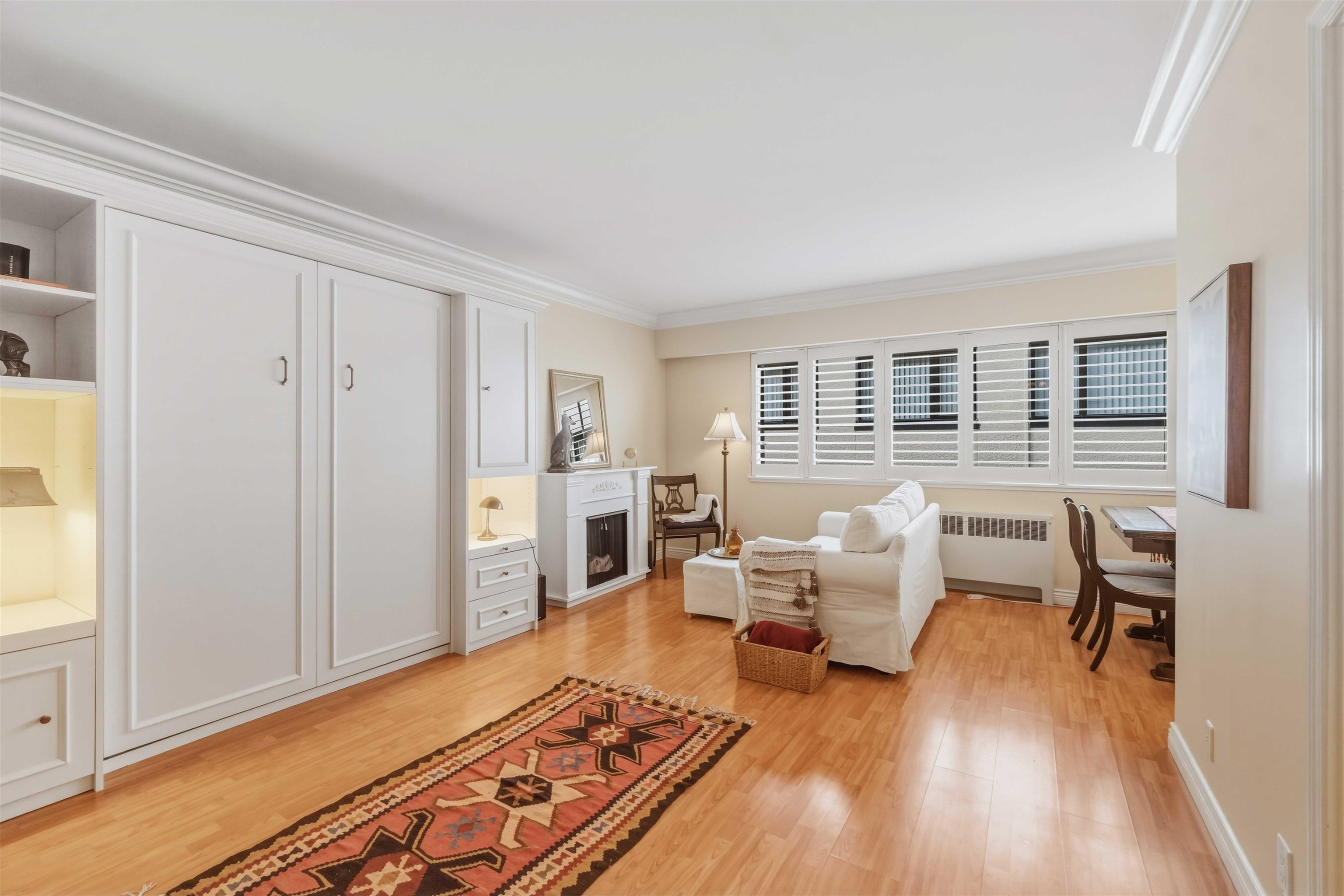 Charming studio co-op in a prime West of Denman location, set on a quiet, tree-lined street just steps to Stanley Park, English Bay, and the shops and restaurants along Denman and Robson. This bright second-floor walk-up is incredibly charming inside, featuring crown mouldings and four petit chandeliers that add timeless character and warmth. Highlights include beautifully redone floors, a renovated kitchen, elegant interior wood shutters, a separate dining area, dressing room, large windows, and a space-sa...