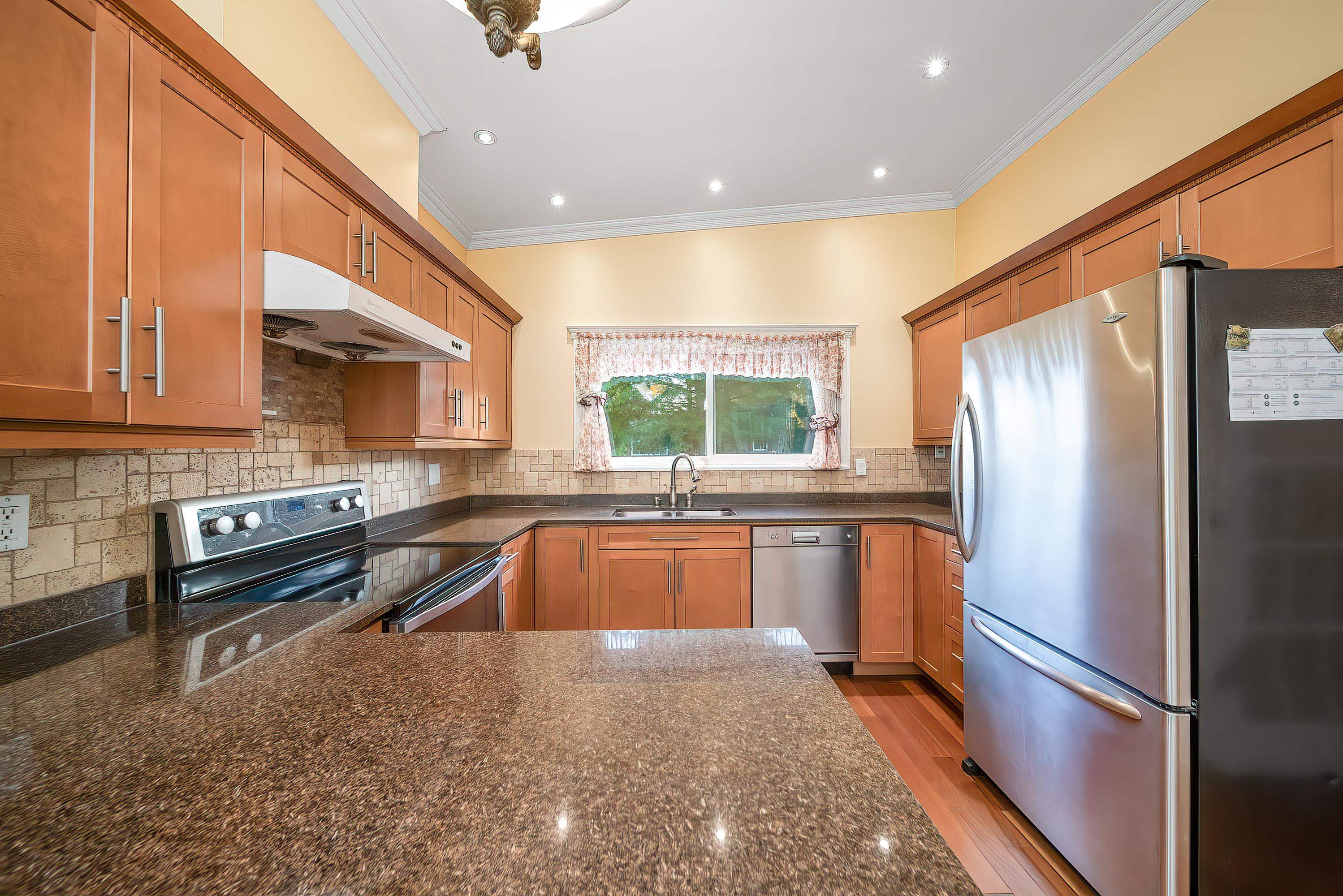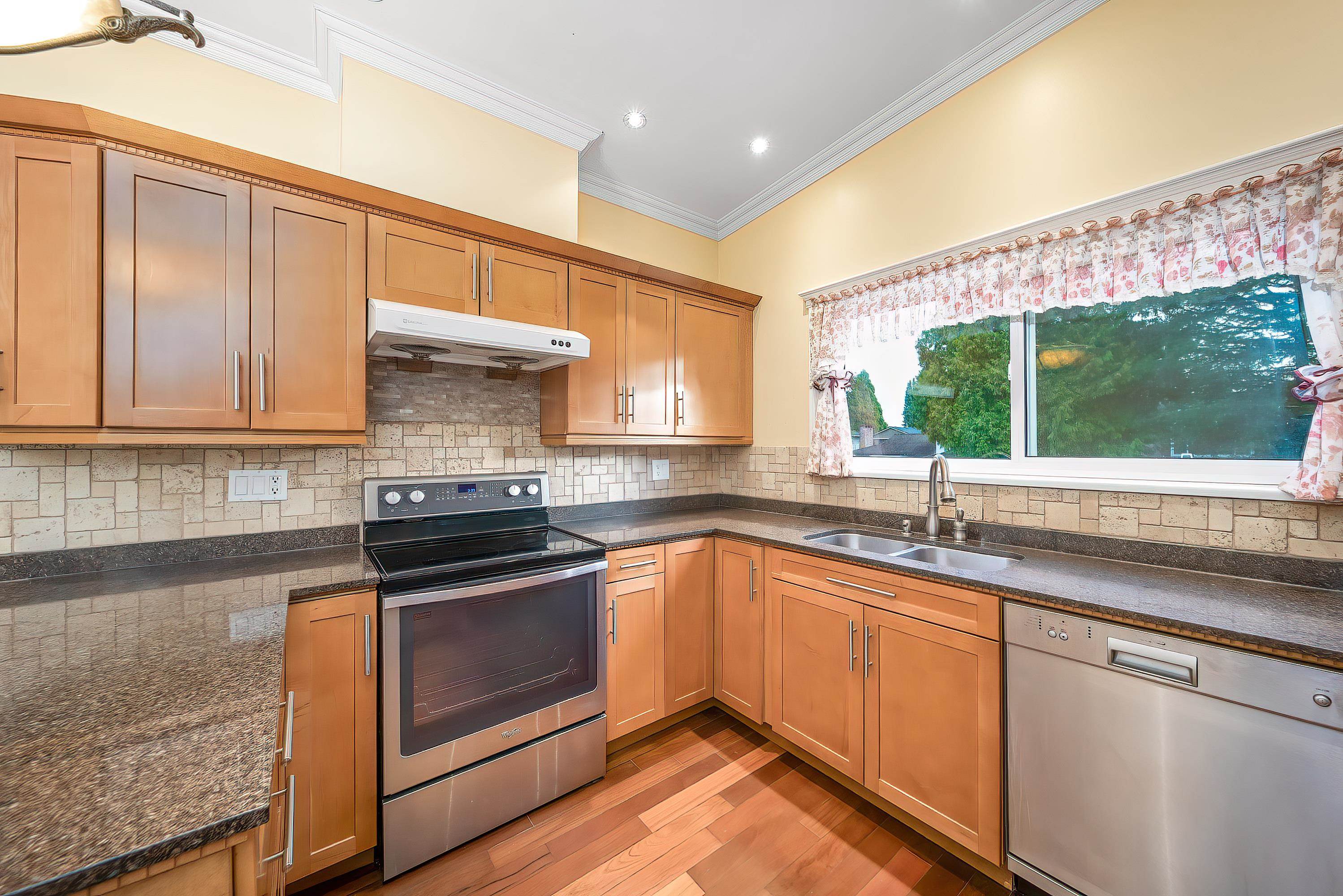 Well-maintained two-level home with fresh air system featuring 6 bedrooms, 3.5 baths, and 2 full kitchens. The main floor offers 3 bedrooms, a full kitchen, and a living area with a separate entry, perfect as a mortgage helper. Upstairs features a high-ceiling living room, formal dining, an enclosed kitchen with eating area, 3 bedrooms, and a wrap-around balcony for summer relaxation. Sitting on an 8,116 sqft lot with a spacious, private backyard ideal for gatherings. Located in a quiet, family-friendly nei...