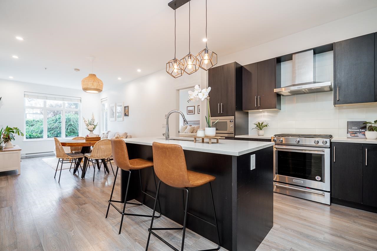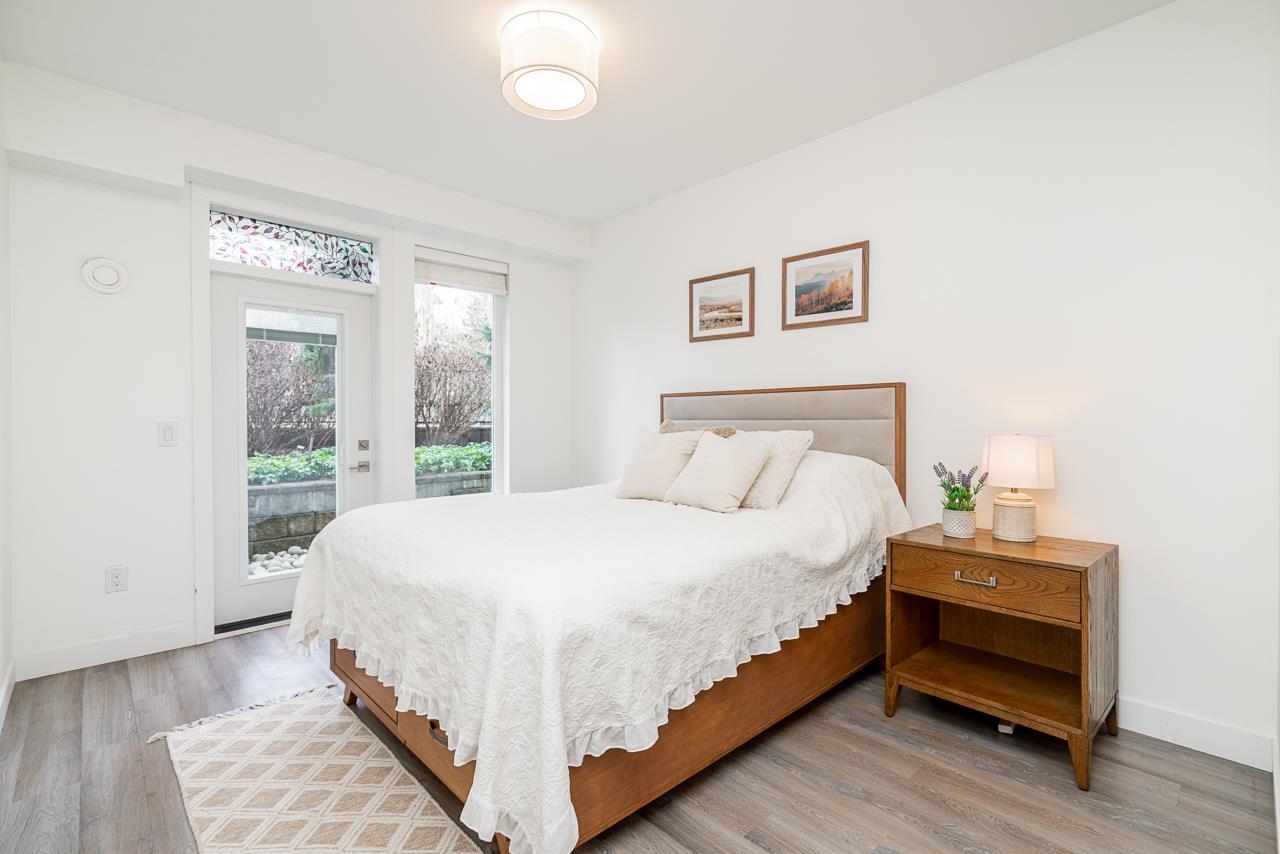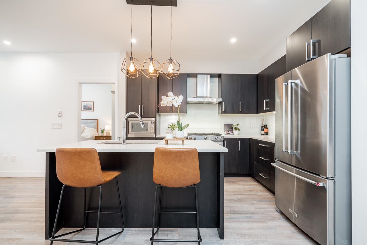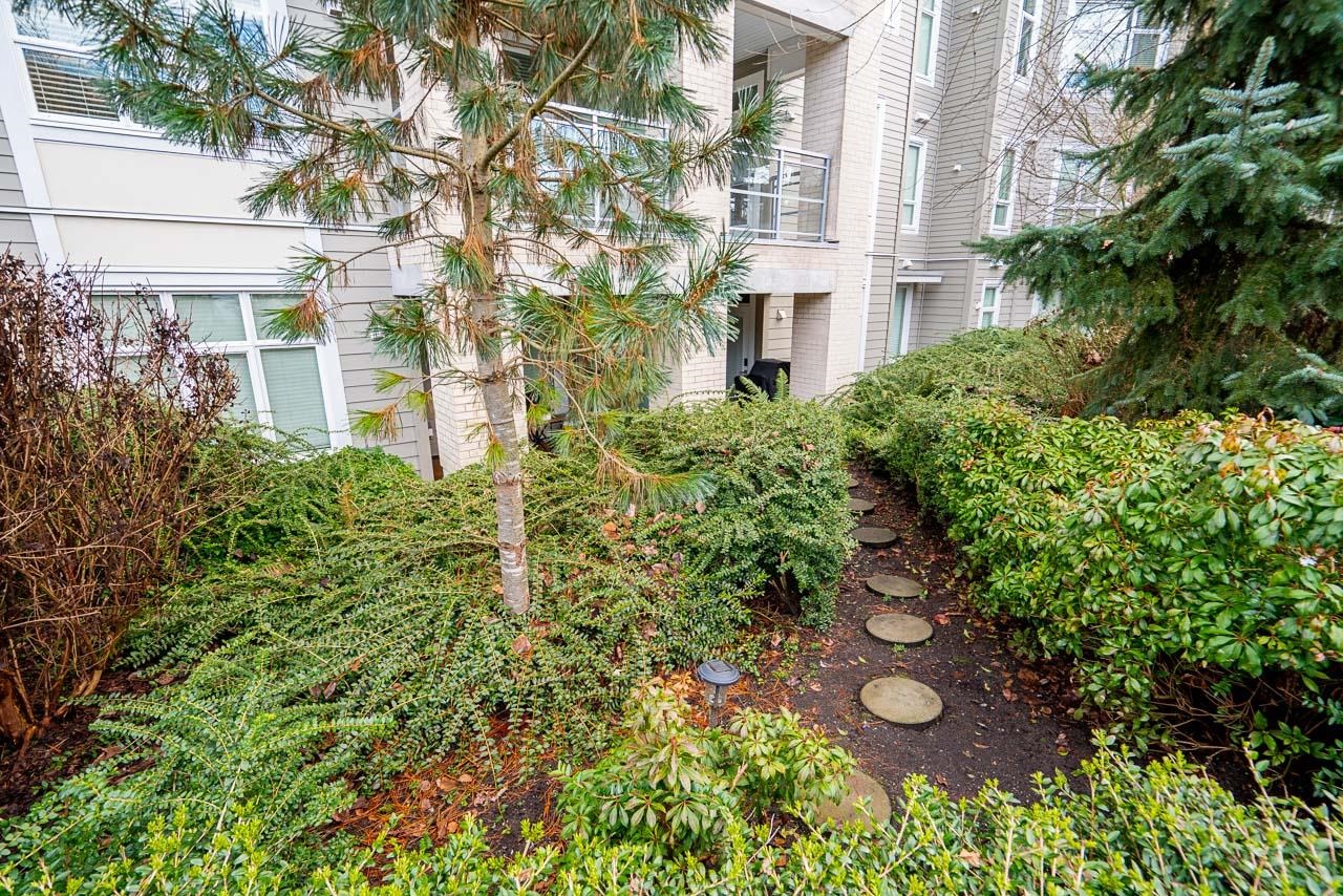 Ground-level 2-bedroom home at the sought-after Head Waters Club, offering a functional, well-designed layout and two private patios overlooking serene gardens. The modern kitchen features a spacious island and additional eating area—perfect for everyday living and entertaining. The primary bedroom boasts direct access to the second patio, a walk-in closet, and an ensuite with NuFloor heating and double sinks. Nestled in a tranquil setting with a peaceful trail to Morgan Creek. Includes 1 parking stall and ...