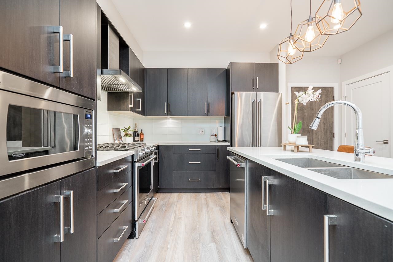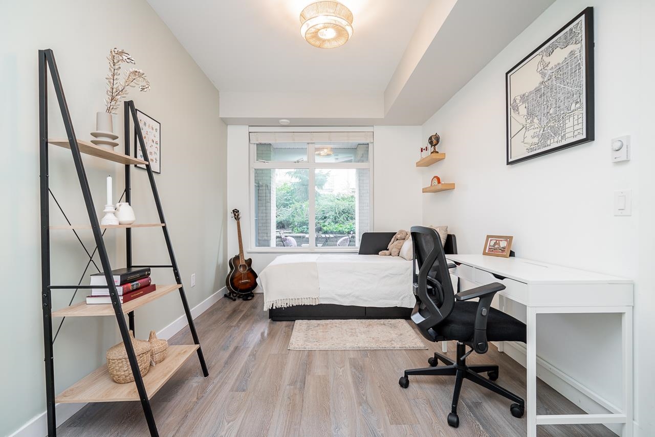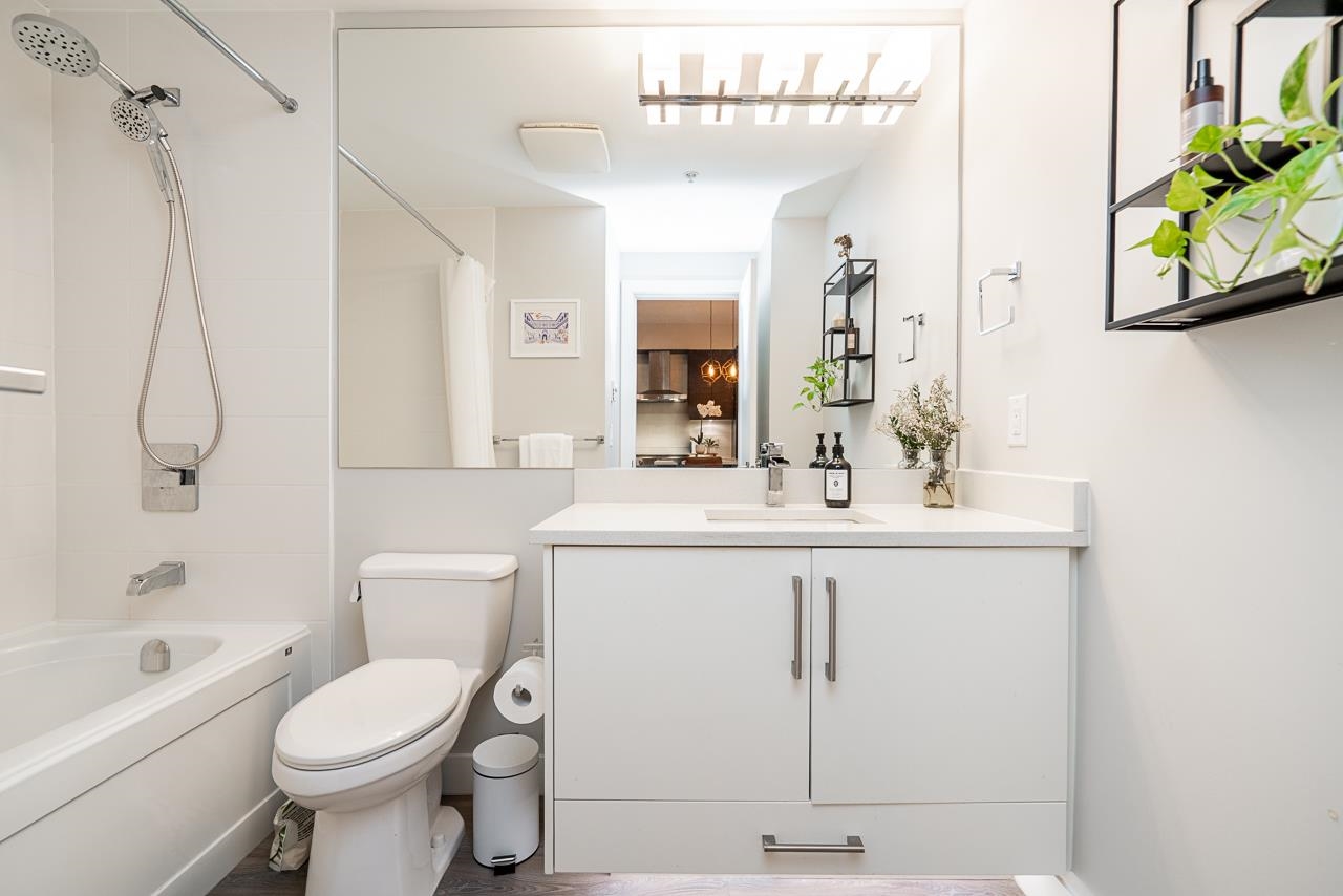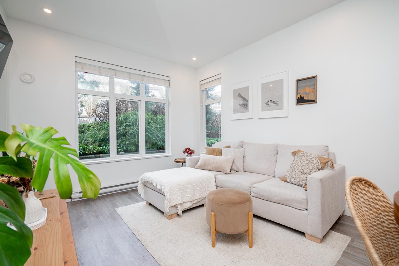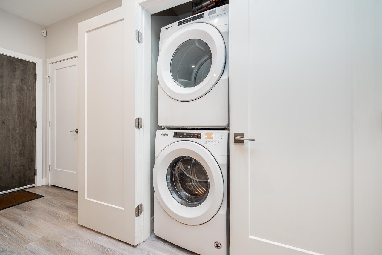 Ground-level 2-bedroom home at the sought-after Head Waters Club, offering a functional, well-designed layout and two private patios overlooking serene gardens. The modern kitchen features a spacious island and additional eating area—perfect for everyday living and entertaining. The primary bedroom boasts direct access to the second patio, a walk-in closet, and an ensuite with NuFloor heating and double sinks. Nestled in a tranquil setting with a peaceful trail to Morgan Creek. Includes 1 parking stall and ...