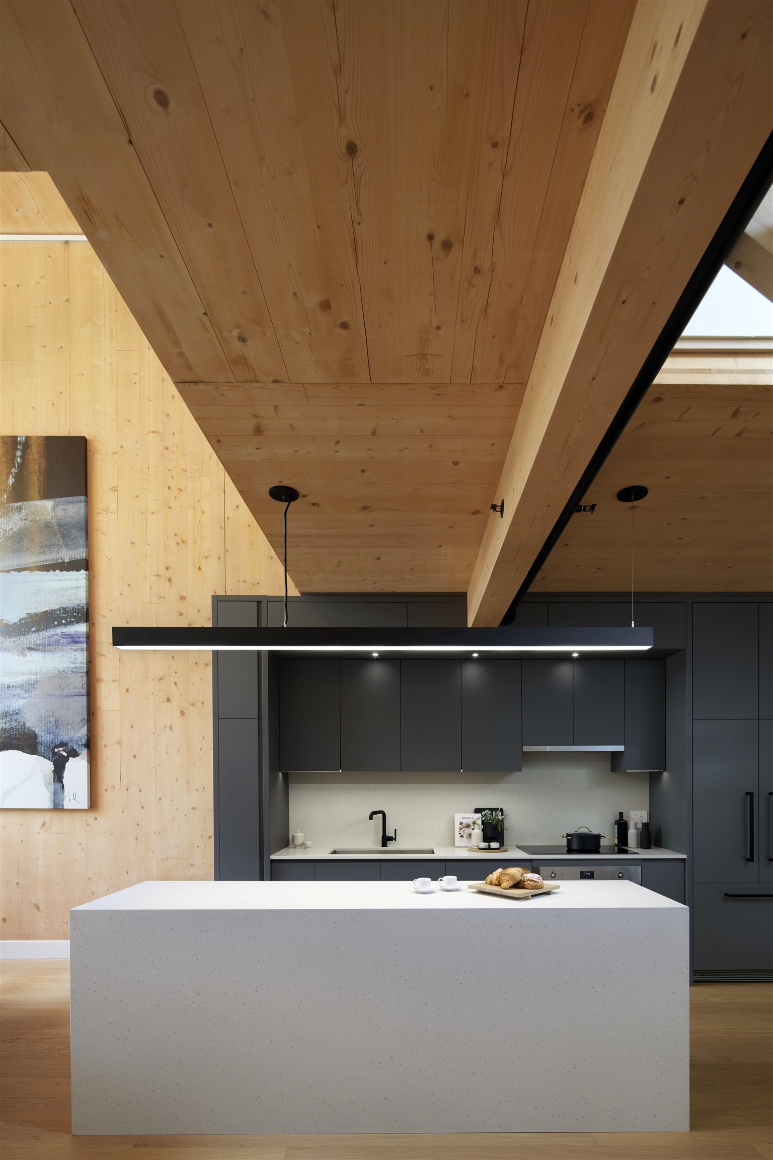 Designed for distinction, this 1,708 SF 2-level loft-style home at Timber House by Aragon showcases 18’ exposed CLT walls & ceilings. Enjoy a huge 650SF private rooftop deck (36’ x 18.1’) w/ built-in BBQ, sink & fridge. This 4BR+Loft, 2 bath home offers modern, high-design interiors w/ wide-plank oak floors, A/C, & a sleek kitchen w/ F&P + Smeg appliances, quartz counters & built-in pantry. Spa-like baths feature heated floors & floating vanities. Amenities include courtyard, gym, BBQ area, dog wash, 2 park...