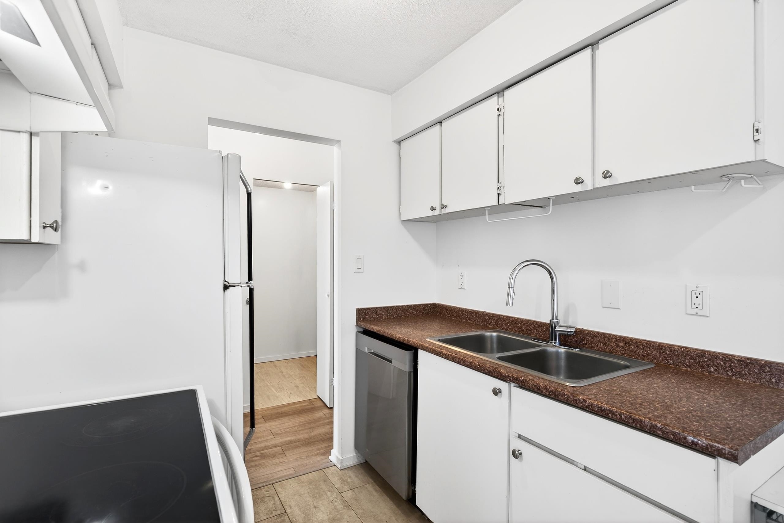Incredible opportunity! This oversized one-bedroom offers a rare mix of space and scenery. Conveniently located steps from Columbia SkyTrain and a short walk to Pier Park, River Market, and the Boardwalk. The functional layout features a massive bedroom and two versatile flex/storage rooms, and breathtaking Fraser River views to enjoy from your private balcony and bedroom! Recent updates include a gorgeous renovated bathroom, newer dishwasher, vinyl floors, and crisp white paint... the perfect blank canvas!...