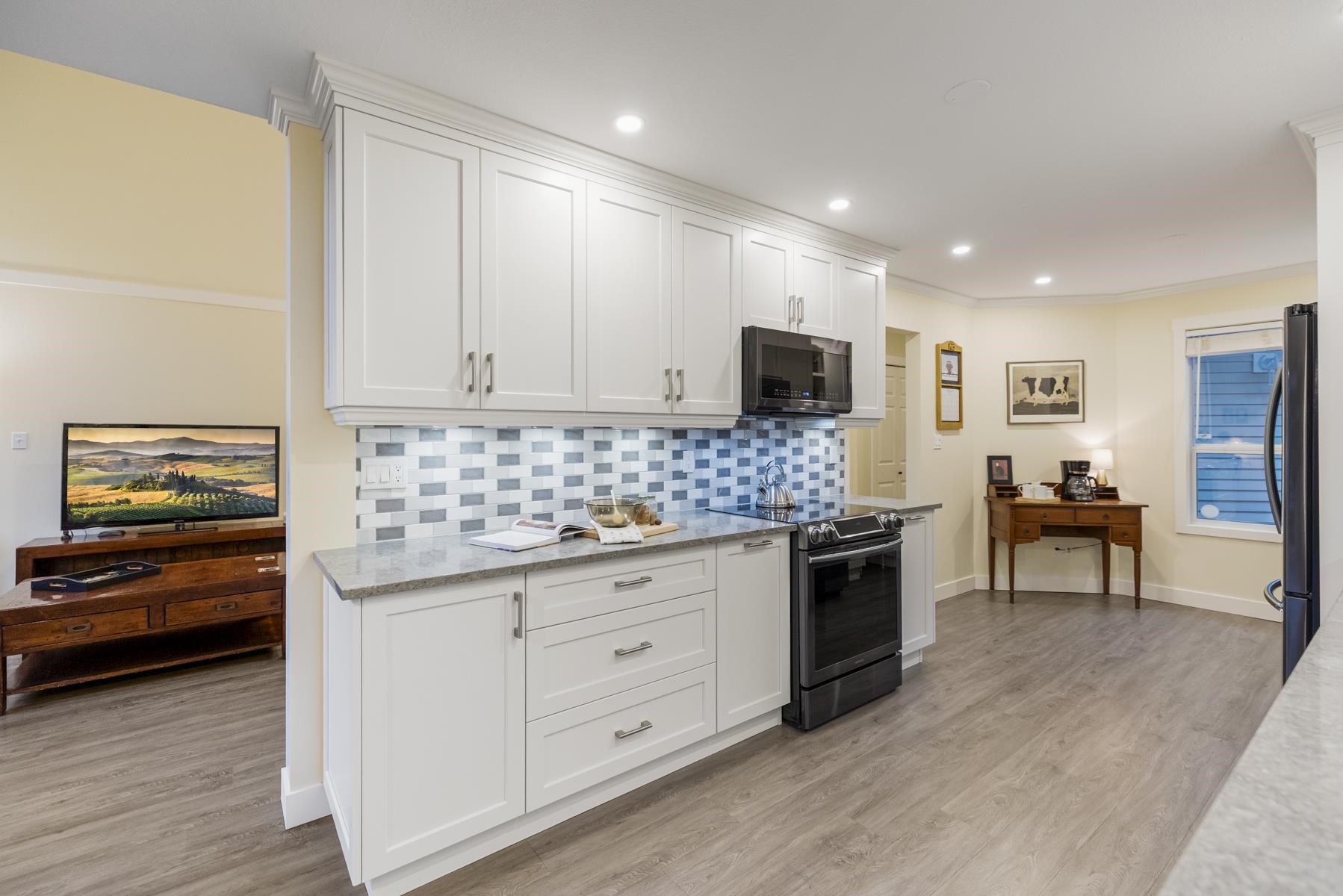 Creekside Estates! Guilford’s most sought-after complex. This meticulously maintained two-storey unit backs onto a protected serpentine creek. The functional layout makes use of every square inch of living space, while the vaulted ceiling in the living room and gas fireplace will make you feel right at home. Updates start with the professionally renovated kitchen boasts white shaker cabinets with specialty drawers, quartz countertops, black S/S appliances, updated bathrooms, and so much more. Located only s...