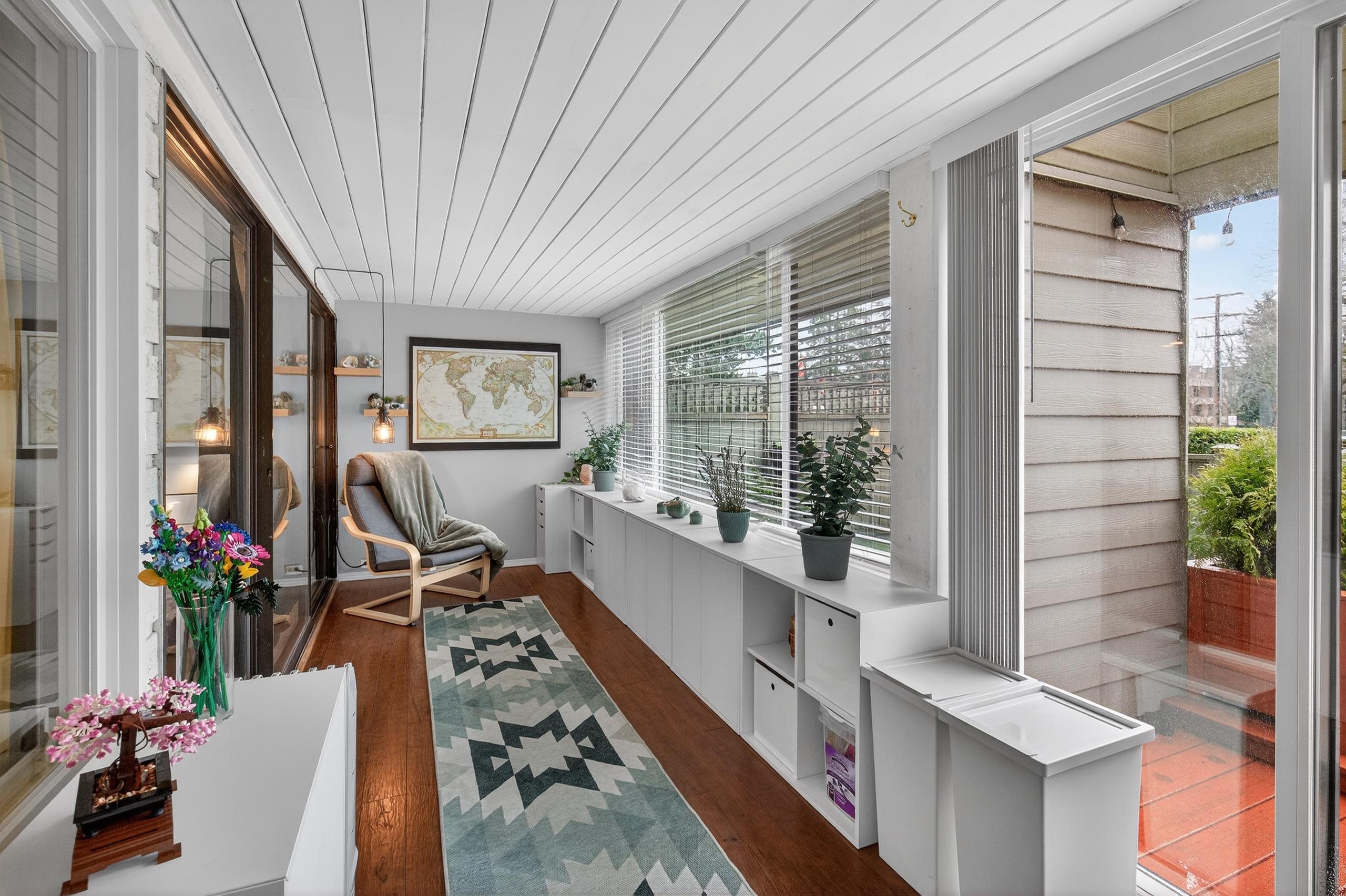 Welcome to this charming 2 bed, 2 bath ground-floor home in the heart of South Surrey! This bright and spacious unit features a fully enclosed solarium—perfect for year-round enjoyment—and a rare walk-out fenced patio and yard space that faces a beautiful community park with a large field and playground. The yard is ideal for relaxing or entertaining. The well-maintained building has been rain-screened for peace of mind. Enjoy the convenience of an easy walk to grocery stores, coffee shops, and restaurants...