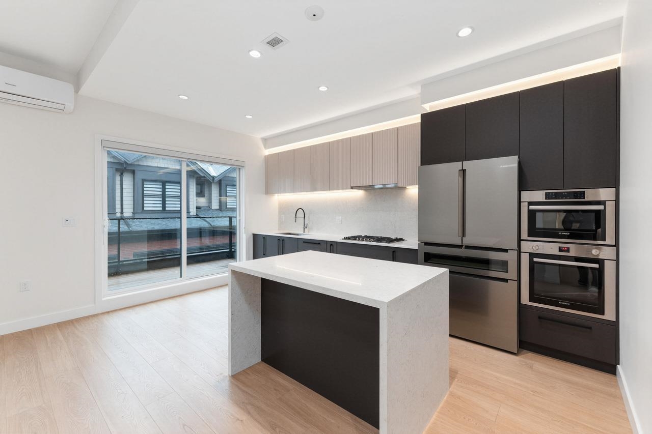 Located in Richmond’s highly sought-after Steveston North community and developed by the reputable builder Forest, this modern townhouse offers 1,586 sq ft of well-designed living space with 4 bedrooms, 4 full bathrooms, and a den or home office. The main living area features soaring 10-foot ceilings, while the contemporary kitchen is equipped with quartz waterfall countertops, full-height backsplash, and premium Bosch appliances, complemented by an efficient heating and air-conditioning system. The thought...