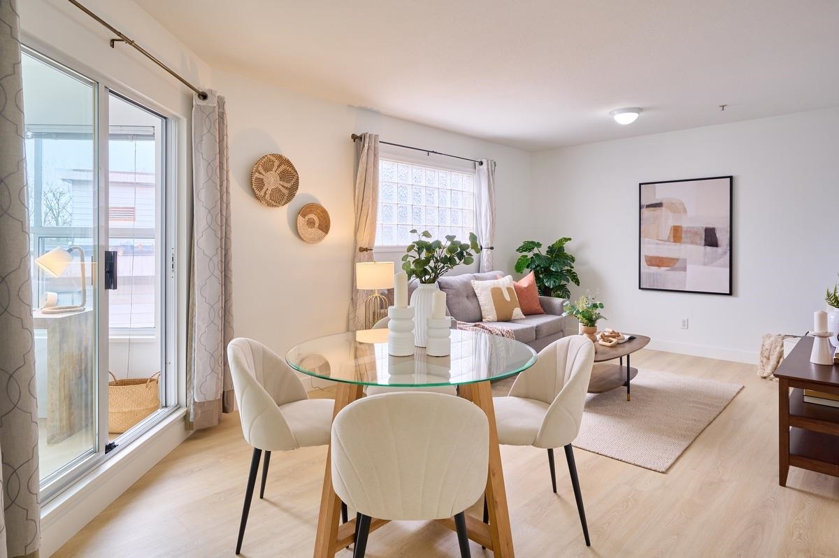 IDEAL for first-time homeowners or investors alike, this well-rounded property offers outstanding value! Get two bdrms + Den for the price of one. Tucked away on a quiet street in the sought-after Marpole community, this home is move-in ready with newly updated flrg & fresh paint. Bright & welcoming, the home boasts an open-concept design with a generous kitchen offering lots of cabinetry & counter space plus a large pass through to the cozy dining room! Great location near parks, transit, & Granville Stre...