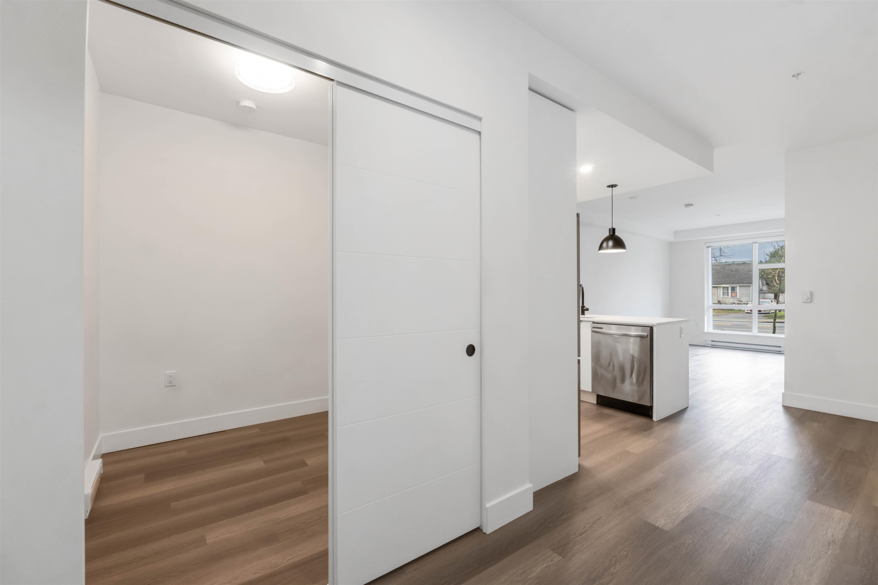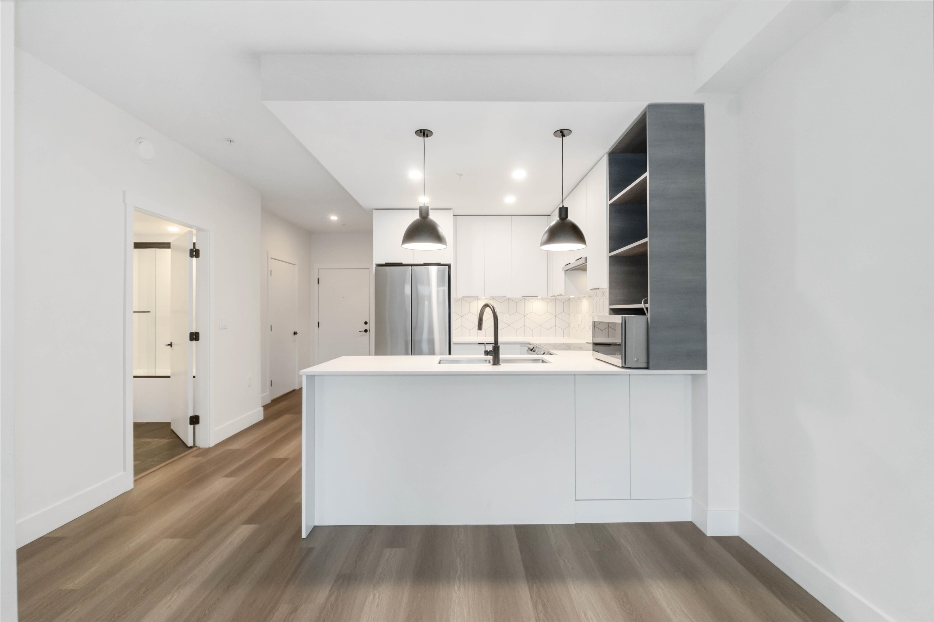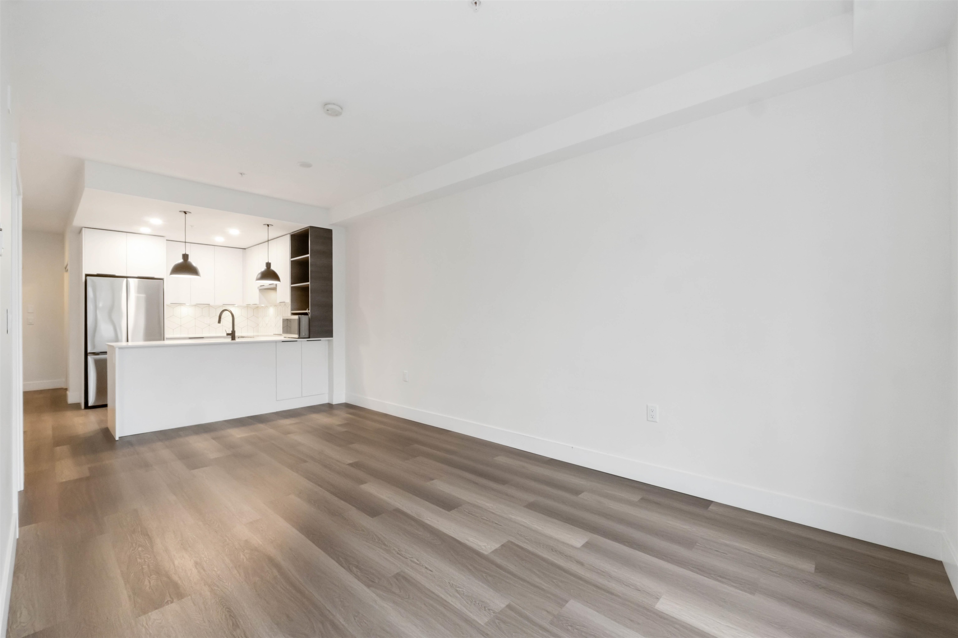 Welcome to HENDRIX - A contemporary living designed for comfort and convenience in the heart of Surrey's Central area! Built in 2023, this bright 1 Bed plus Den, 1 bath home offers an open-concept space with stainless steel appliances, glossy quartz countertops, porcelain backsplash, soft-close cabinets, laminate floor, in-suite laundry, and a cozy private patio for your morning coffee! This unit comes with 1 car parking and 1 storage locker. Building amenities include a gym, yoga area, lounge, party room w...