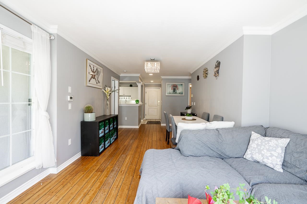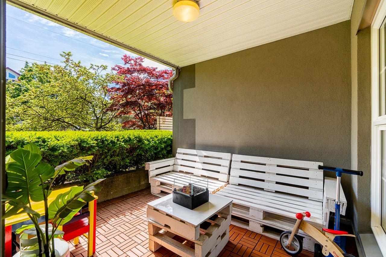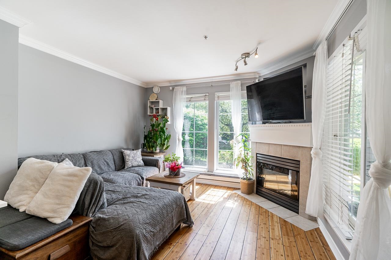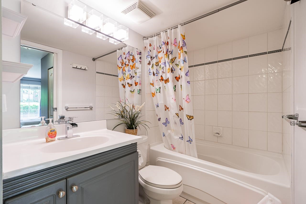 Welcome to The Charleston building! This beautifully maintained ground floor unit features an abundance of natural light and a perfect layout, offering 2 bedrooms and 1 bathroom. With a separate entrance and two large covered patios accessible from each room, this condo provides an inviting outdoor experience.Impeccably styled and maintained, this unit feels like new and includes 2 parking and 1 locker. Pet-friendly.The building boasts a newer roof and is rain-screened, ensuring peace of mind. Amenities suc...