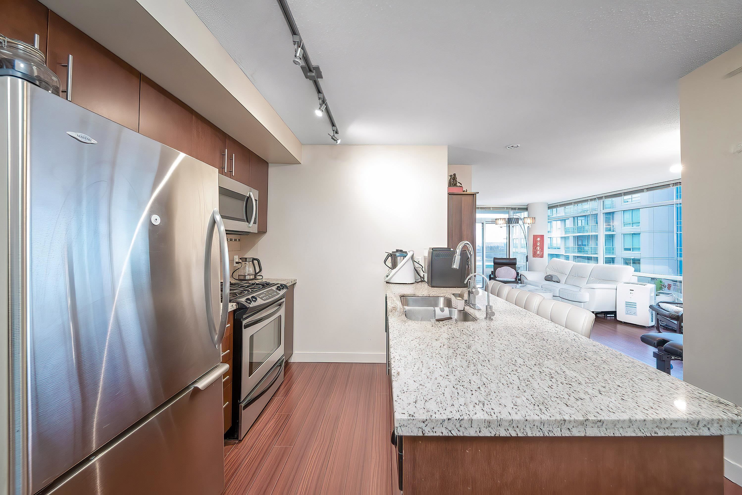 Welcome to Versante- a well-maintained concrete high-rise: steps from Lansdowne Centre, Canada Line, T&T, restaurants, and Kwantlen University. Great central Richmond location! This bright 3-bedroom, 2-bath corner unit features a functional layout, modern kitchen with stainless steel appliances and quartz countertops, and a North East-facing balcony with open city views. Amenities include a fitness center, clubhouse with kitchen and meeting area, guest suite, kids’ playground, and rooftop garden. 2 parking...