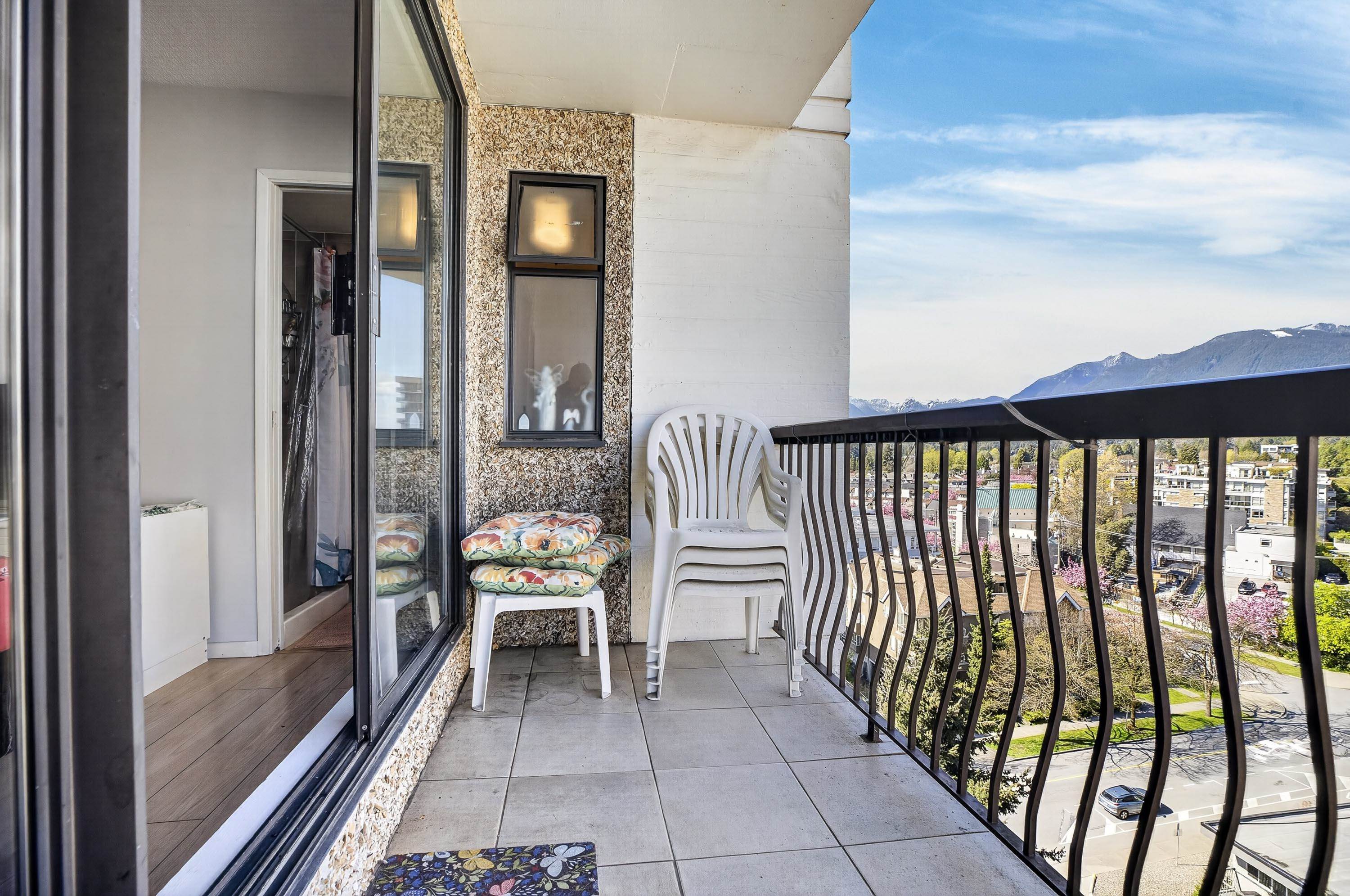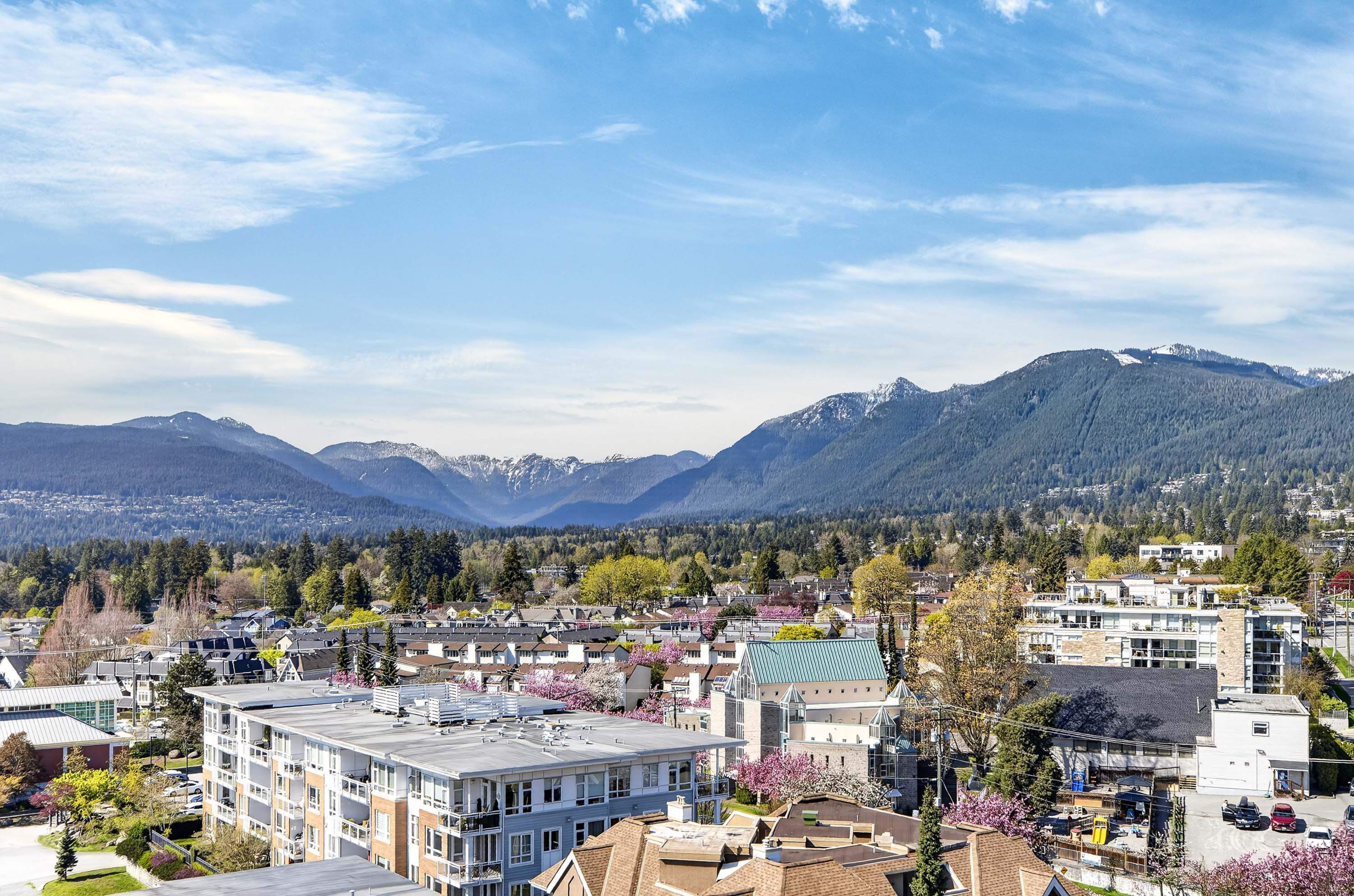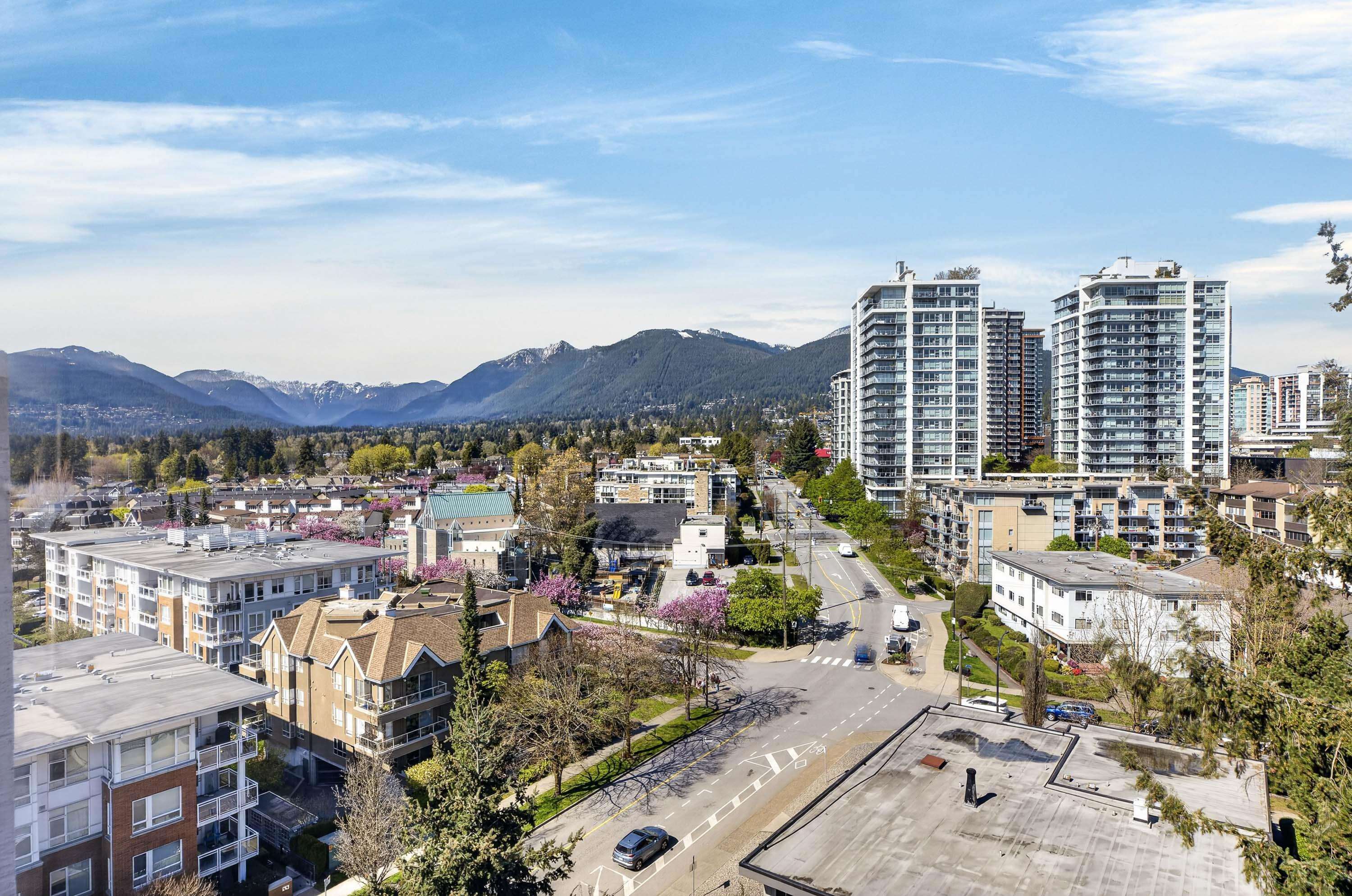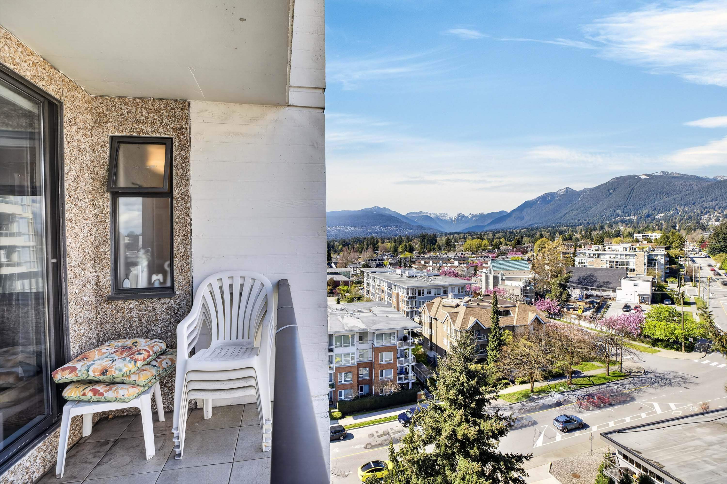 Views galore! get ready for an opportunity to enjoy breathless vistas all year round. This NW corner home sits right along Victoria Park in Central Lonsdale, with sweeping views of the city, water, and North Shore mountains. The 922 sq ft layout is comfortable and efficient, with two bedrooms off the same wing, ideal for a home office or small family. The living and dining areas open to a long balcony that takes full advantage of the west-facing outlook, plus a second balcony for a wonderful cross breeze an...