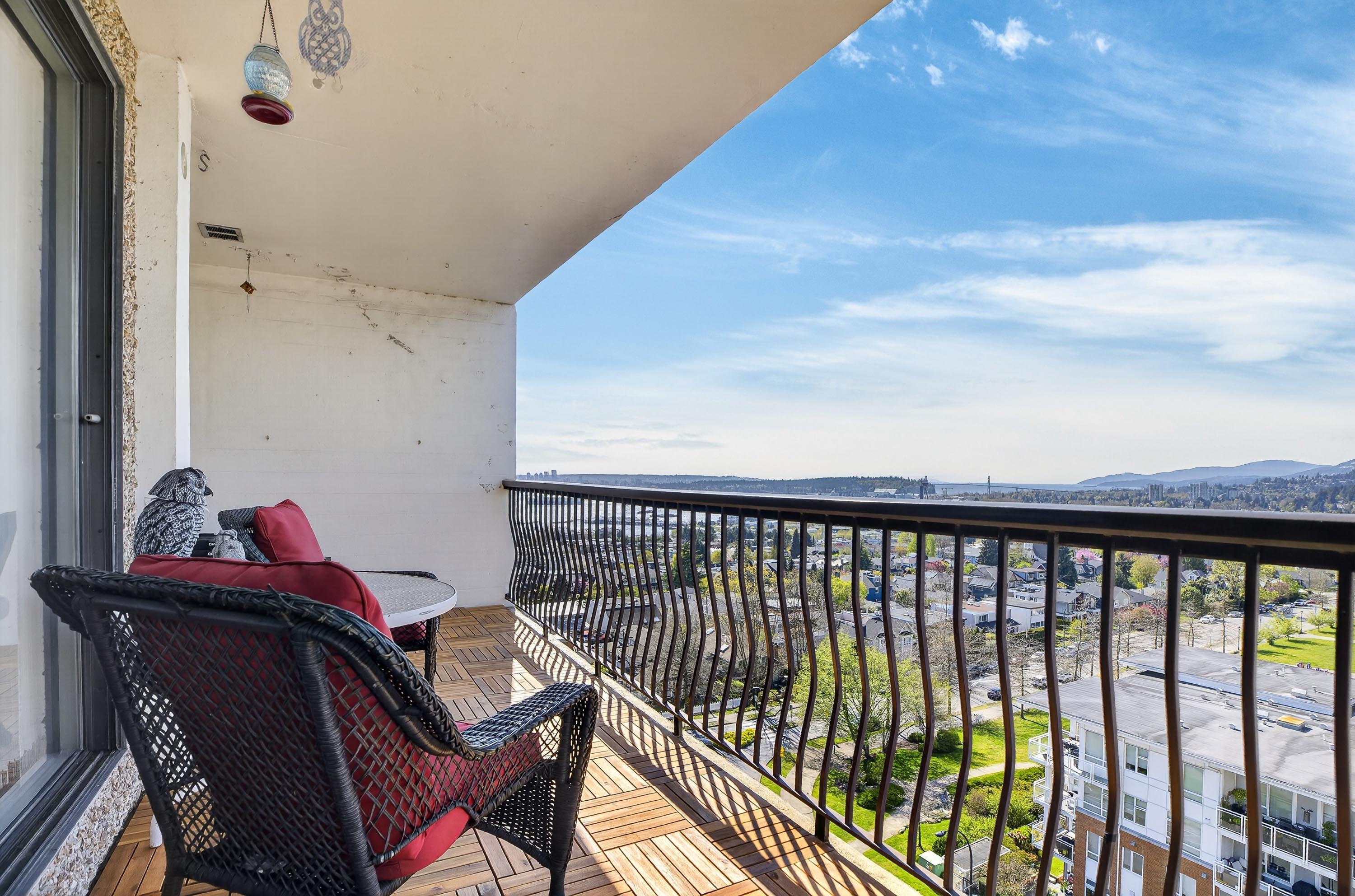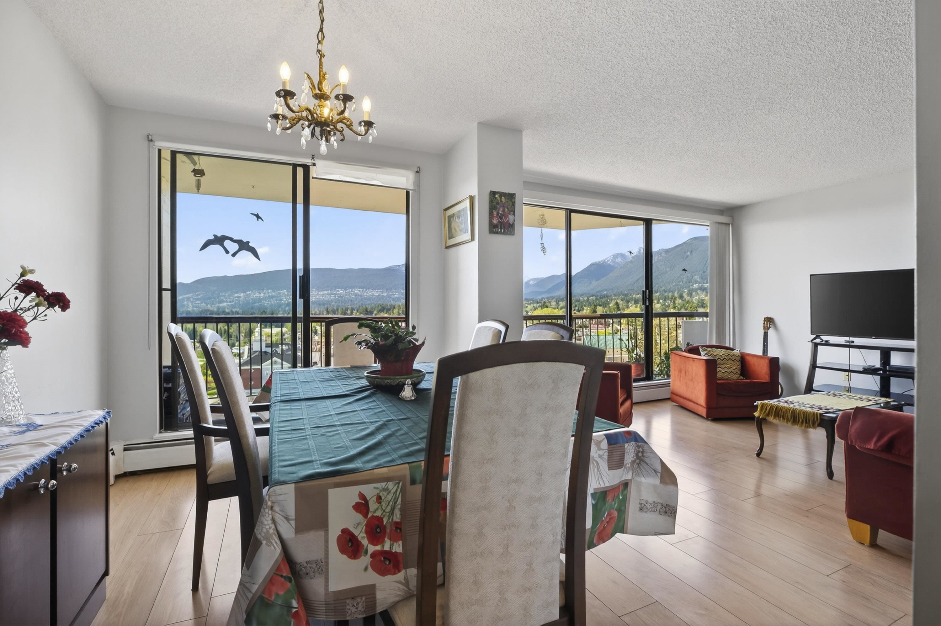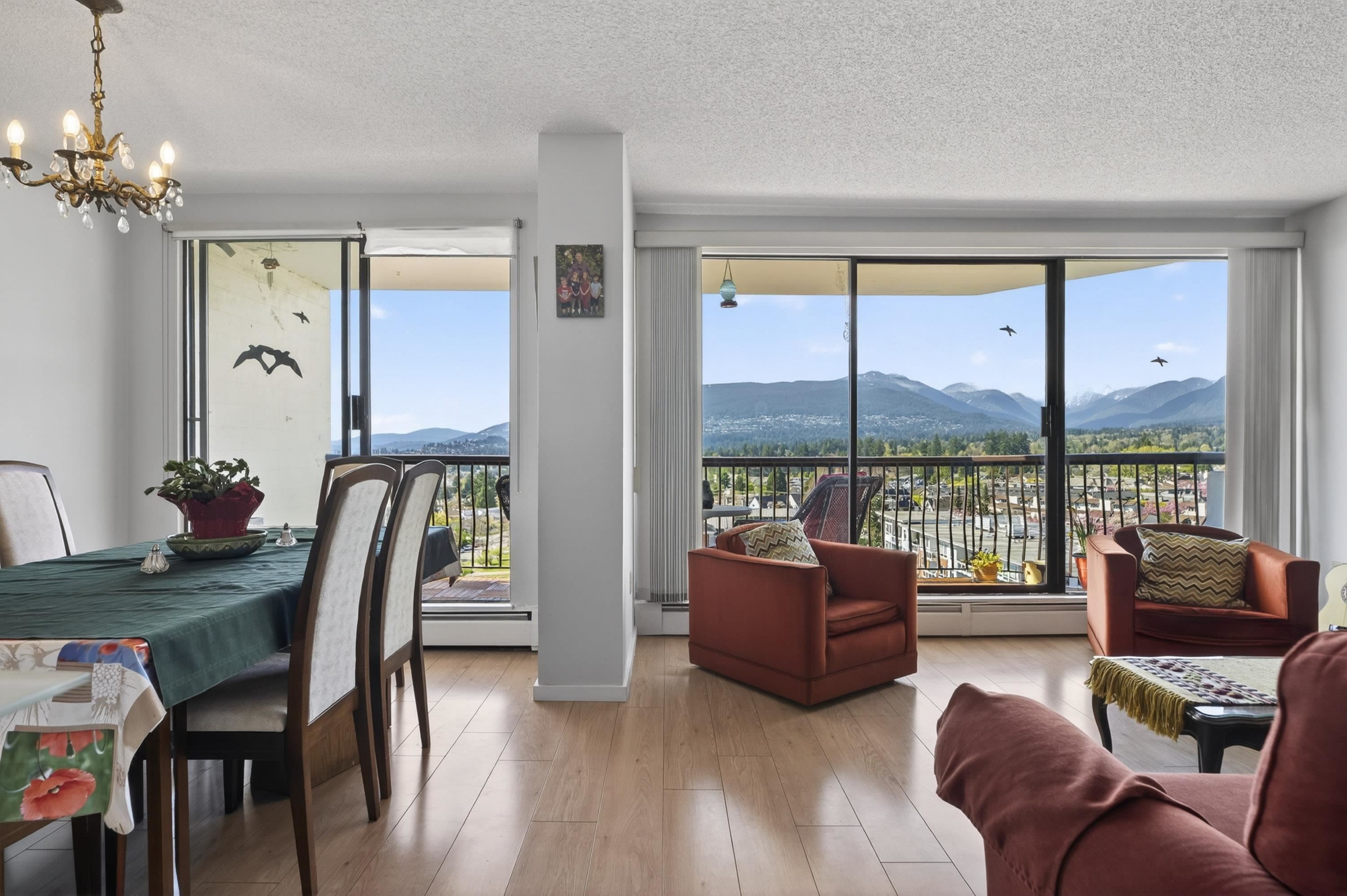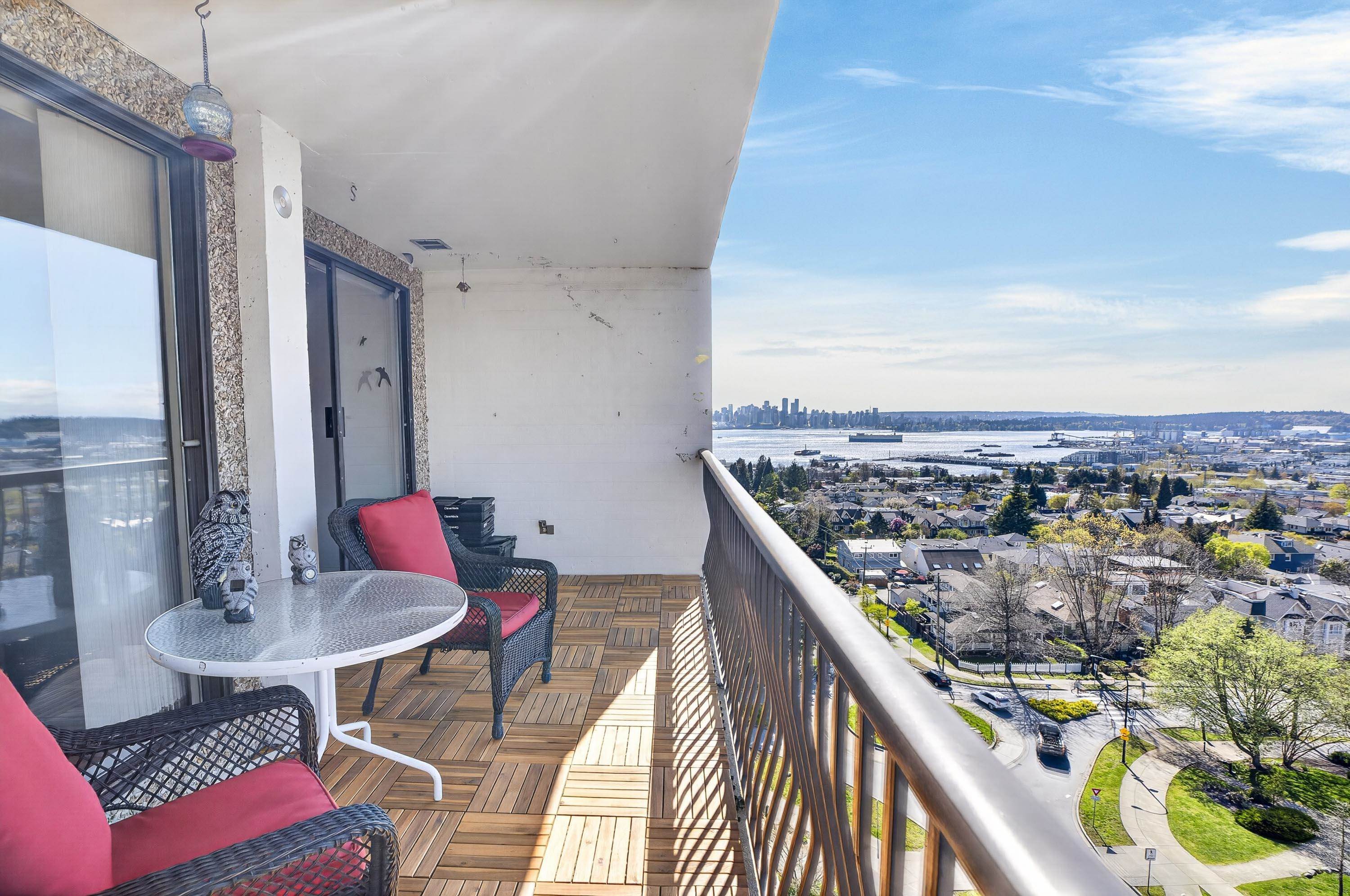 Views galore! get ready for an opportunity to enjoy breathless vistas all year round. This NW corner home sits right along Victoria Park in Central Lonsdale, with sweeping views of the city, water, and North Shore mountains. The 922 sq ft layout is comfortable and efficient, with two bedrooms off the same wing, ideal for a home office or small family. The living and dining areas open to a long balcony that takes full advantage of the west-facing outlook, plus a second balcony for a wonderful cross breeze an...