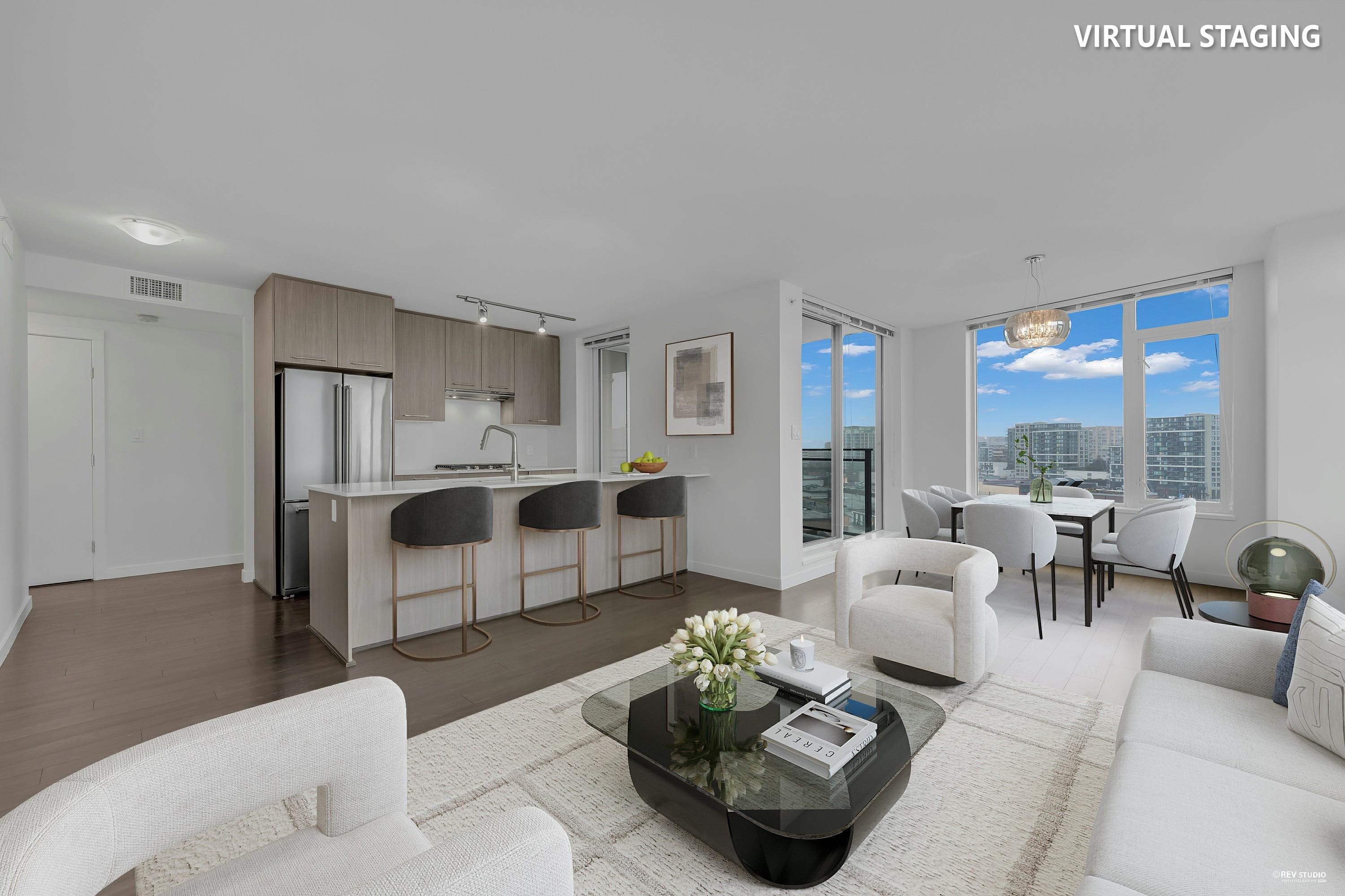 Welcome to TEMPO by Amacon—this beautifully designed 3-bedroom corner unit offers a spacious primary bedroom and breathtaking city and water views. Featuring central air conditioning, premium cabinetry with polished stone countertops, top-of-the-line stainless steel appliances, a spa-inspired bathroom with deep soaker tub, and floor-to-ceiling windows that fill the home with natural light. Enjoy exceptional amenities including a gym, indoor pool, and badminton court. Steps from T&T, Lansdowne Centre, Richmo...