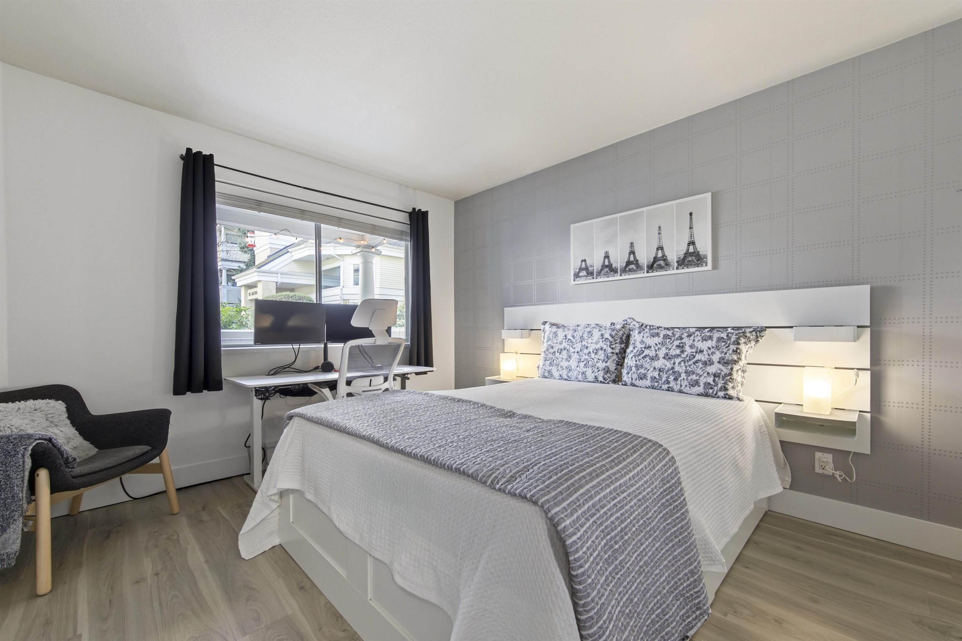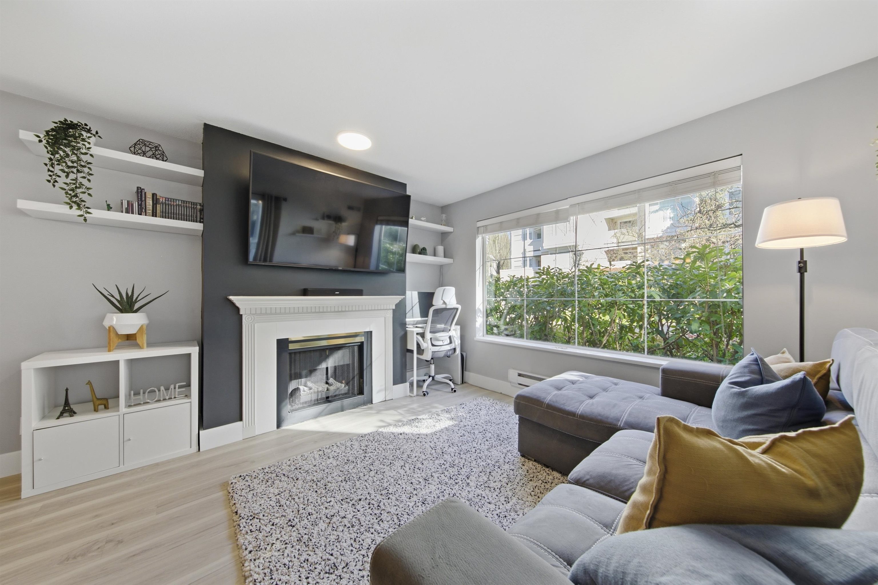 Spacious upgraded one bedroom with modern vinyl flooring perfect for the pet lovers. Updated kitchen with stainless steel appliances, spacious laundry with new machines and a pantry. This modern home has smart plugs, updated lighting and fixtures and a cozy fireplace . The Modern home sits in a beautiful and quiet neighborhood surrounded with parks, walking distance to shops, restaurants and groceries. Proactive strata with large contingecy reserve and most major Strata projects completed. Conveniently lo...