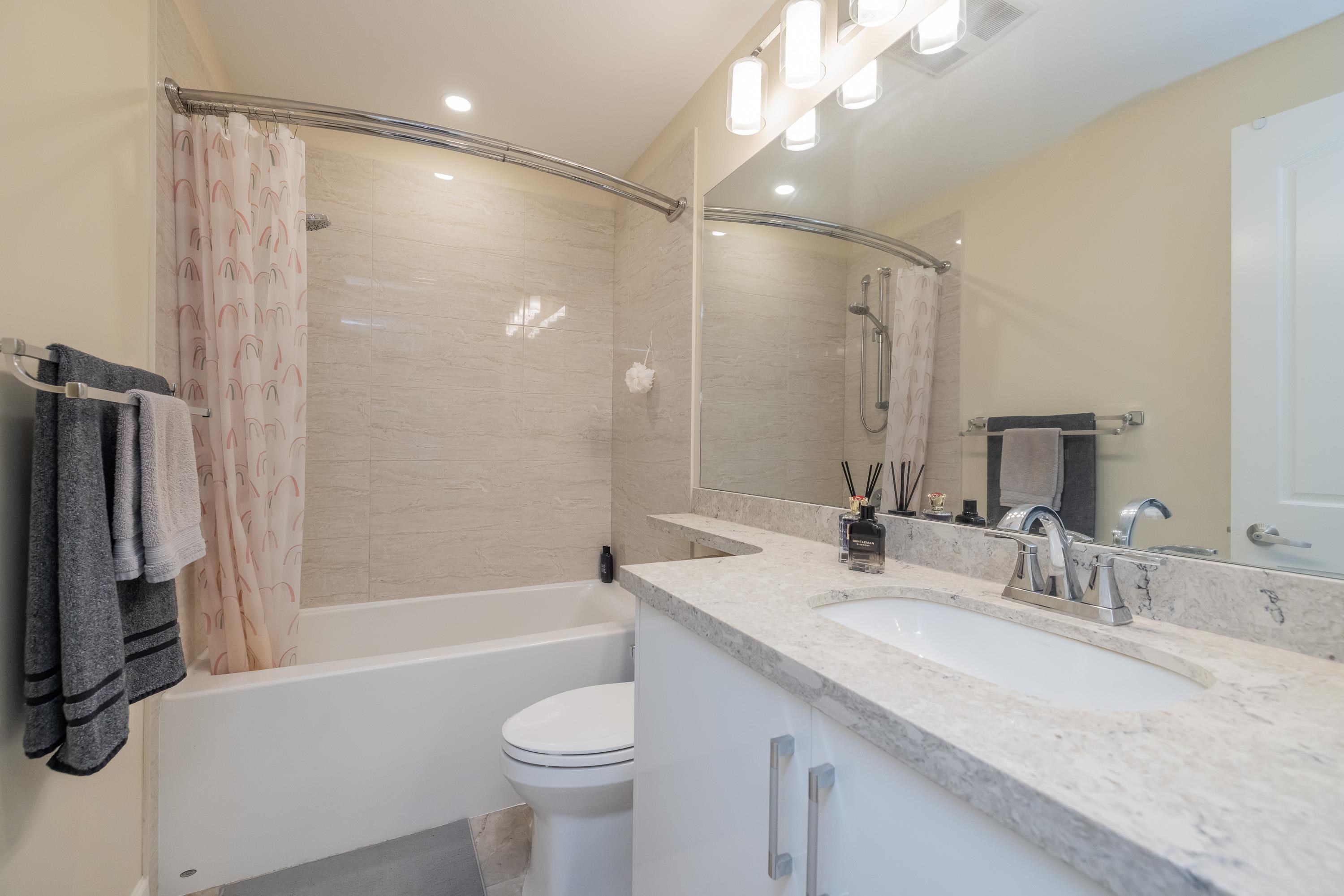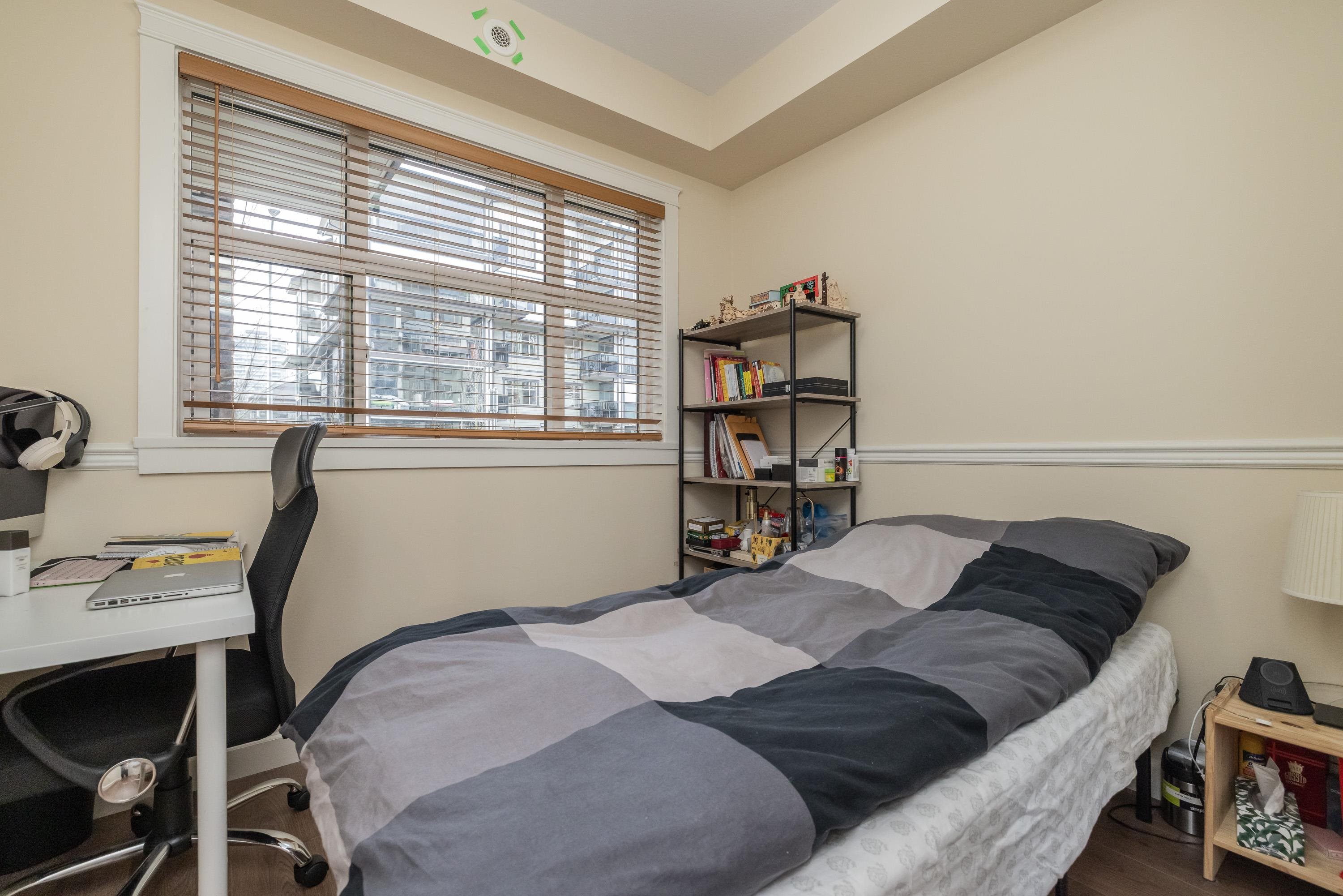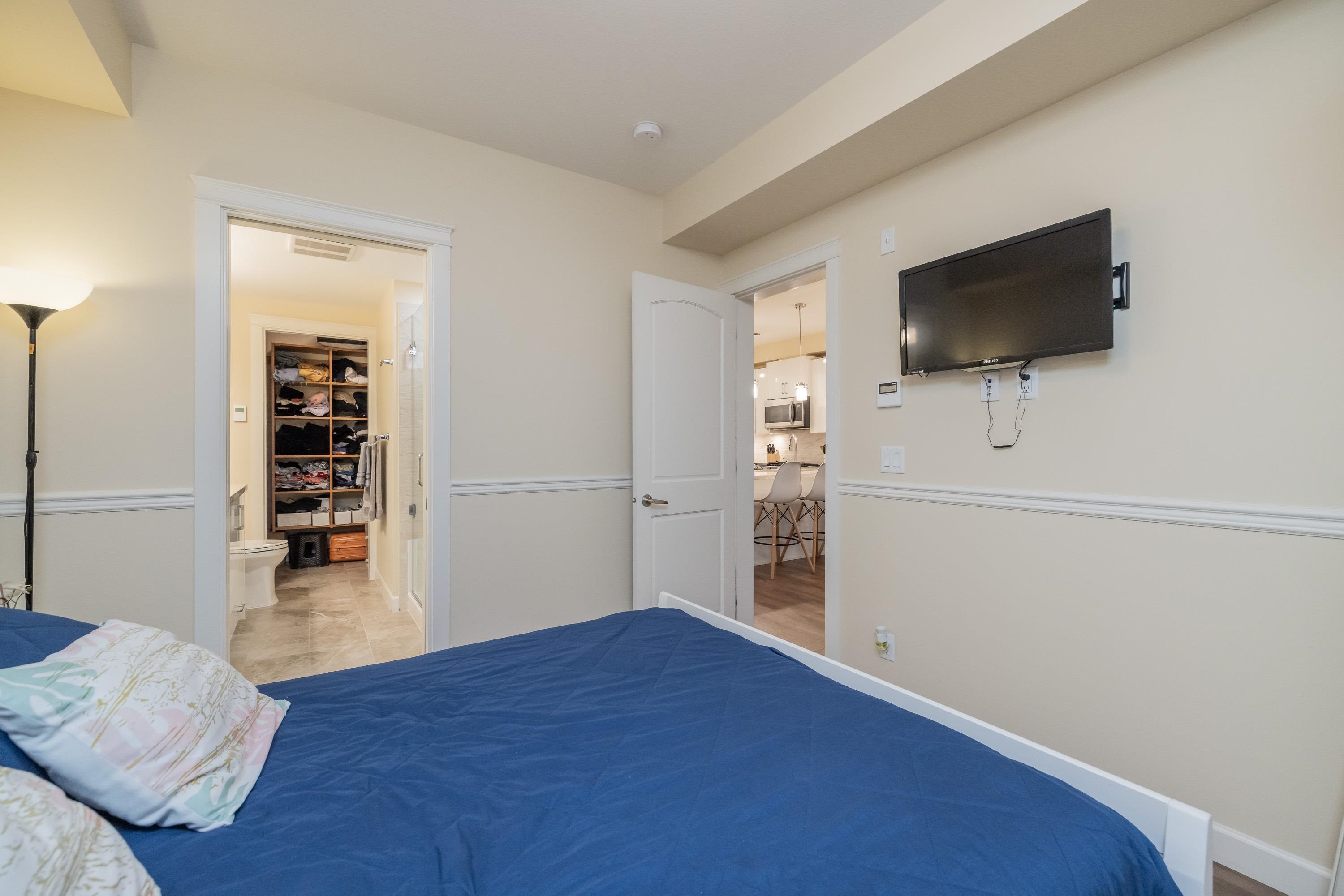 Welcome to Yorkson Park! This 2 bed + flex home offers modern style and smart function in a quality-built, only 4-year-old building. The gourmet kitchen features quartz counters, stainless appliances, and a gas range. Enjoy year-round comfort with A/C, an electric fireplace, and heated bathroom floors. The flex space is ideal for a home office or extra storage. An enclosed solarium expands your living area and overlooks the quiet courtyard. Bonus: 2 parking stalls + secure storage. Steps to shops, restauran...