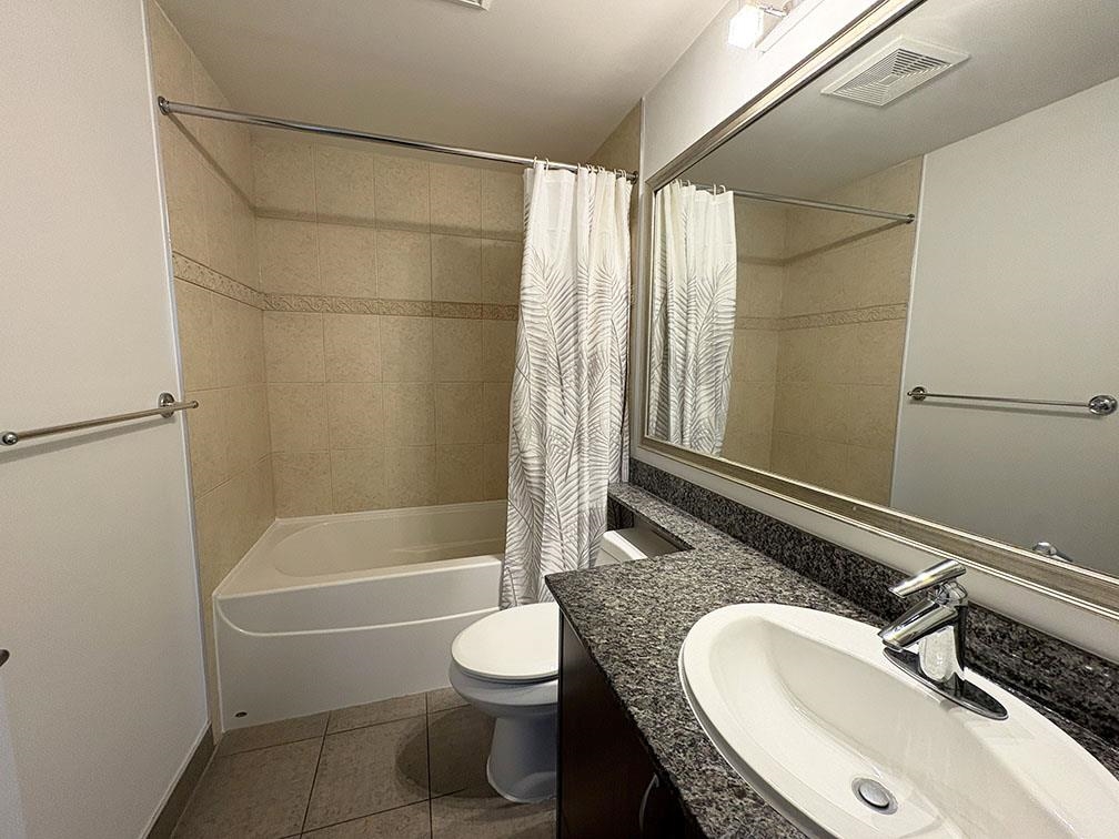 Azure II in the heart of New Westminster's downtown area has everything you would need for city living without the Vancouver price tag. This 2 bedroom unit overlooks the garden area, with a split view of the Fraser River & The City. dark laminate flooring has been laid throughout the entire unit along with carpeting in the bedrooms for those chillier mornings. Both the bathrooms and kitchen sport granite countertops, with stainless steel appliances. This building is attached to the Skytrain (New West Statio...